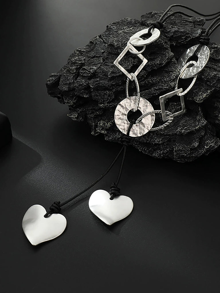 قلادة طويلة بتصميم هندسي على شكل قلب غير منتظم من سبائك معدنية أنيقة