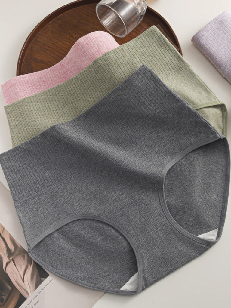 6 قطع ملابس داخلية نسائية شتوية عالية الخصر بلون نقي