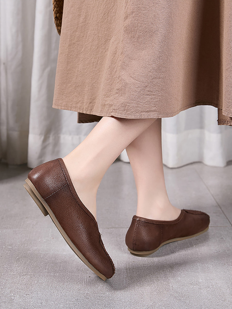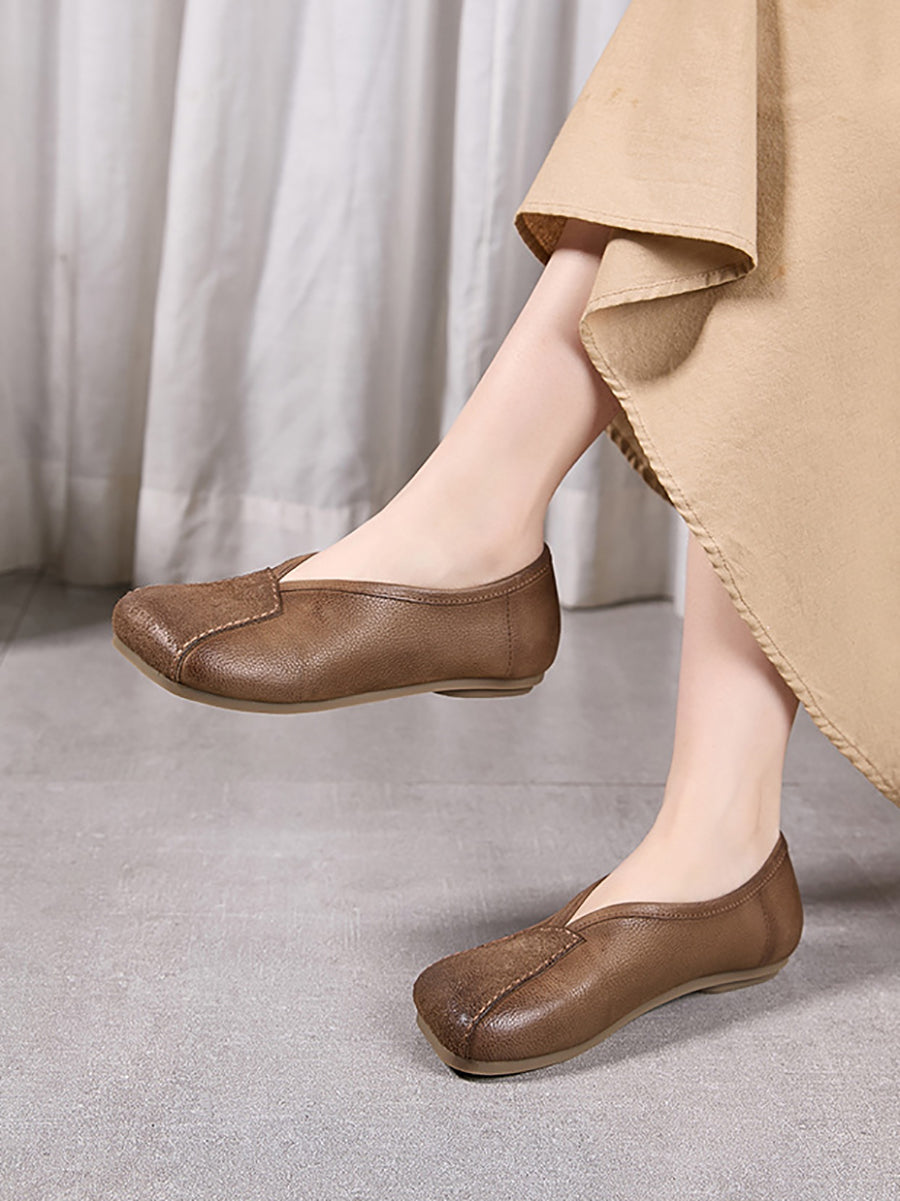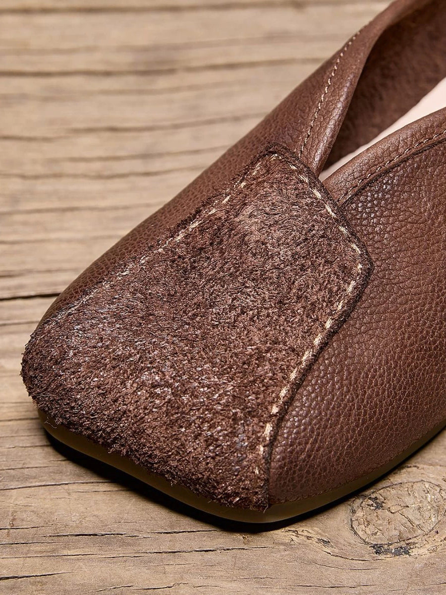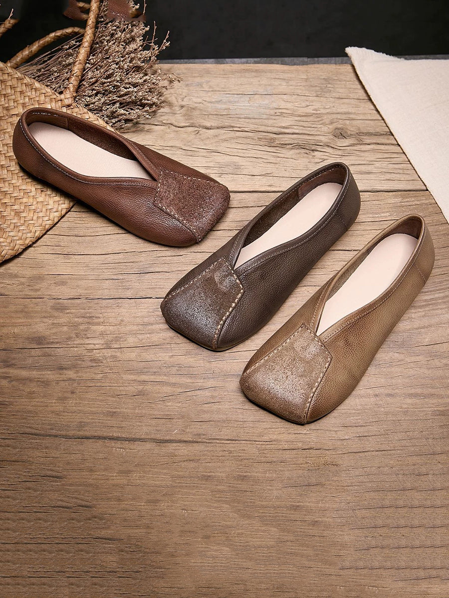 أحذية نسائية ربيعية من الجلد الطبيعي بمقدمة مربعة