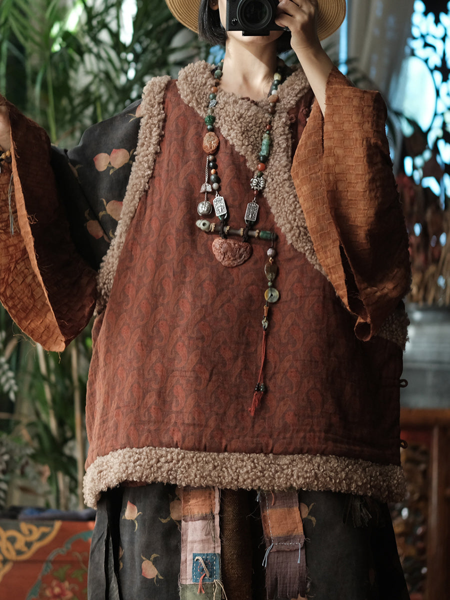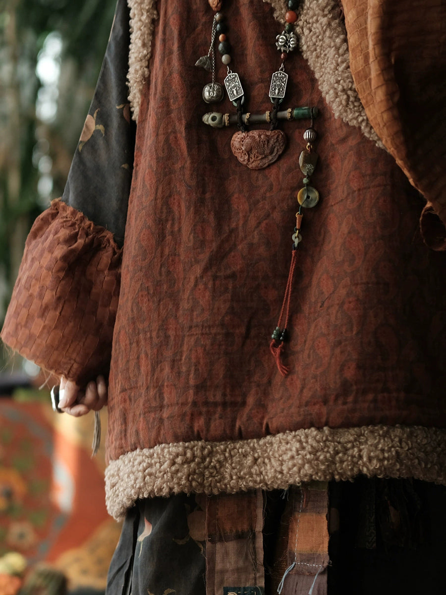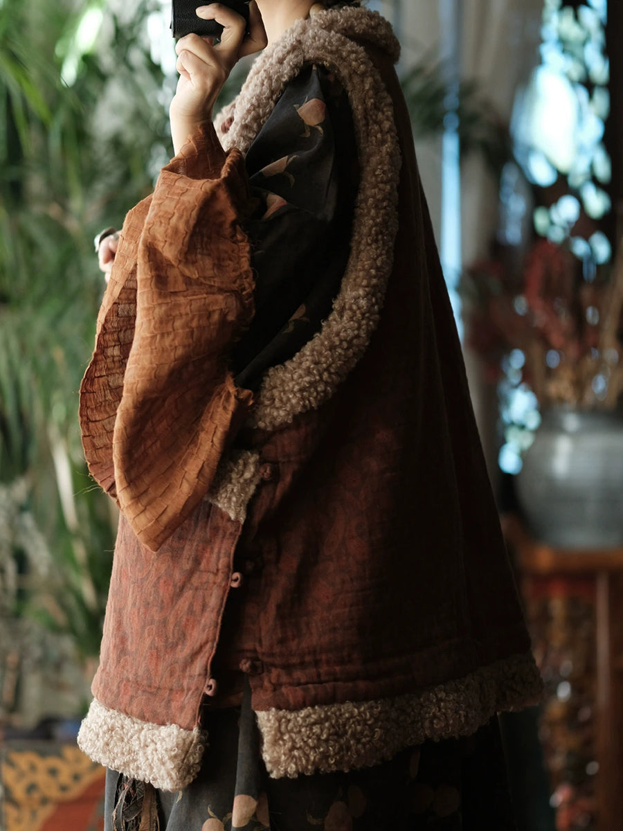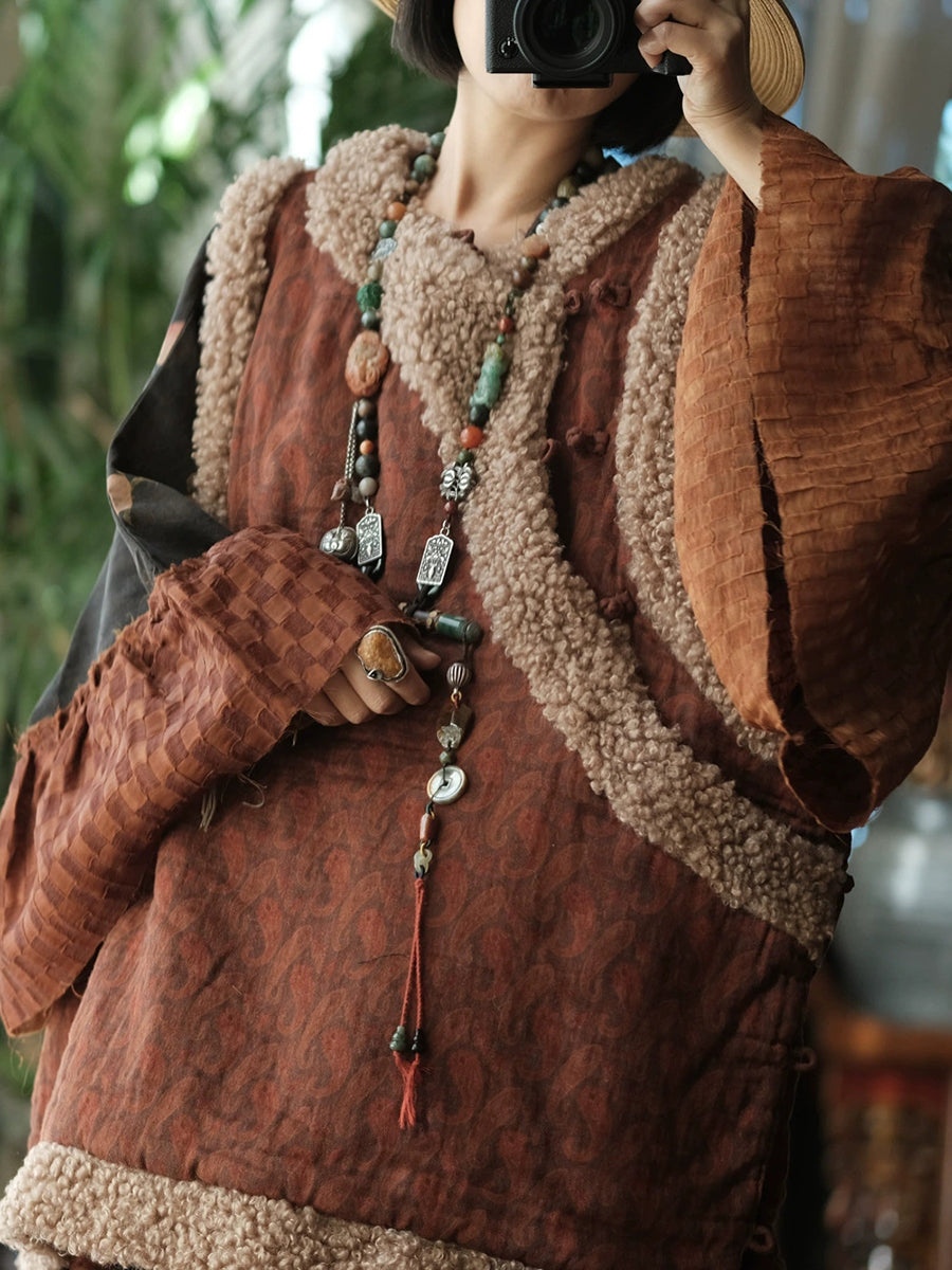 سترة شتوية نسائية مبطنة بياقة دائرية من الصوف بتصميم كلاسيكي