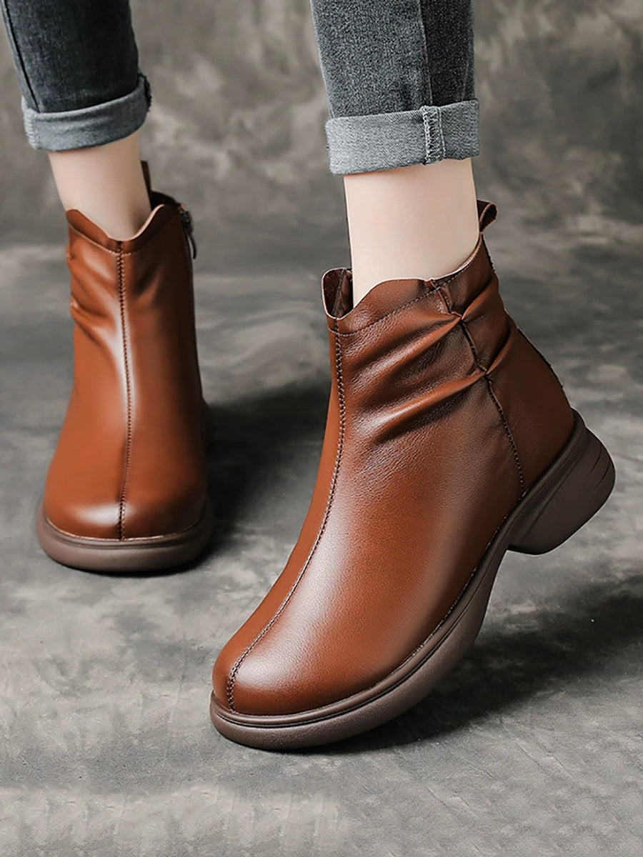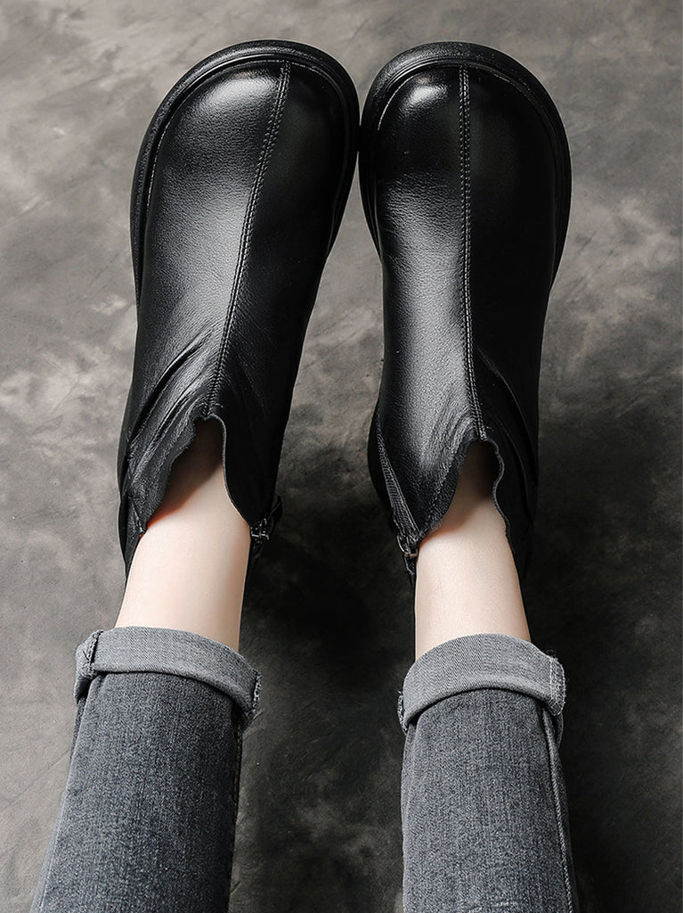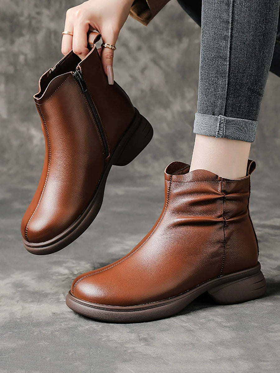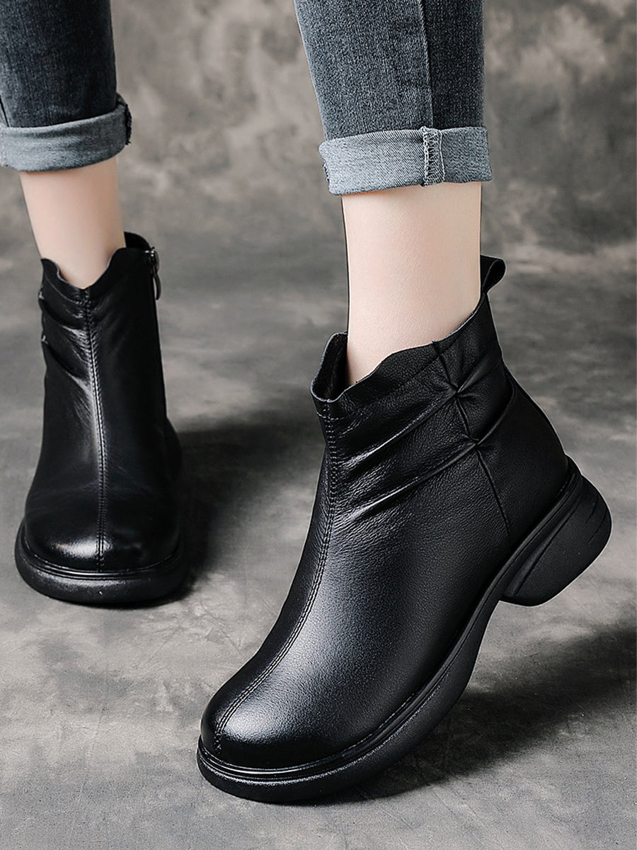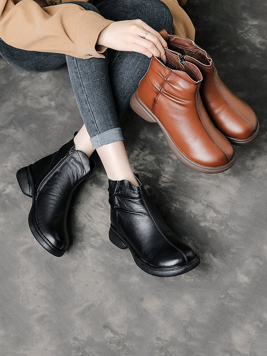 أحذية مارتن شتوية نسائية من الجلد الطبيعي ذو نعل سميك