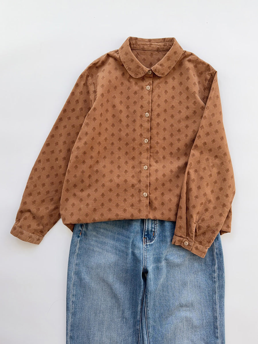 قميص نسائي أنيق من قماش الكوردروي بنقاط خريفية وياقة مطوية