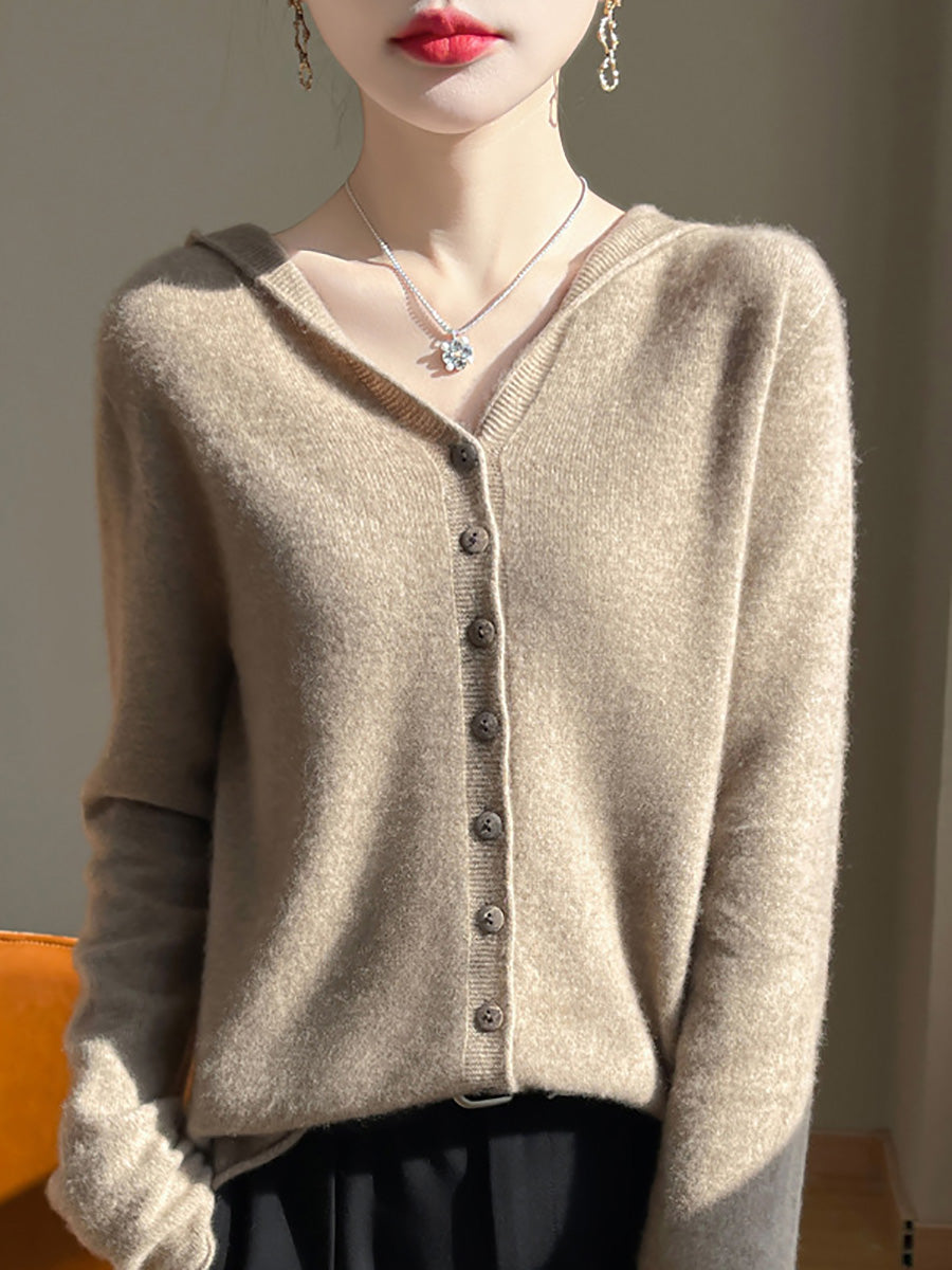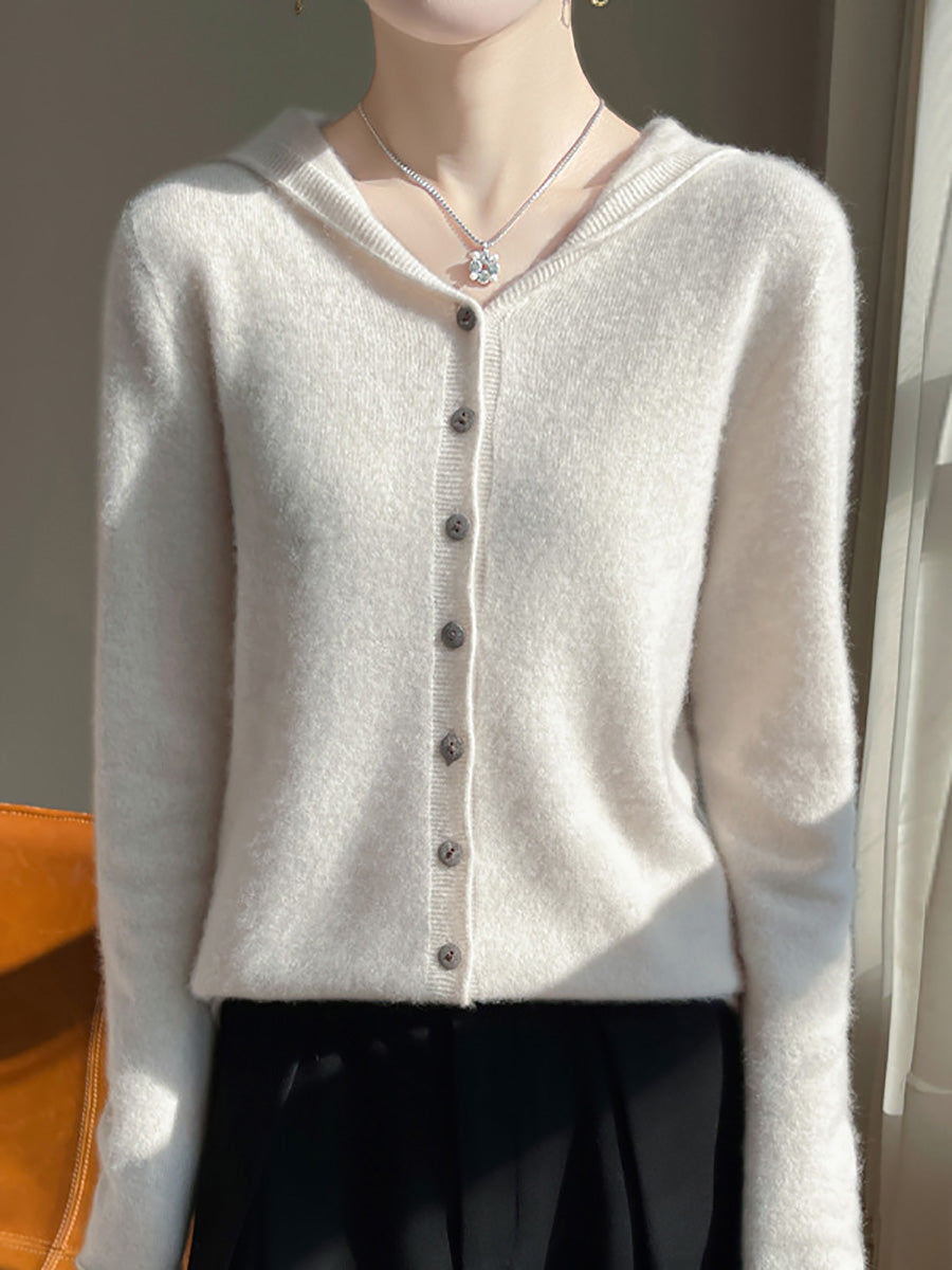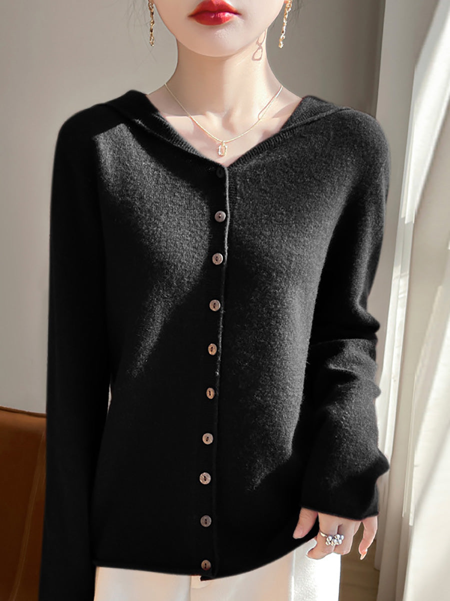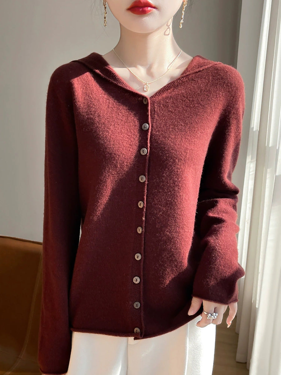كنزة نسائية خريفية فنية بلون موحد بغطاء رأس