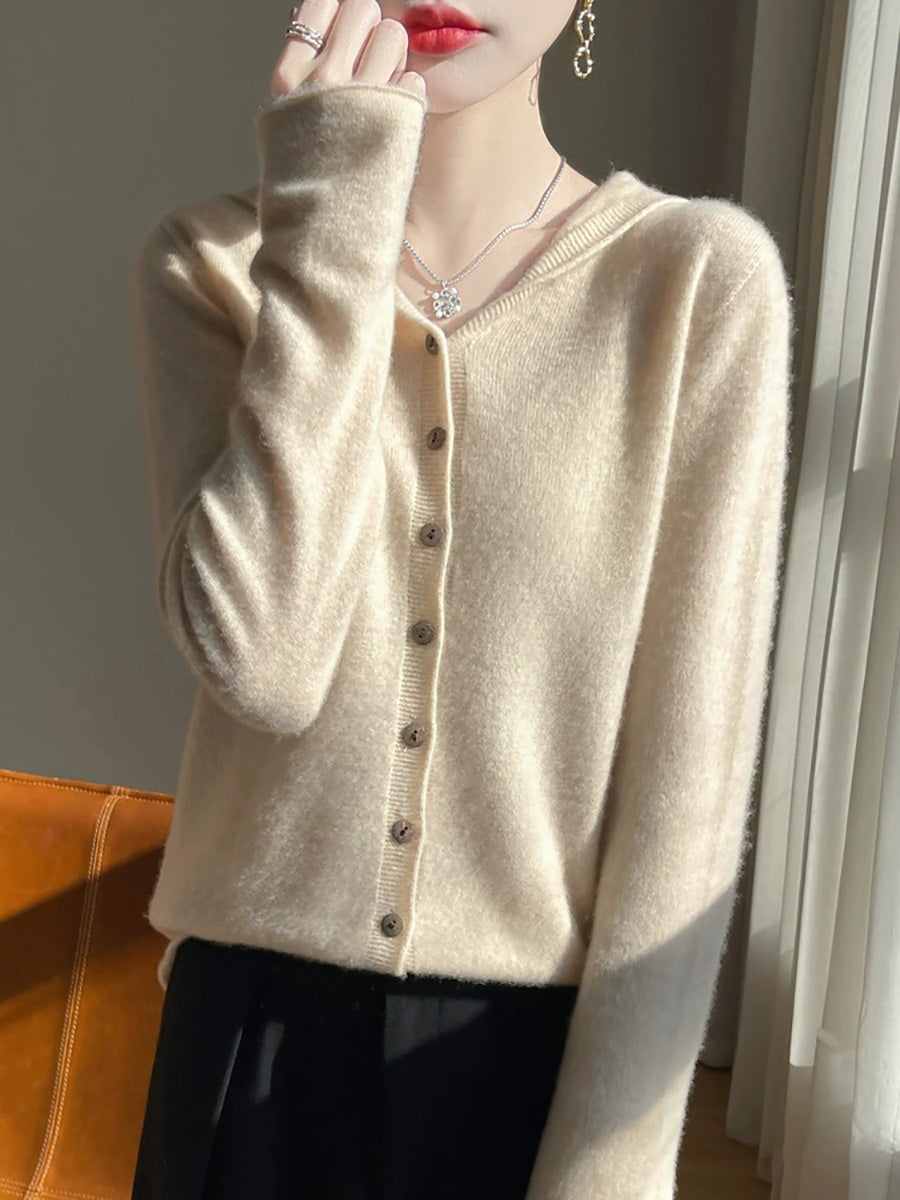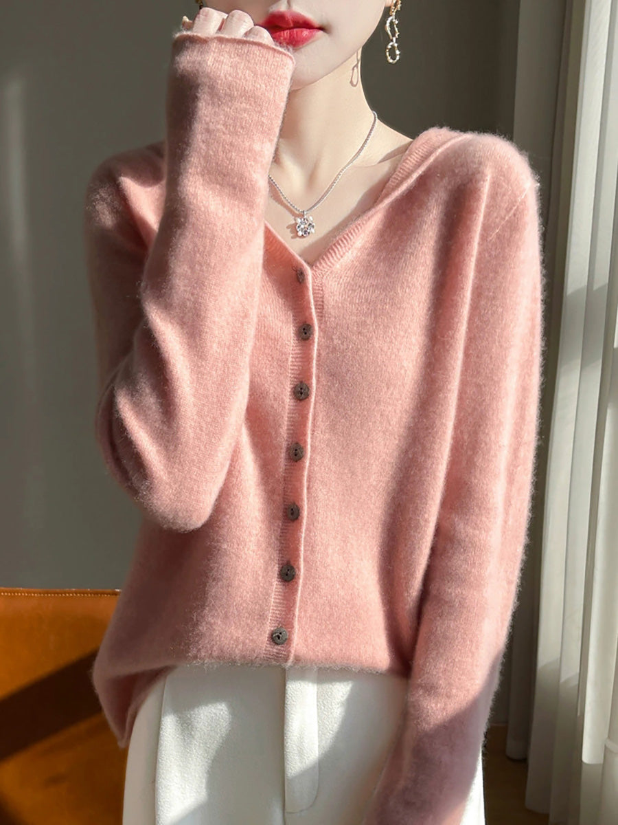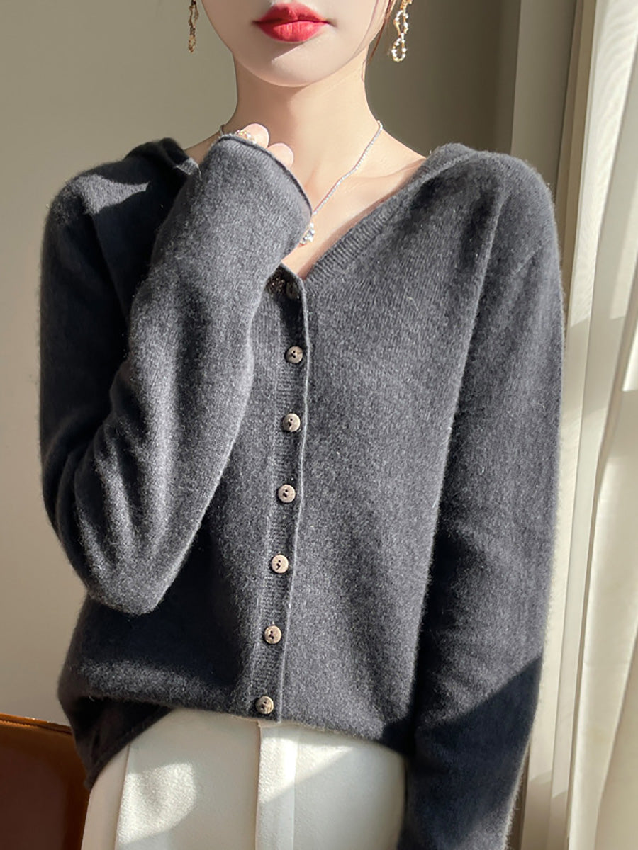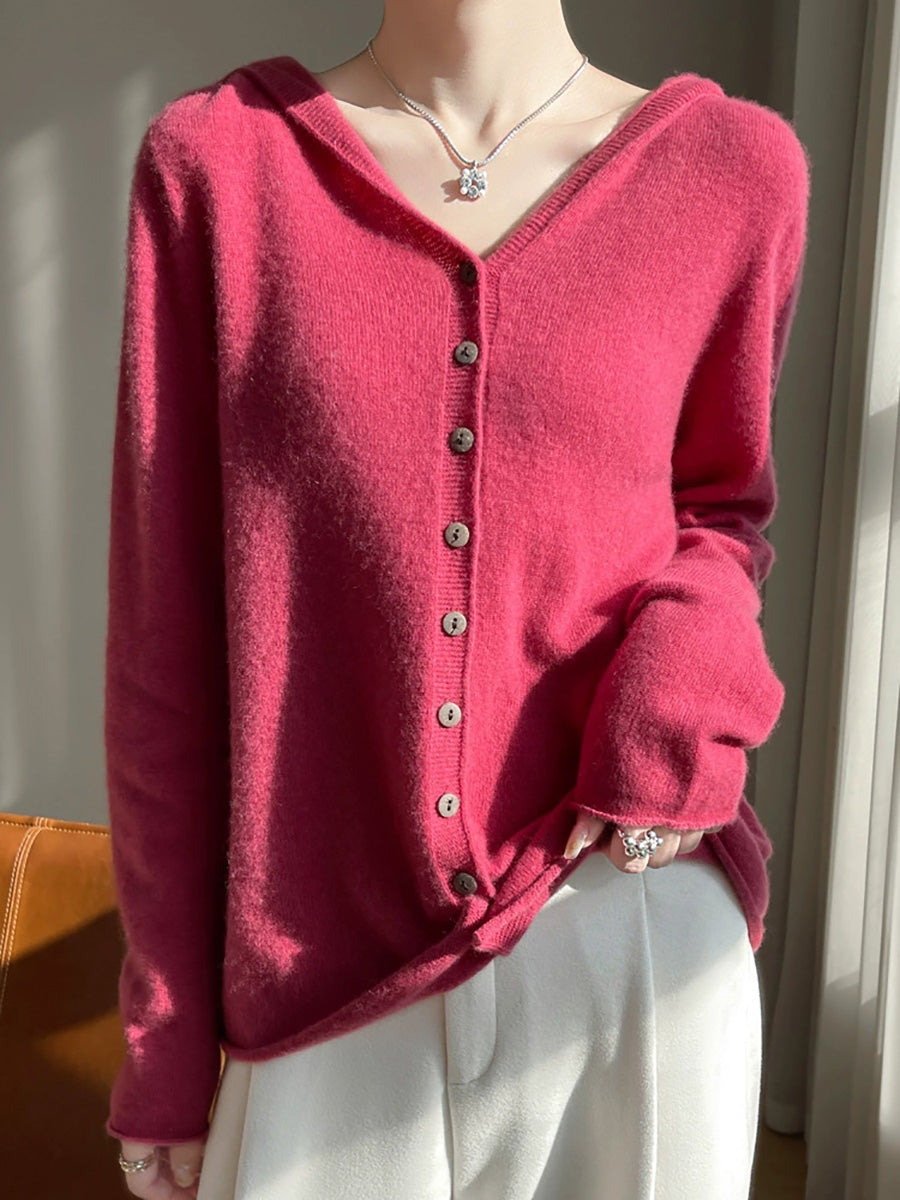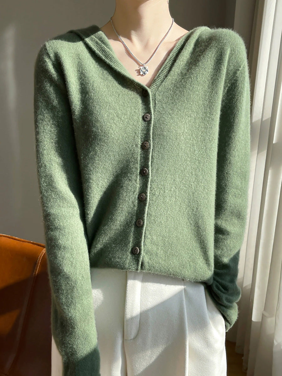 كنزة نسائية خريفية فنية بلون موحد بغطاء رأس