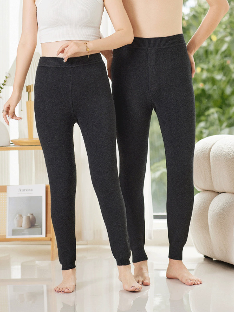 بنطلون ضيق شتوي دافئ بلون موحد وخصر عالٍ