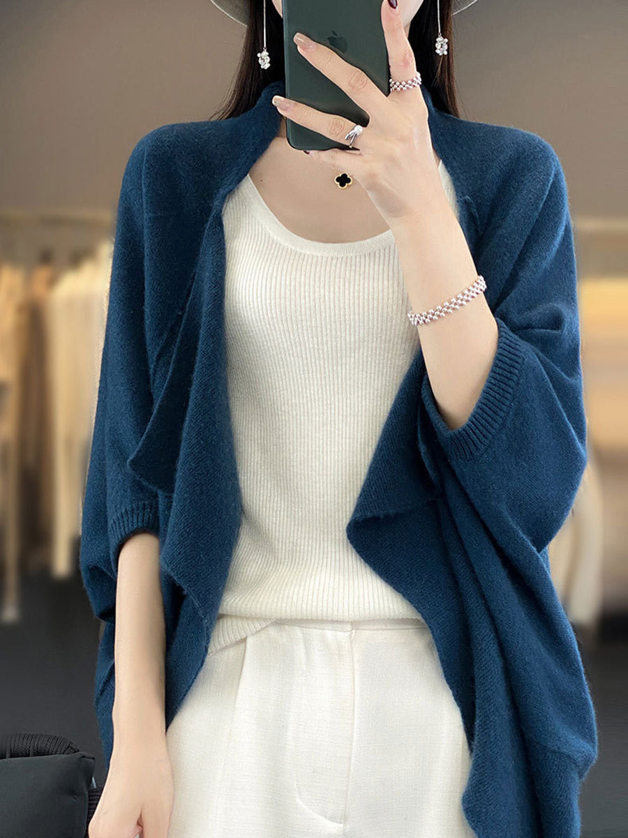 كارديجان نسائي خريفي فني بلون موحد من الصوف