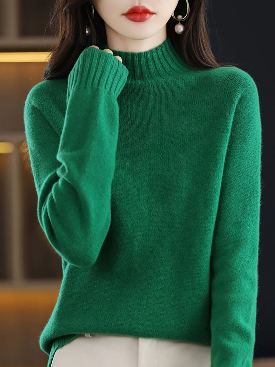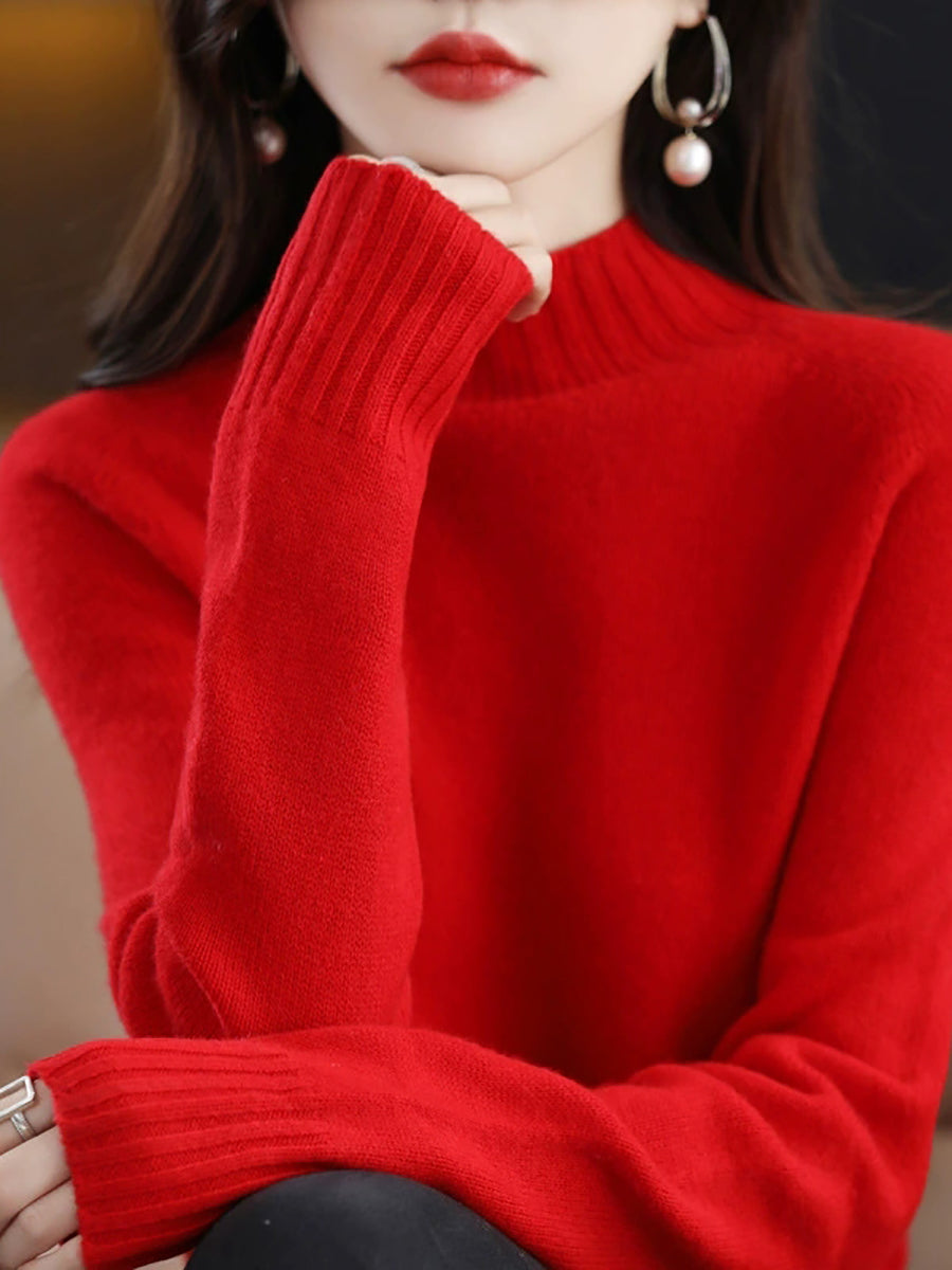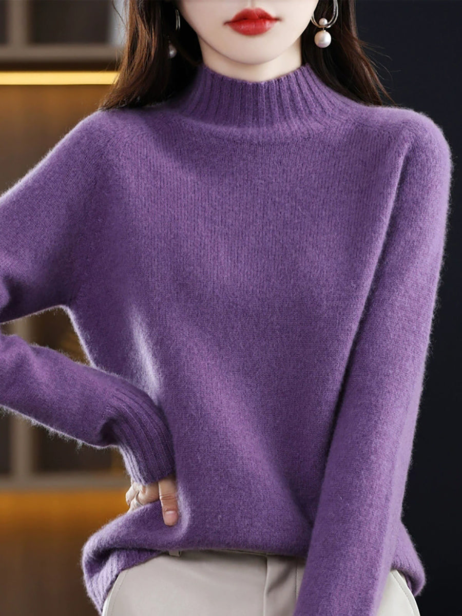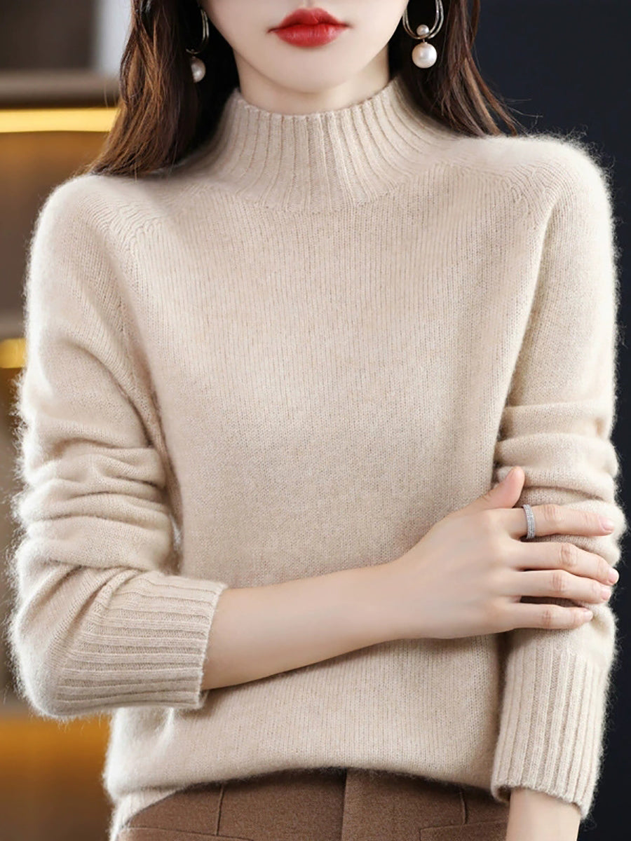 كنزة نسائية خريفية فنية محبوكة بنصف ياقة عالية بلون موحد