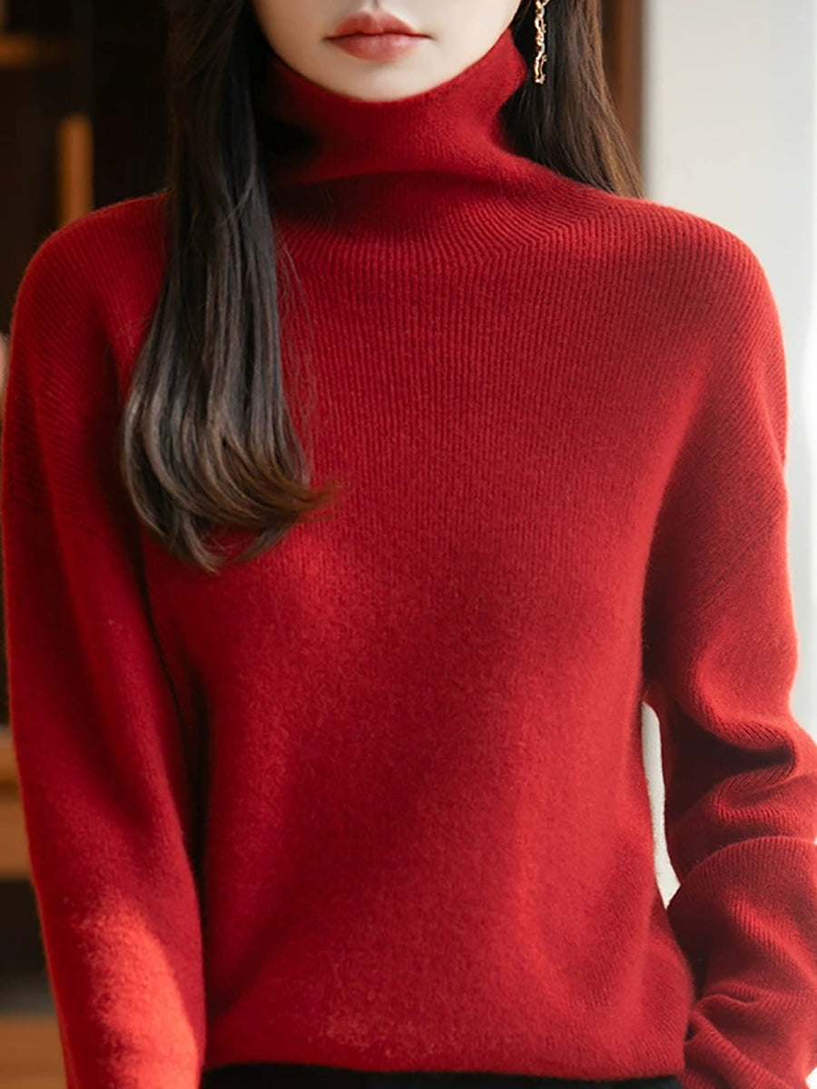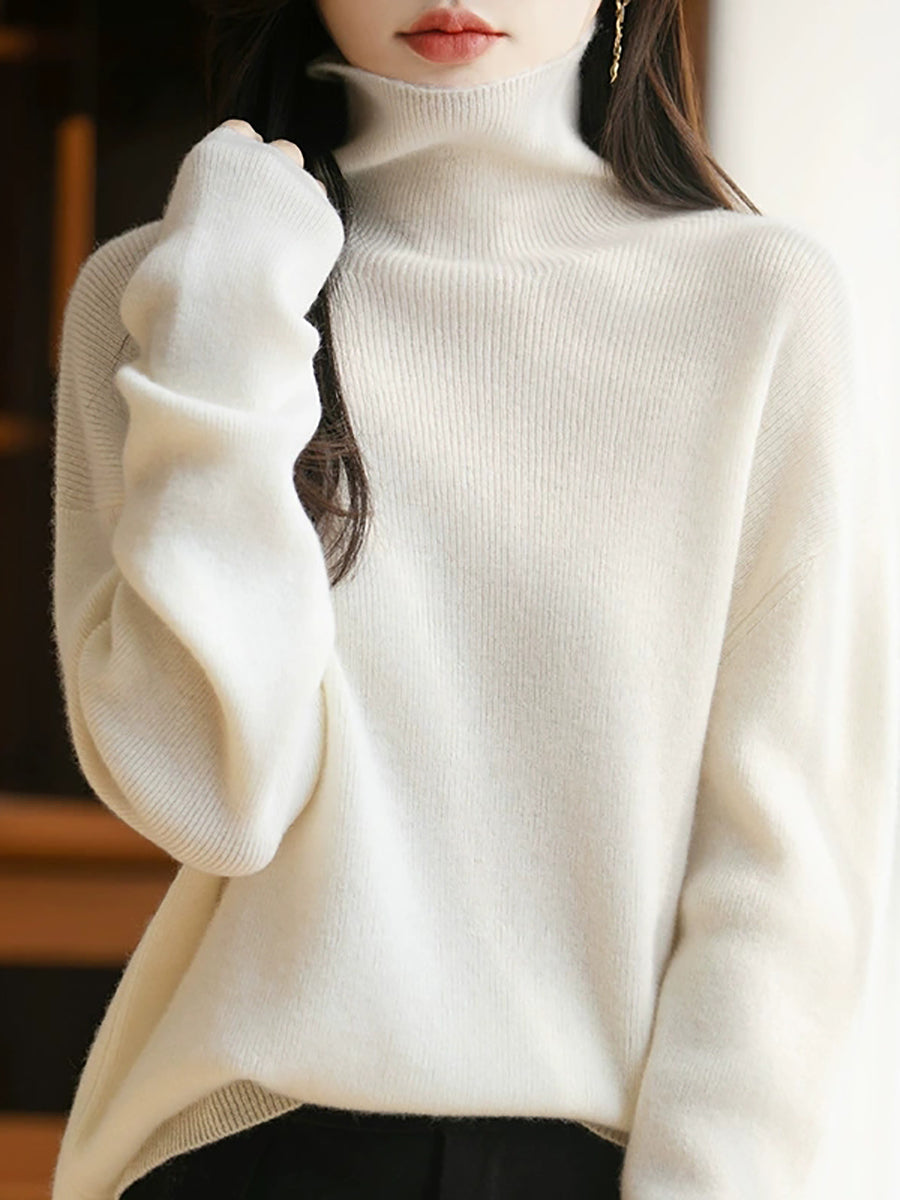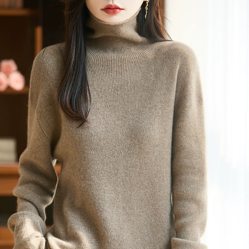 كنزة نسائية خريفية فنية بلون موحد بياقة عالية