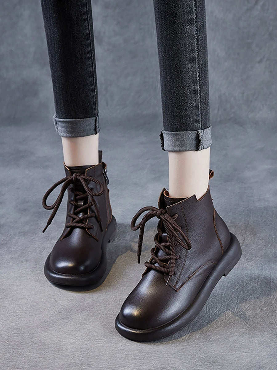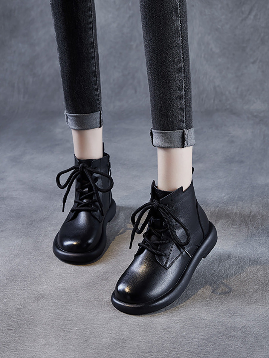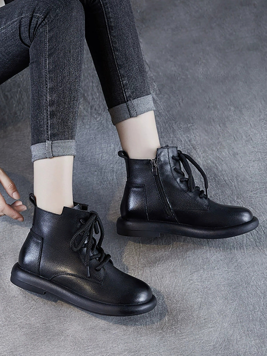 أحذية نسائية شتوية كلاسيكية من الجلد الطبيعي تصل إلى الكاحل