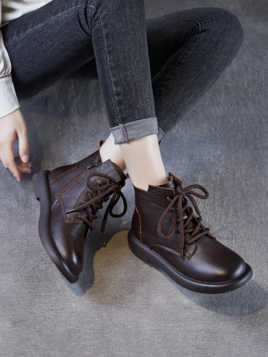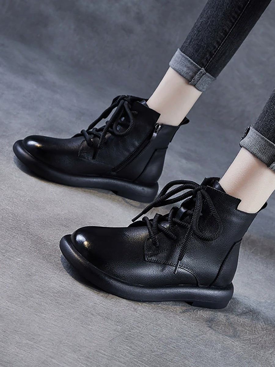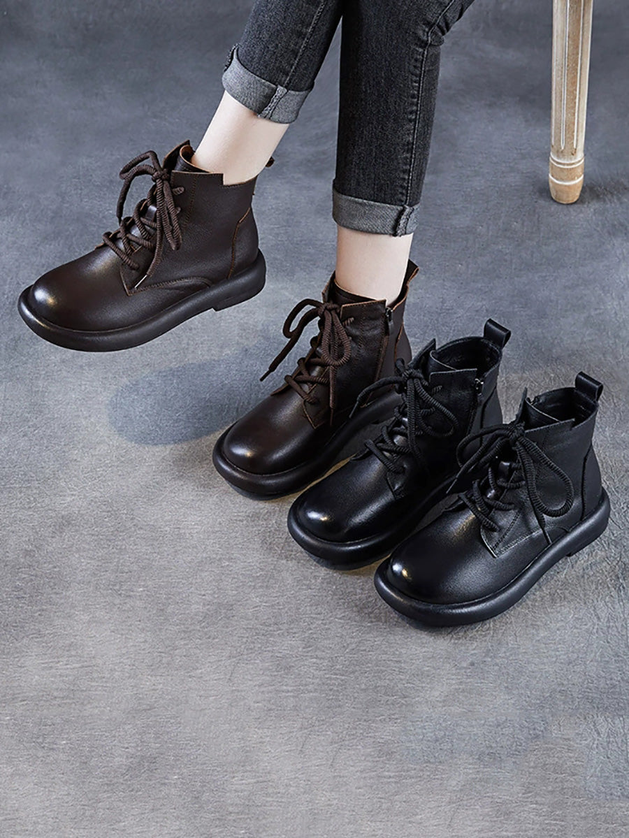 أحذية نسائية شتوية كلاسيكية من الجلد الطبيعي تصل إلى الكاحل