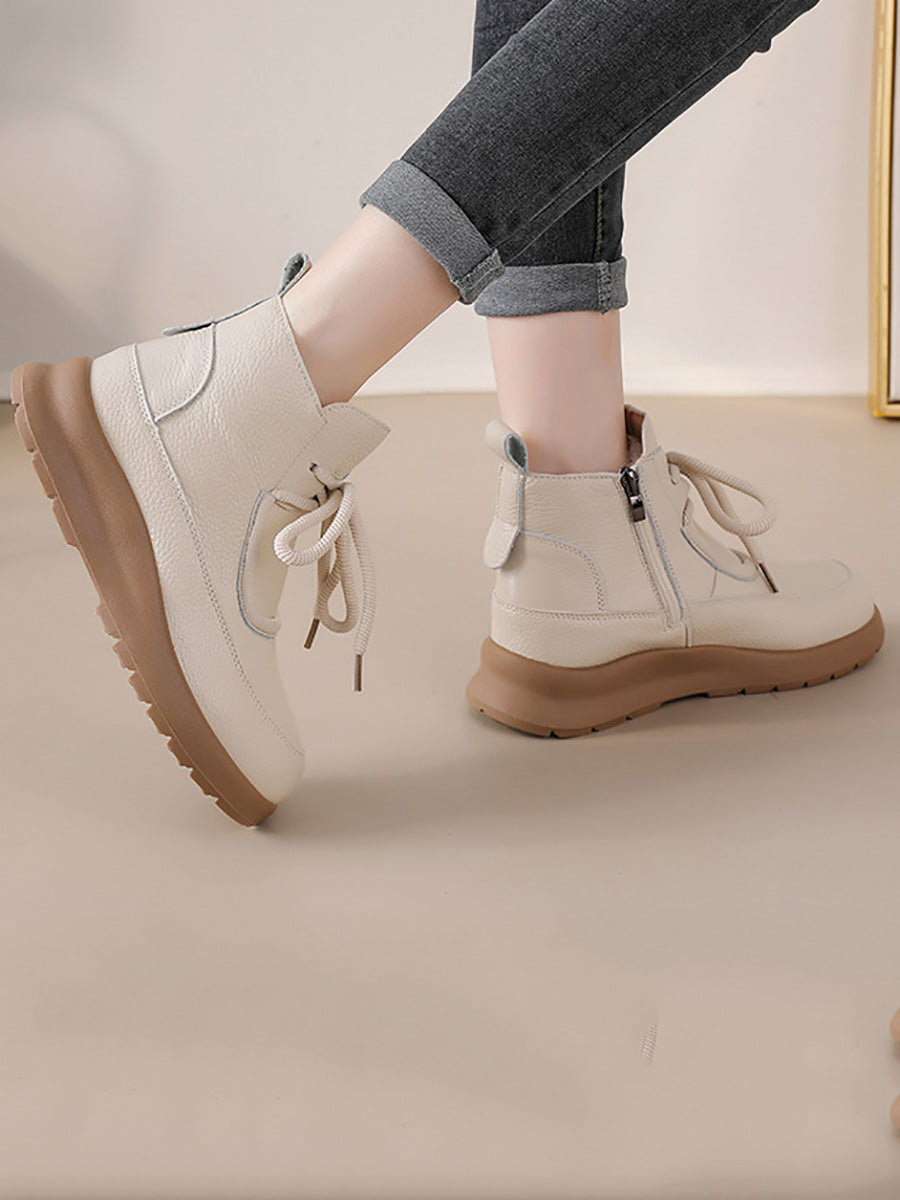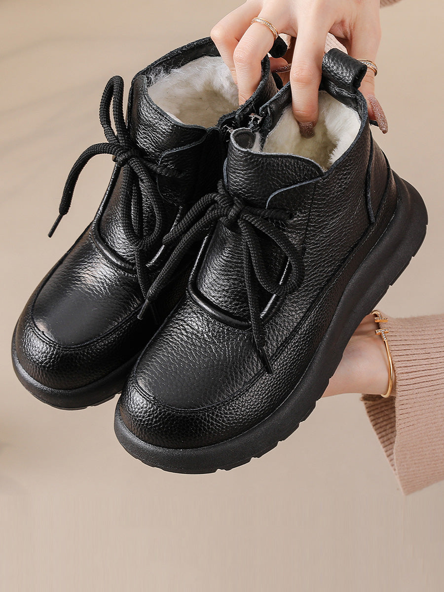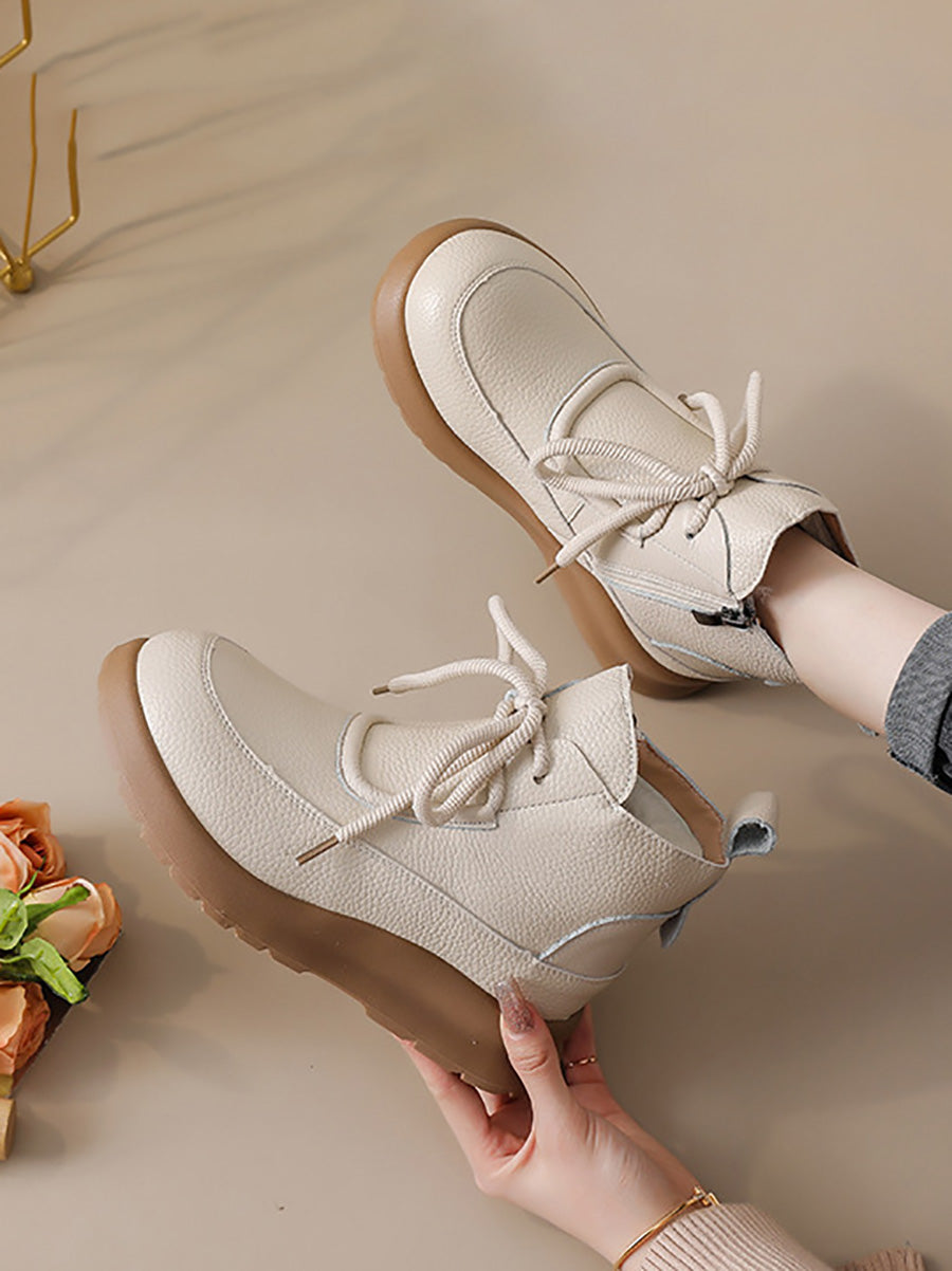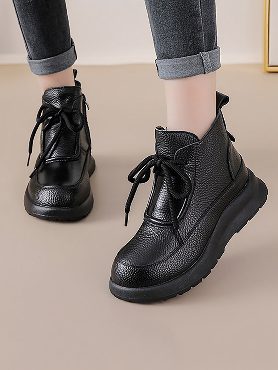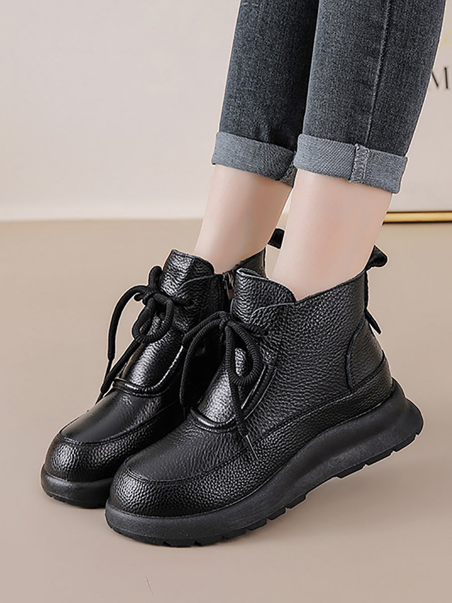 أحذية مارتن شتوية نسائية عتيقة الطراز من الجلد الطبيعي