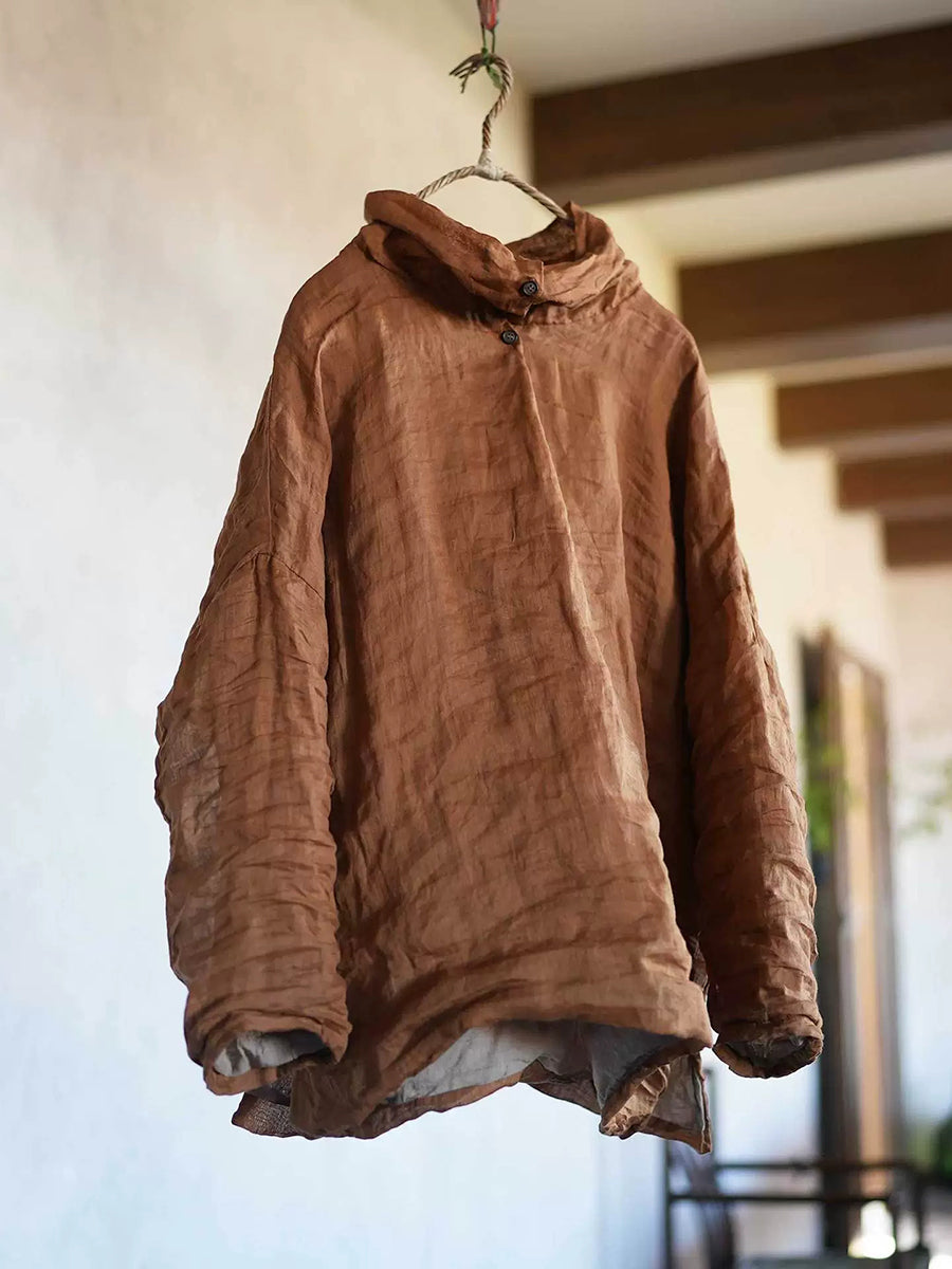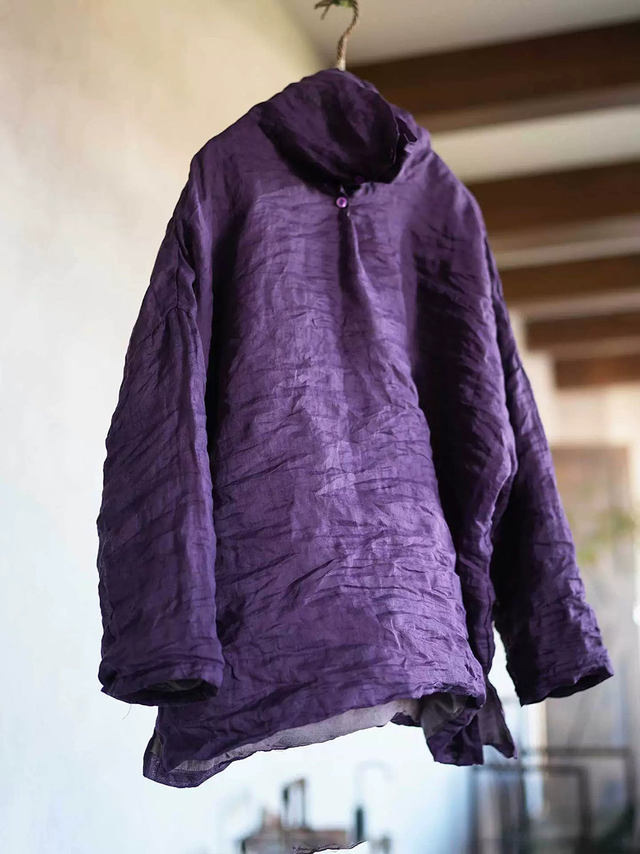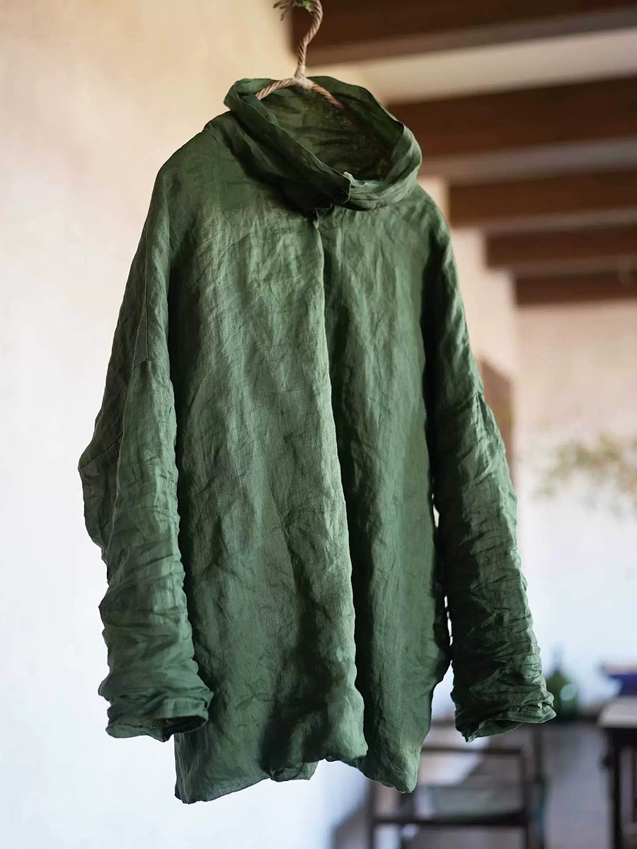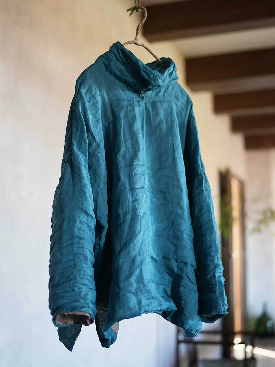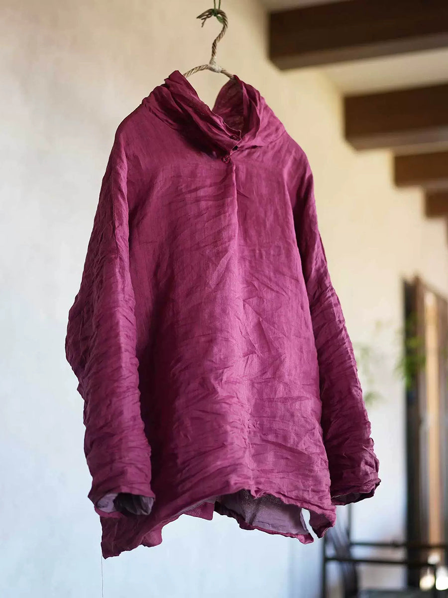 بلوزة نسائية ربيعية كلاسيكية بلون موحد من قماش الرامي بياقة عالية