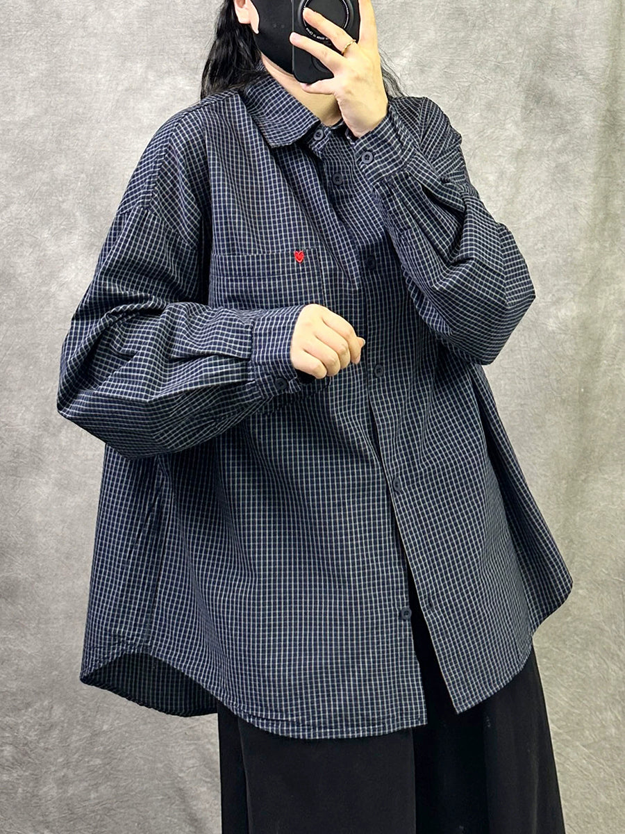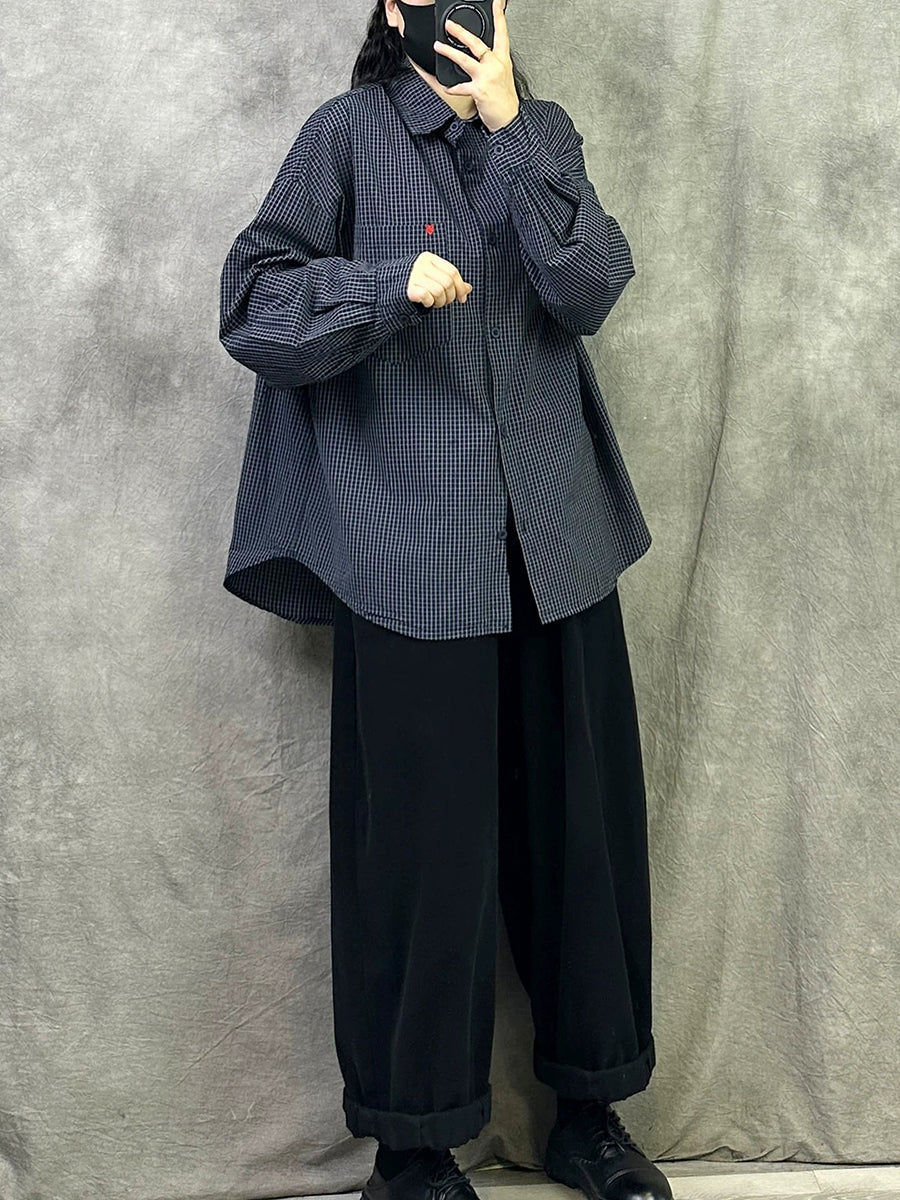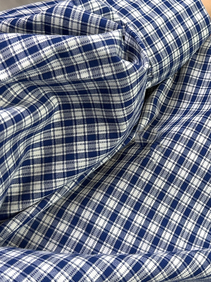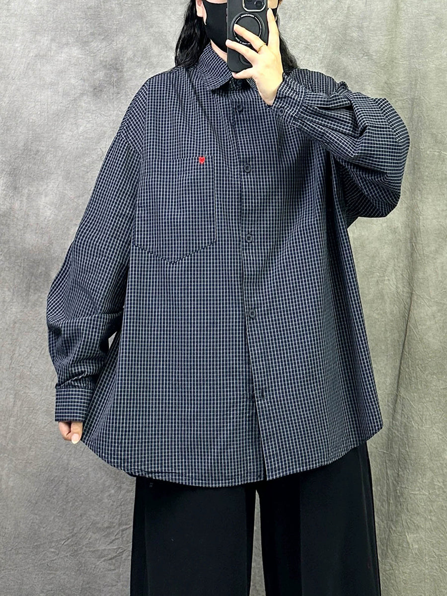 قميص قطني نسائي أنيق بنمط شبكي ربيعي وياقة مطوية