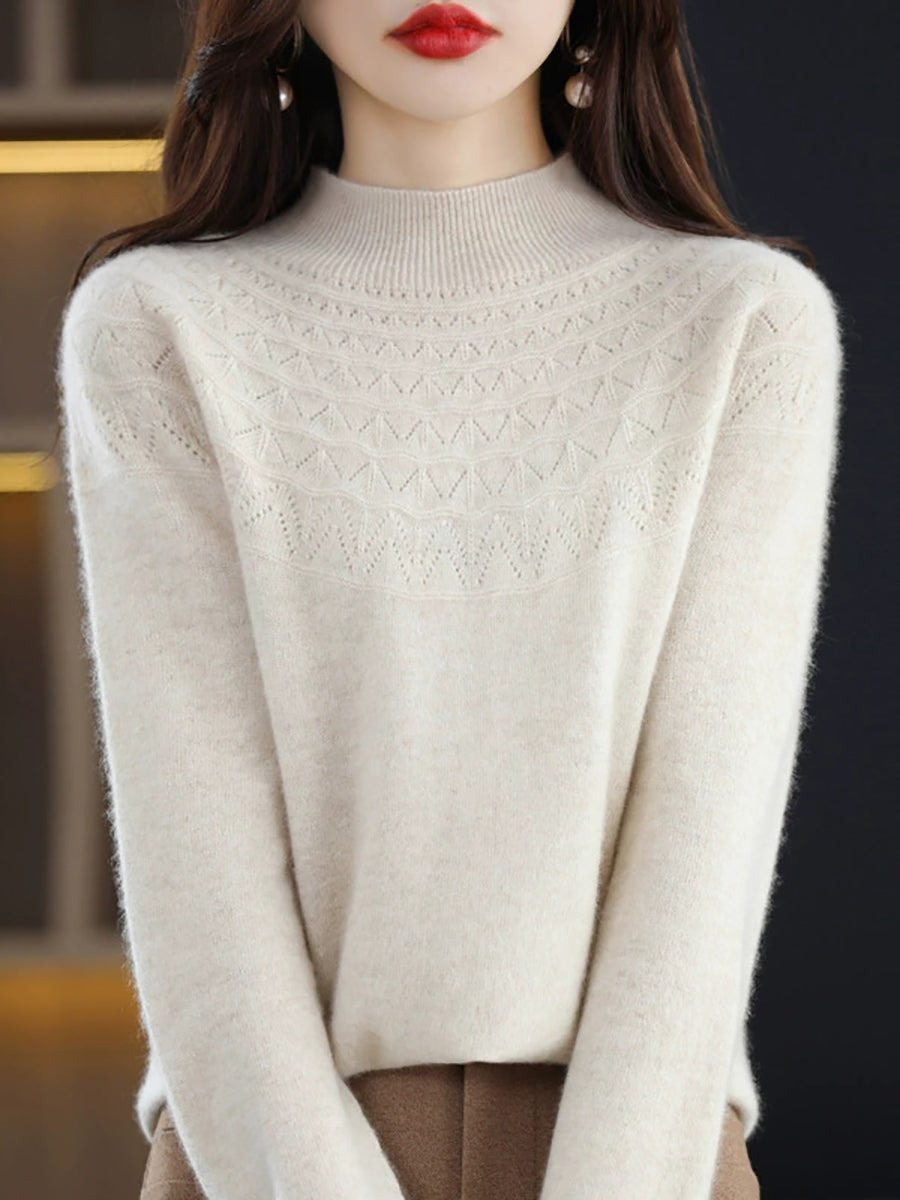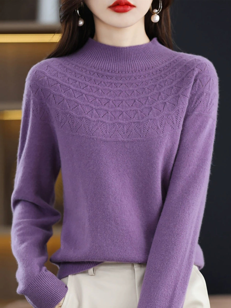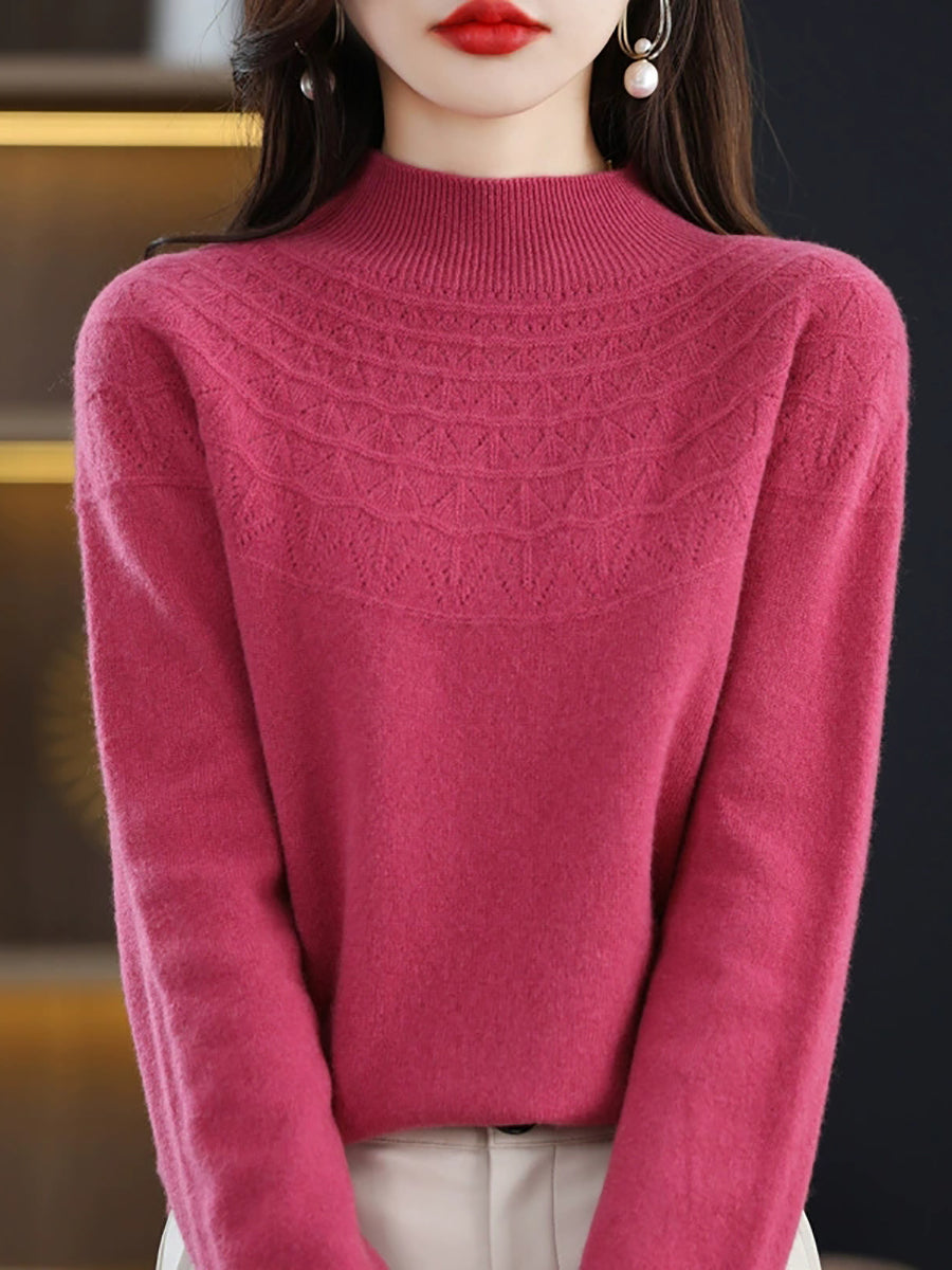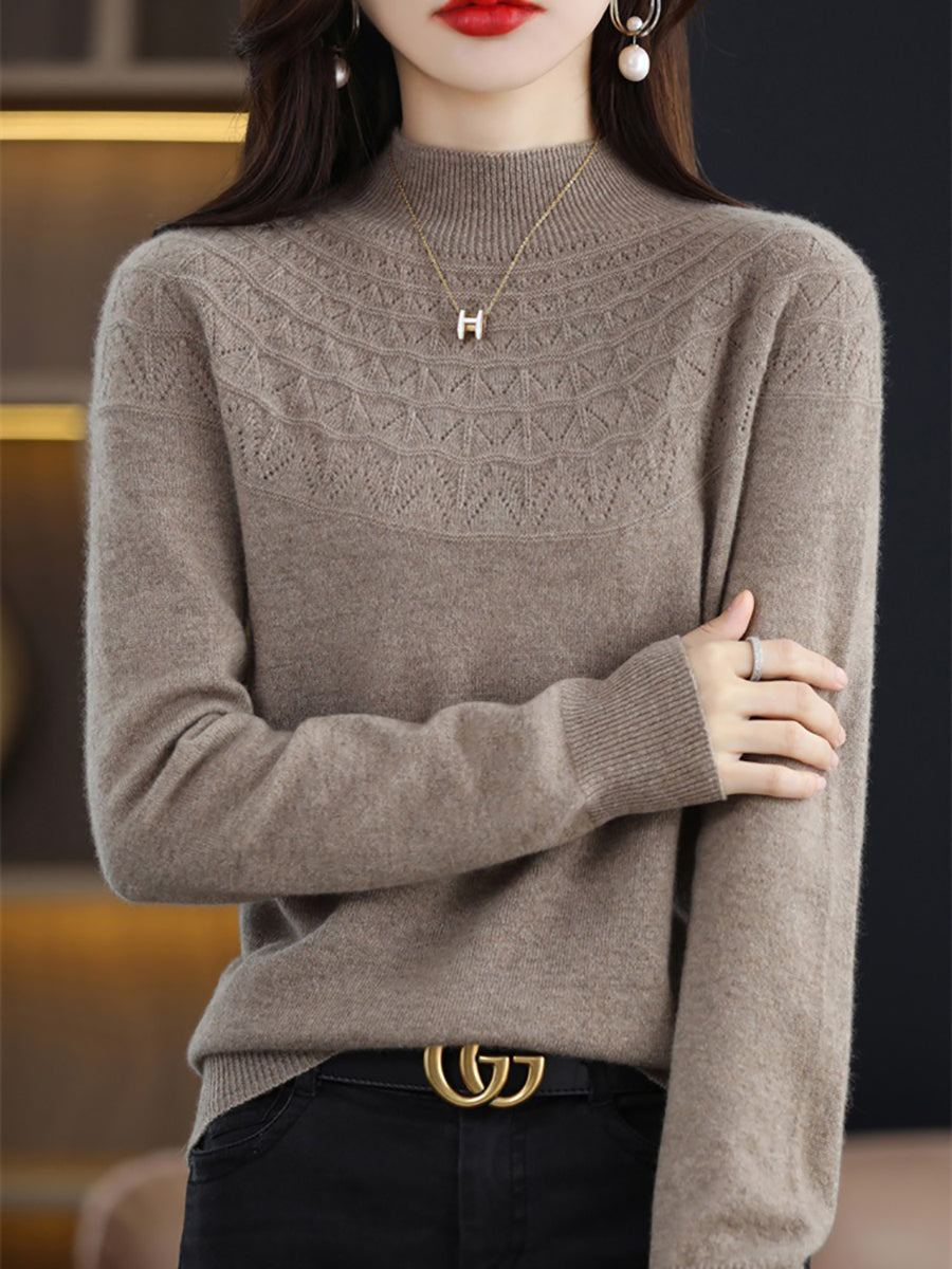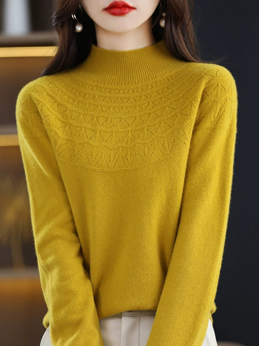 كنزة نسائية خريفية فنية محبوكة بنصف ياقة عالية