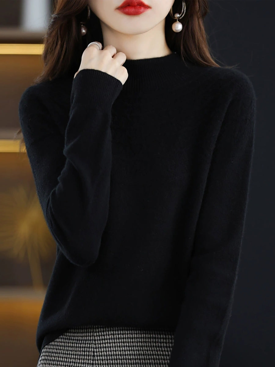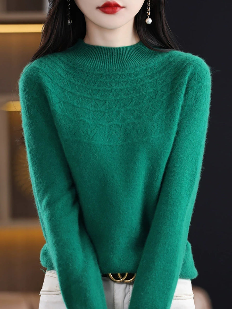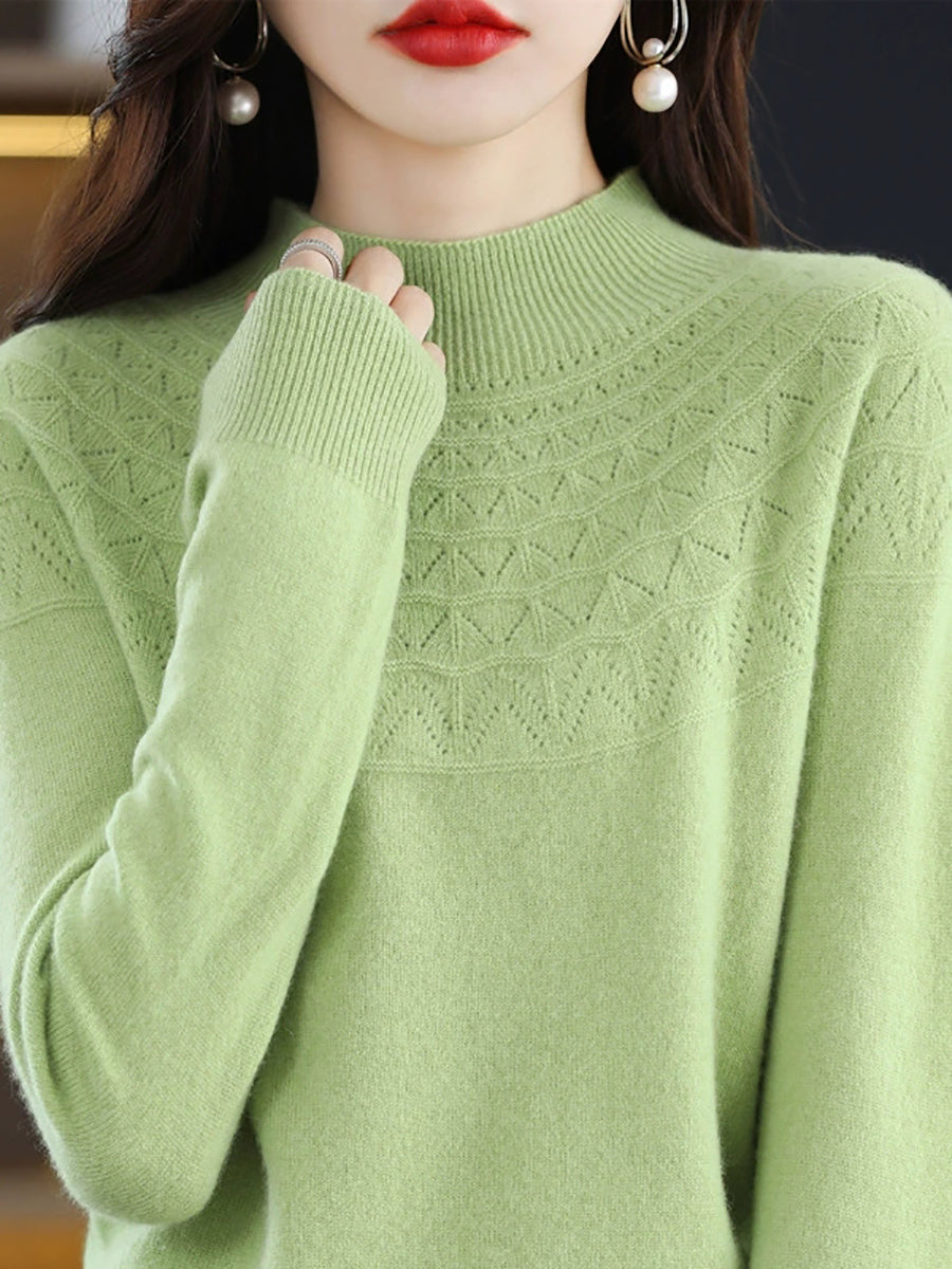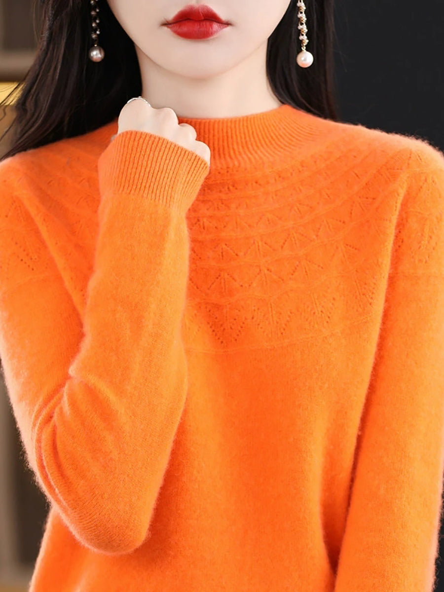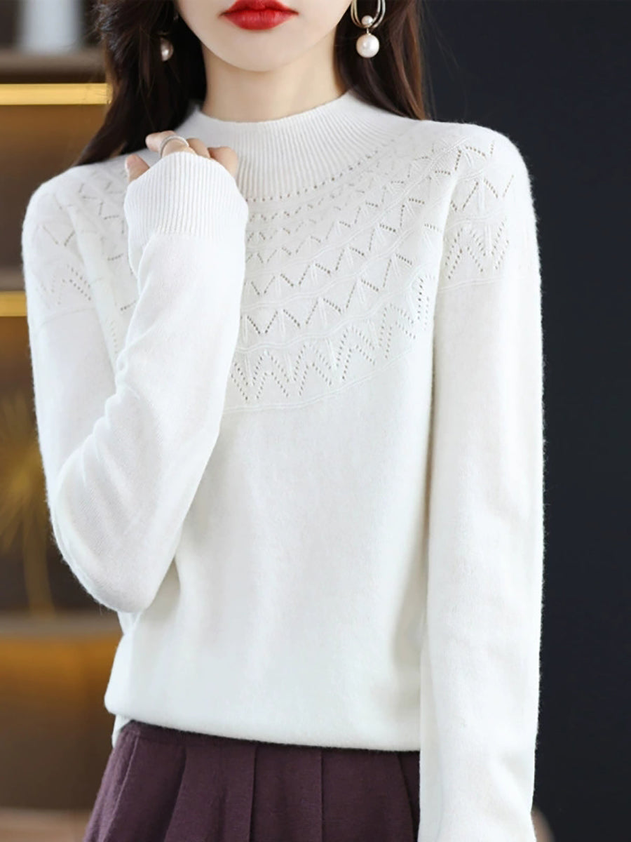 كنزة نسائية خريفية فنية محبوكة بنصف ياقة عالية