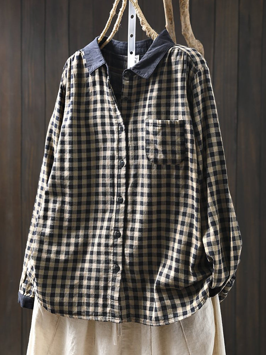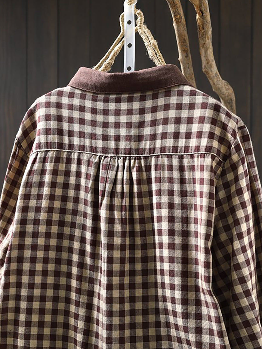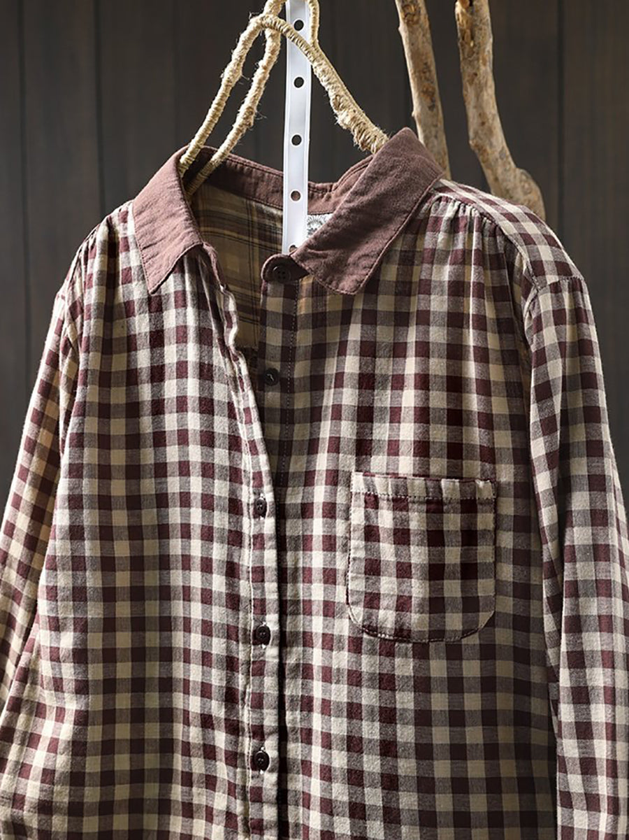 قميص نسائي ربيعي فني بنقشة مربعات ملونة من القطن الخالص 100%
