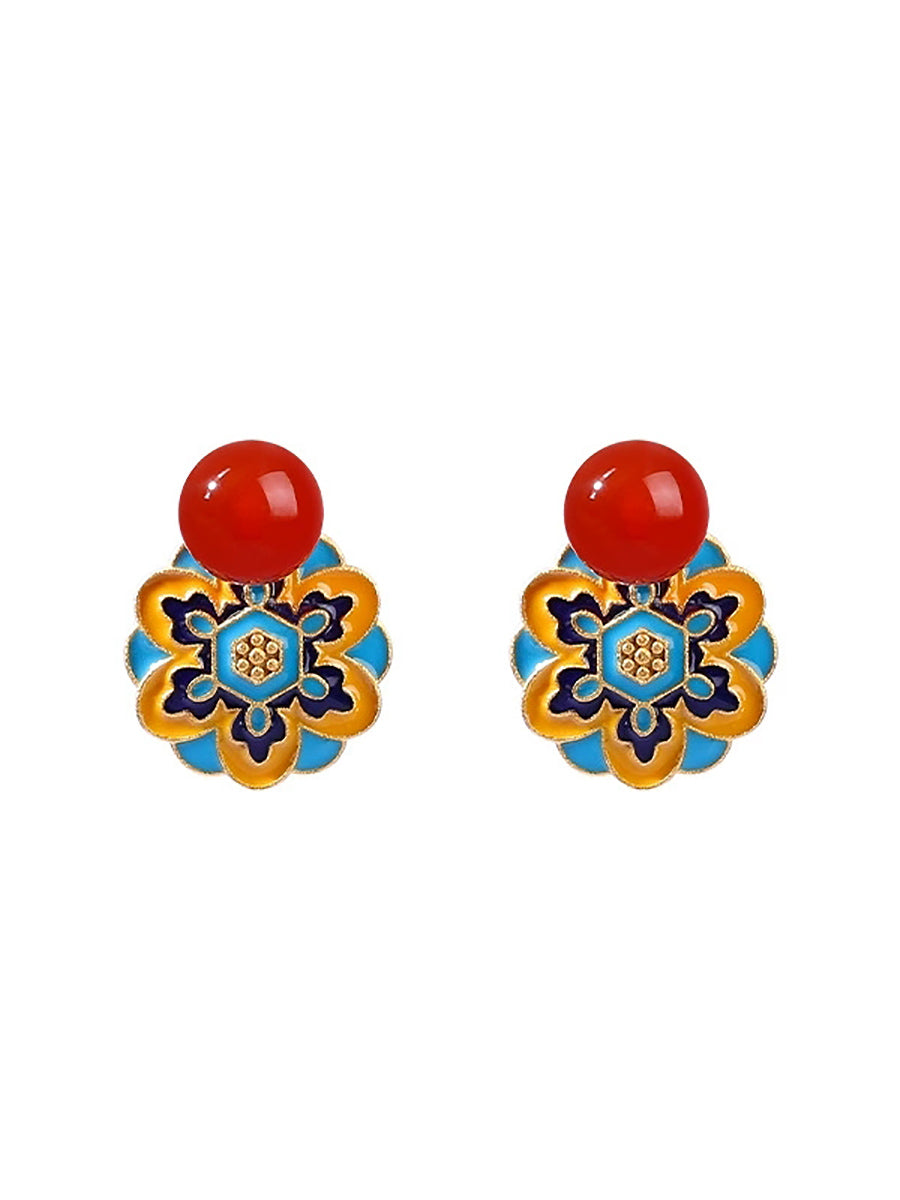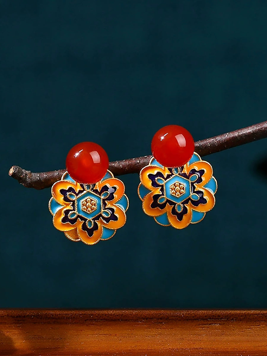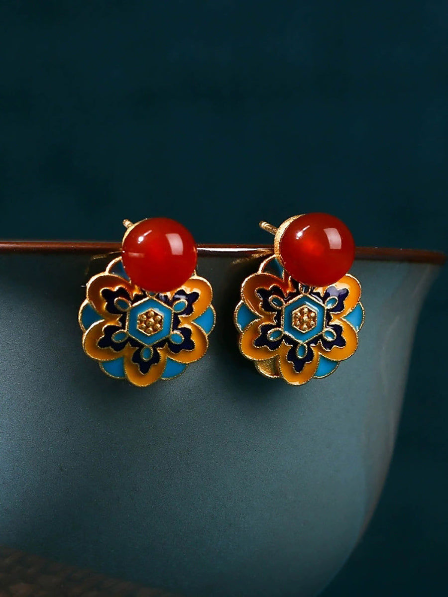 أقراط عتيقة من اليشم والمينا وزهرة اللوتس المصنوعة من سبيكة معدنية