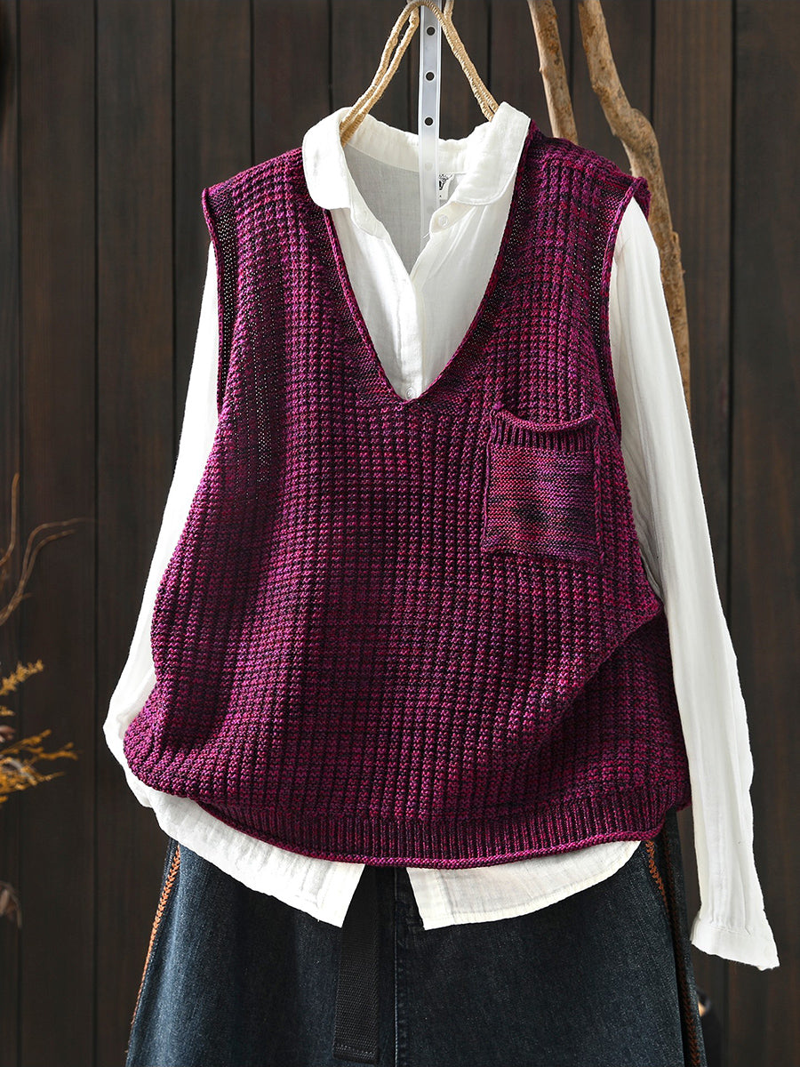 صدرية نسائية ربيعية فنية محبوكة بياقة على شكل حرف V