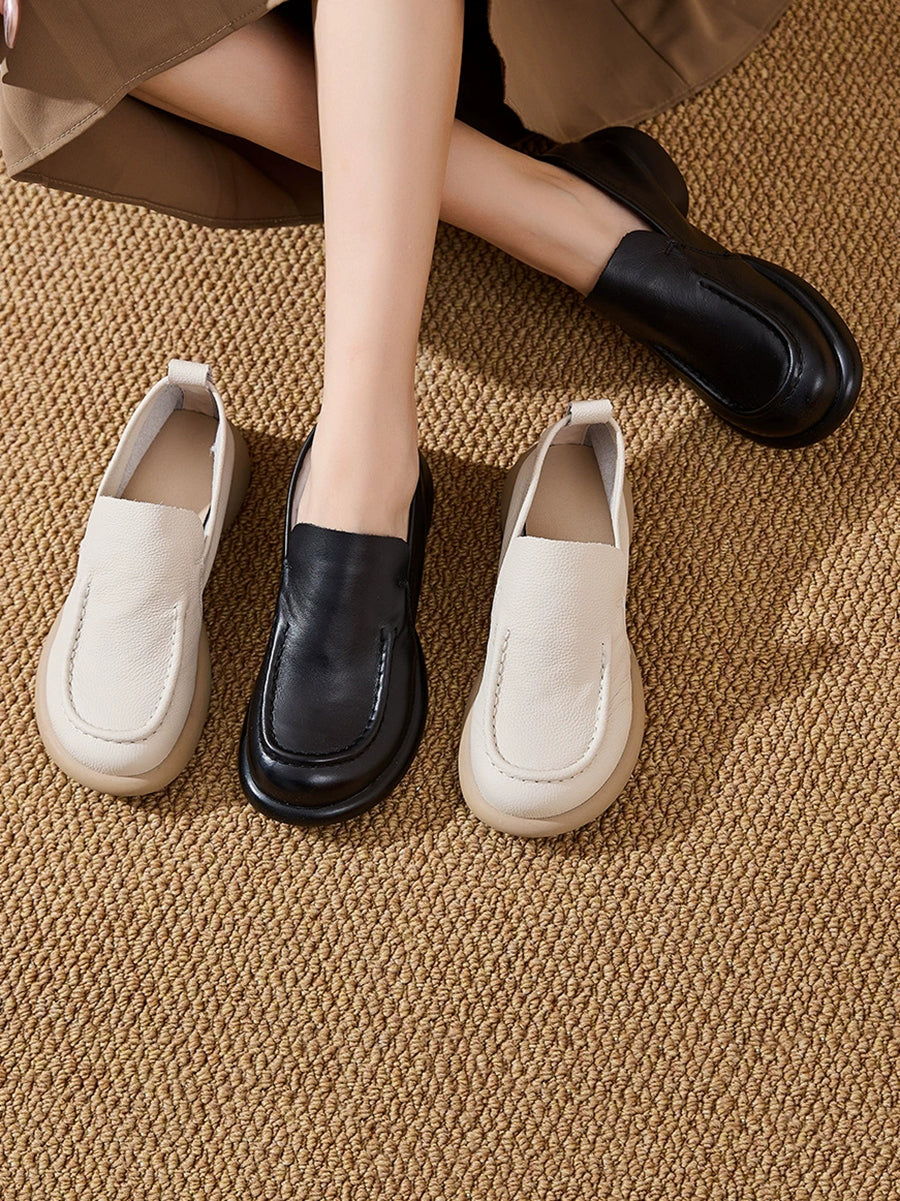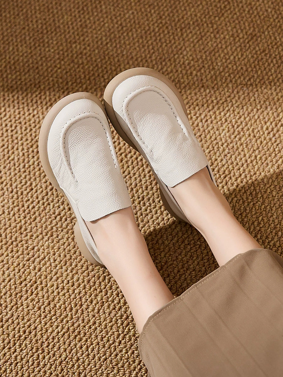 أحذية نسائية ربيعية من الجلد الطبيعي بتصميم مقسم وكعب منخفض