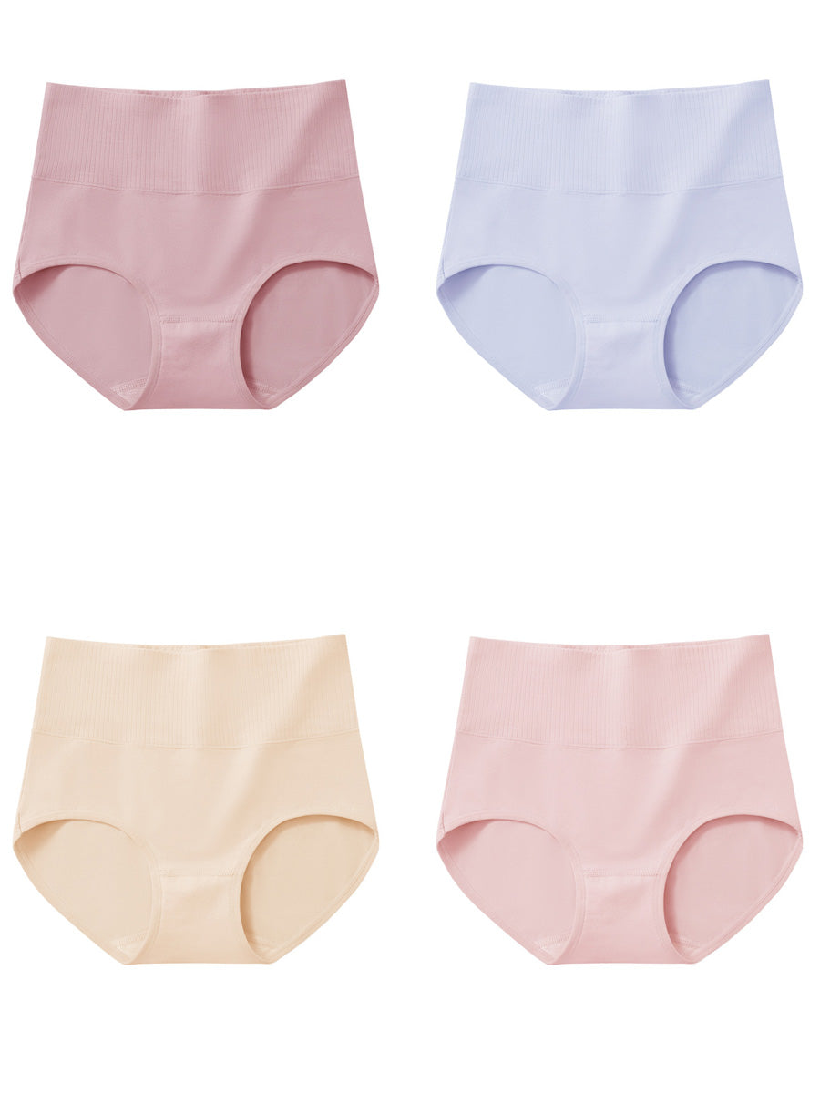 4 قطع ملابس داخلية نسائية عالية الخصر بلون نقي