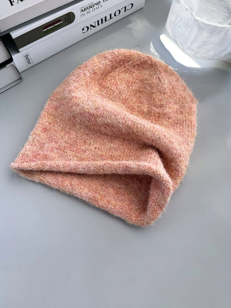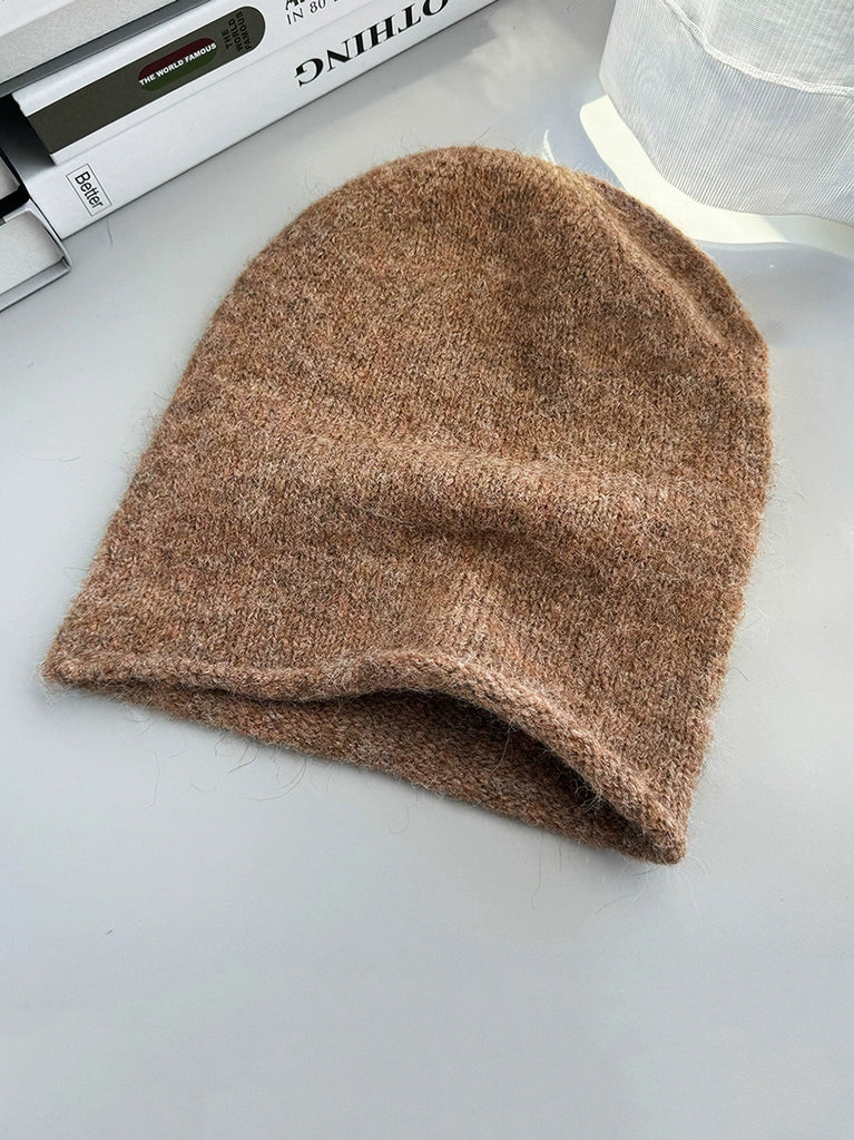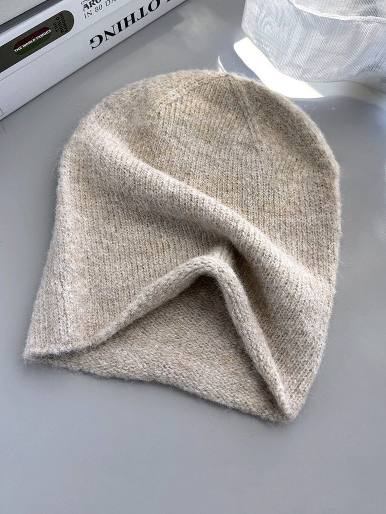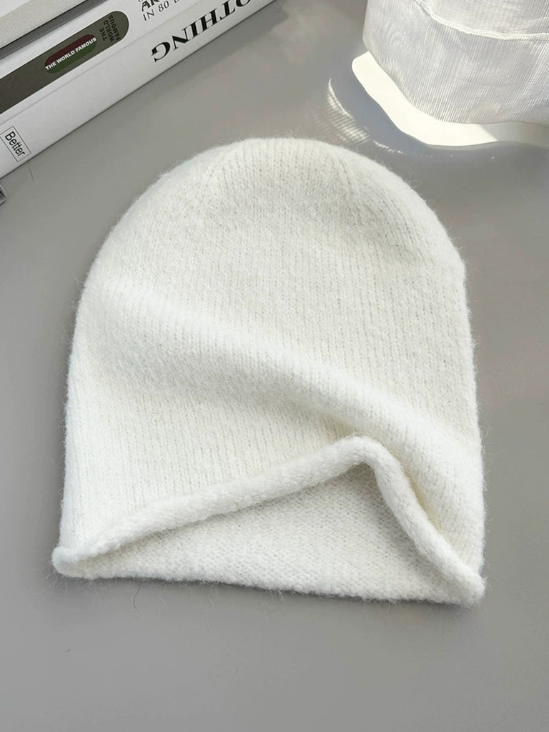 قبعة شتوية محبوكة دافئة بلون نقي للنساء