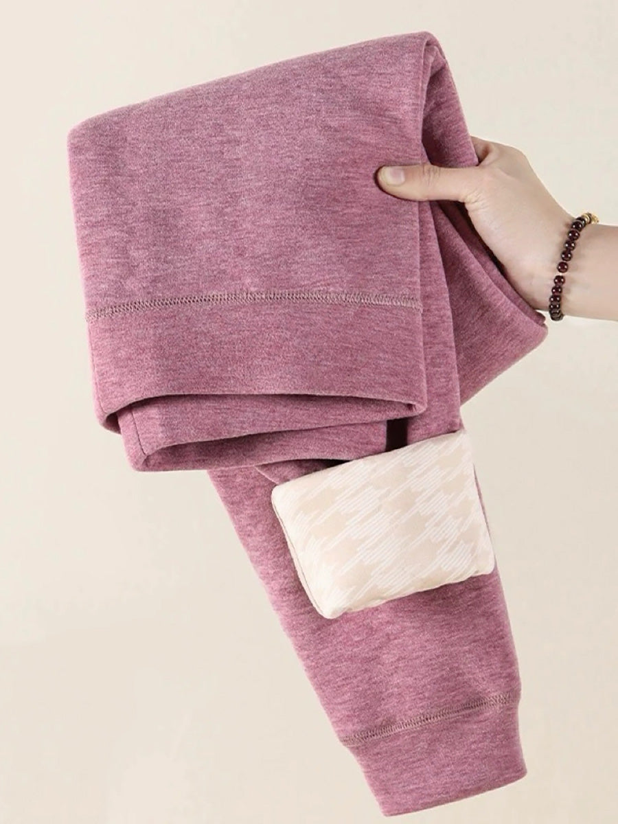 بنطال ضيق مبطن بالصوف بلون نقي ودافئ للشتاء