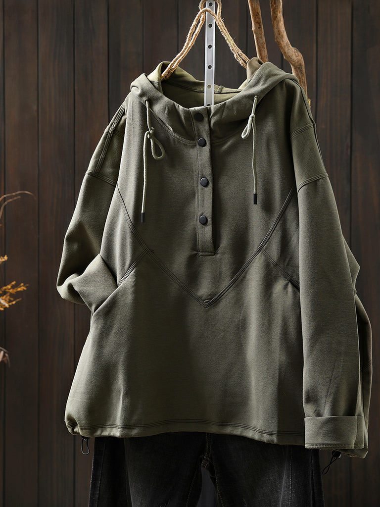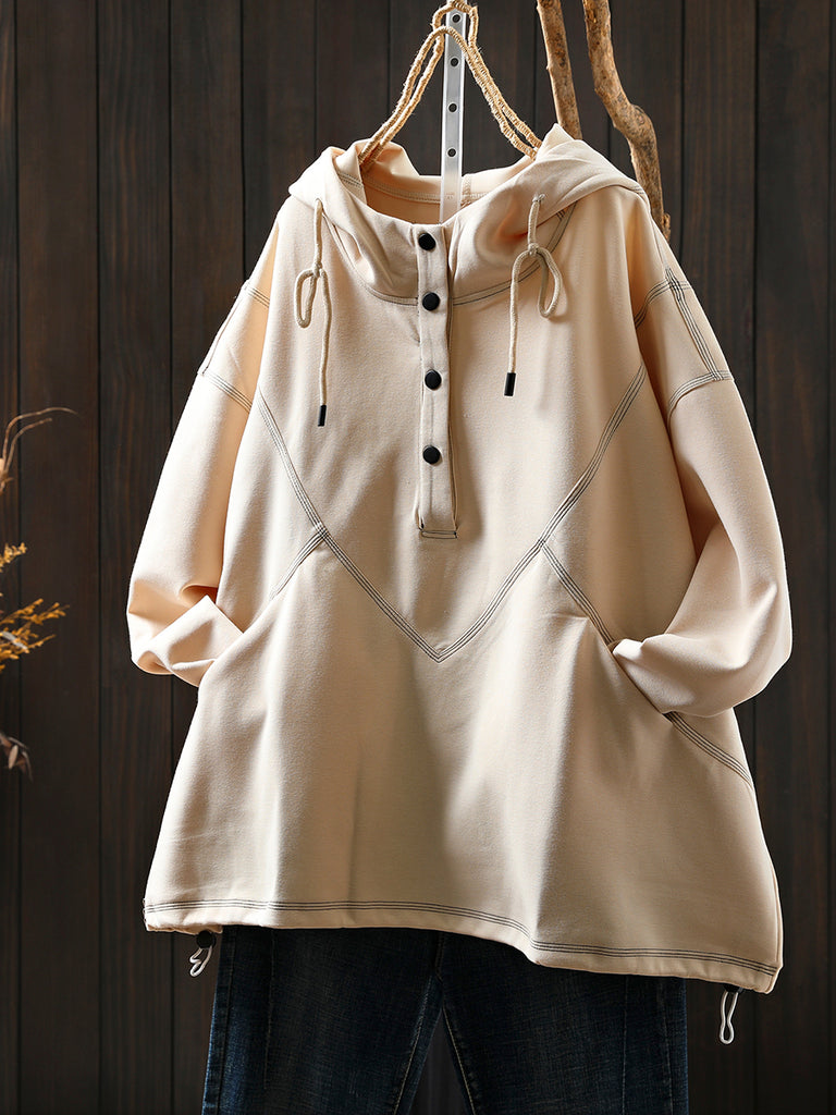 هودي نسائي كاجوال من القطن بلون نقي لفصل الخريف