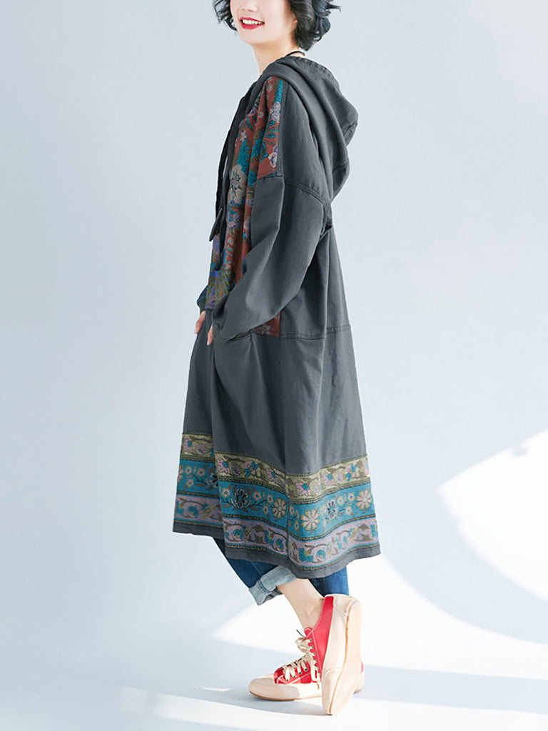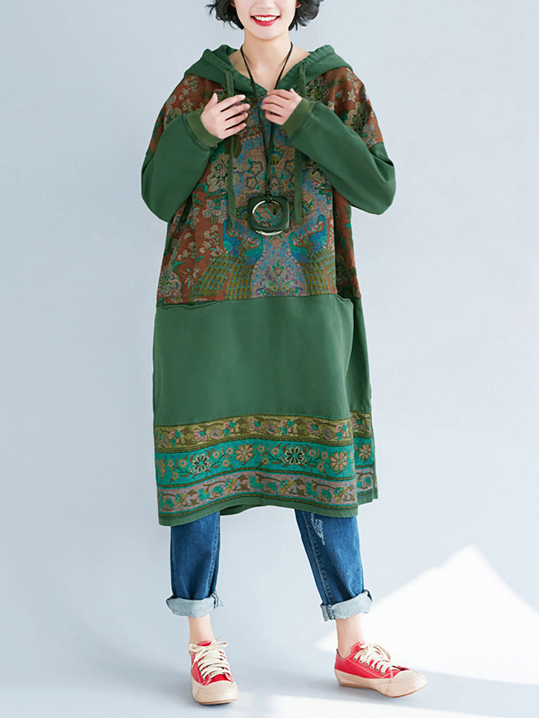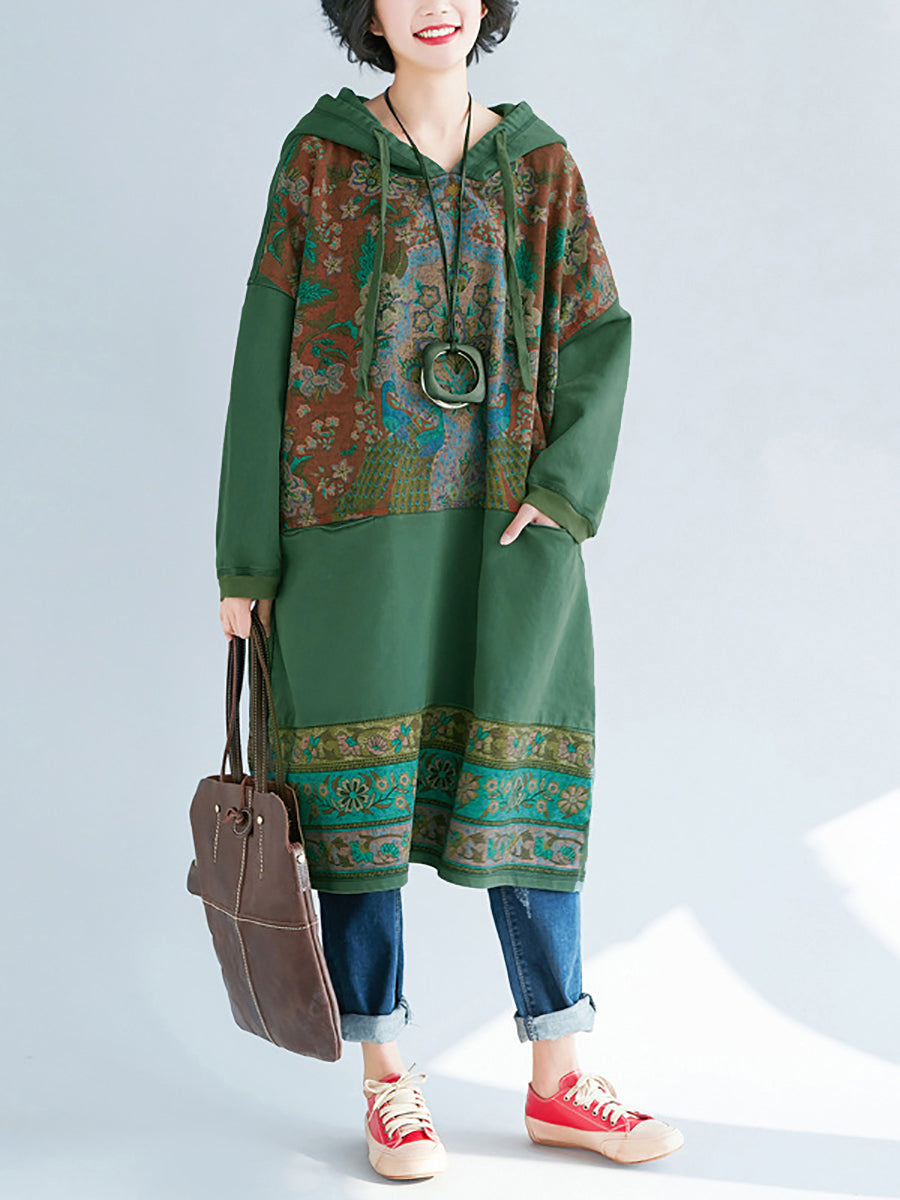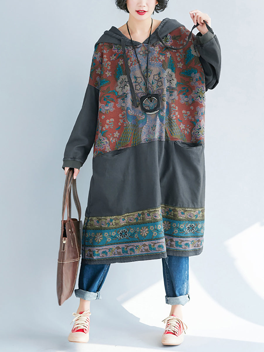 فستان نسائي بغطاء للرأس بجيب طويل مزين بالزهور العرقية