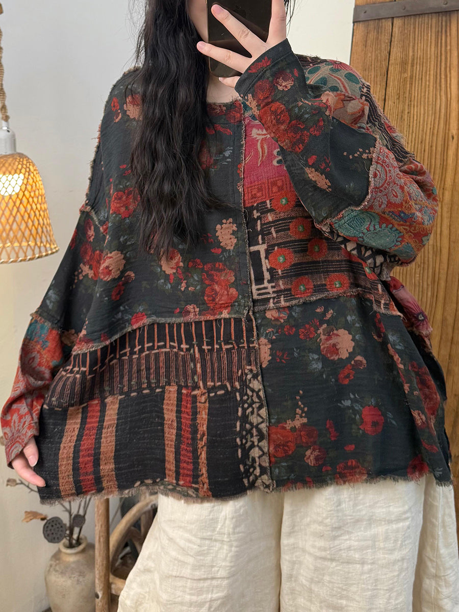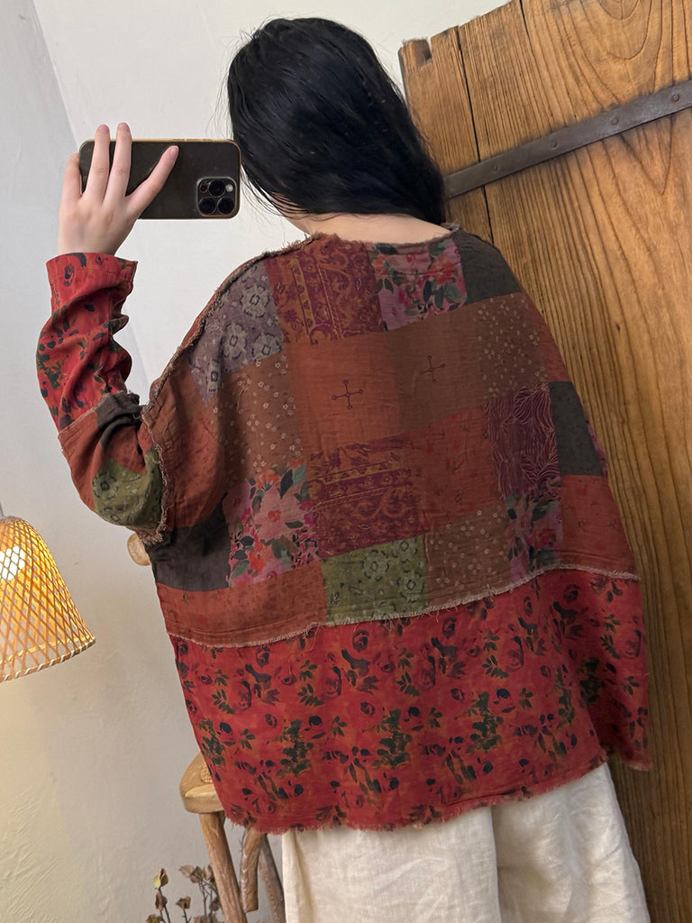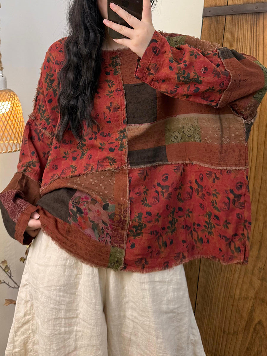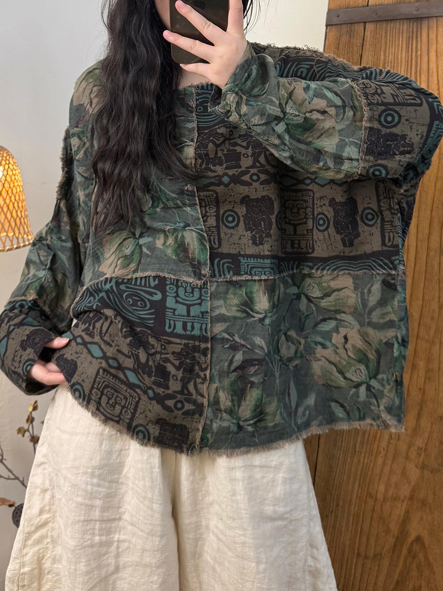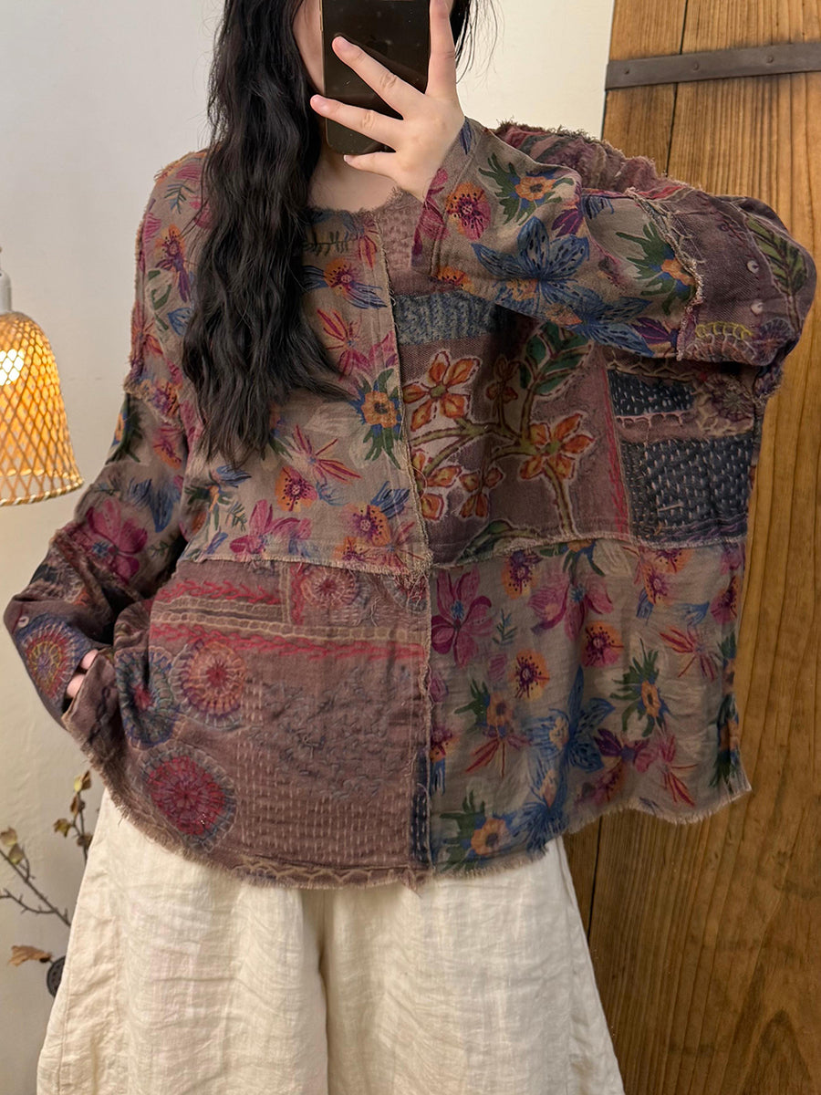 معطف نسائي من القطن بتصميم ريترو خريفي مزين بزهرة برقبة دائرية