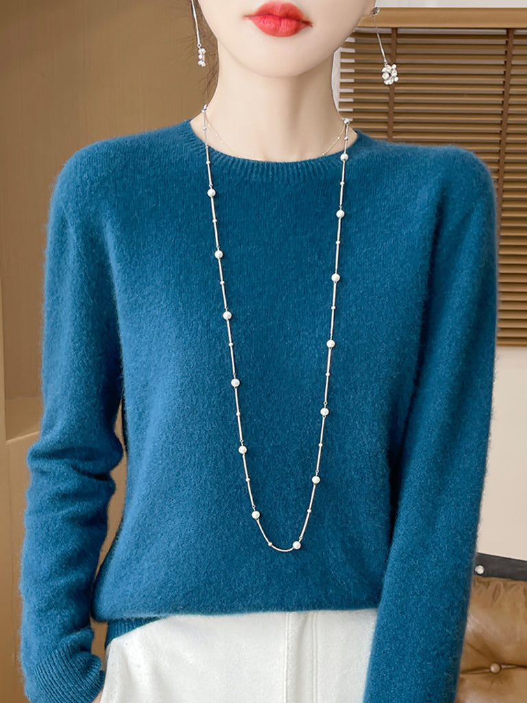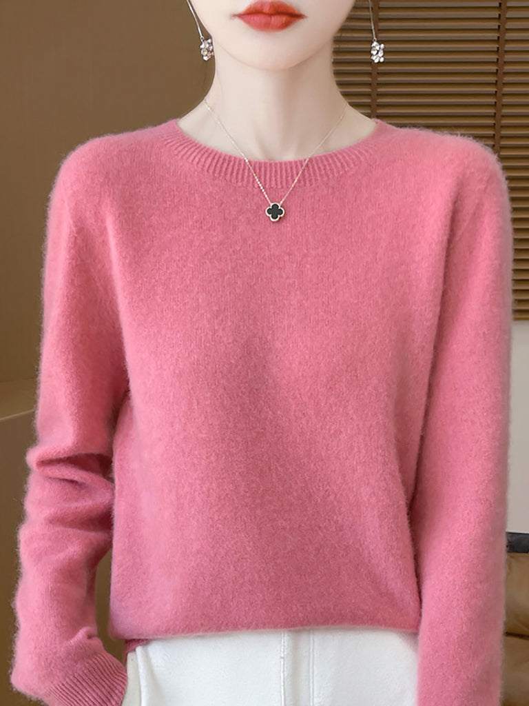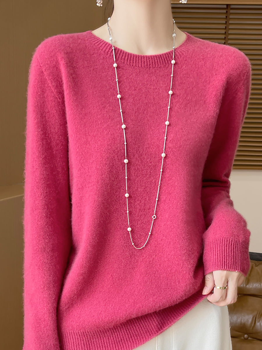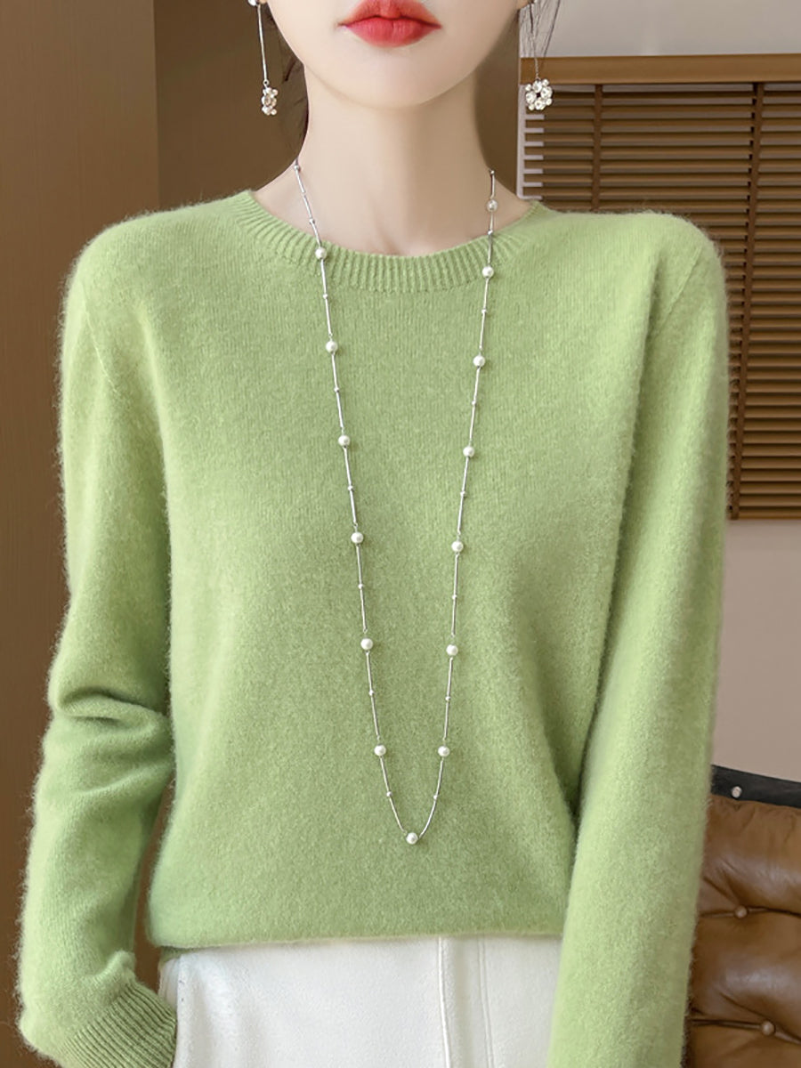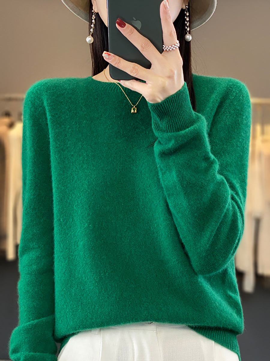 سترة صوفية شتوية نسائية بلون نقي برقبة دائرية