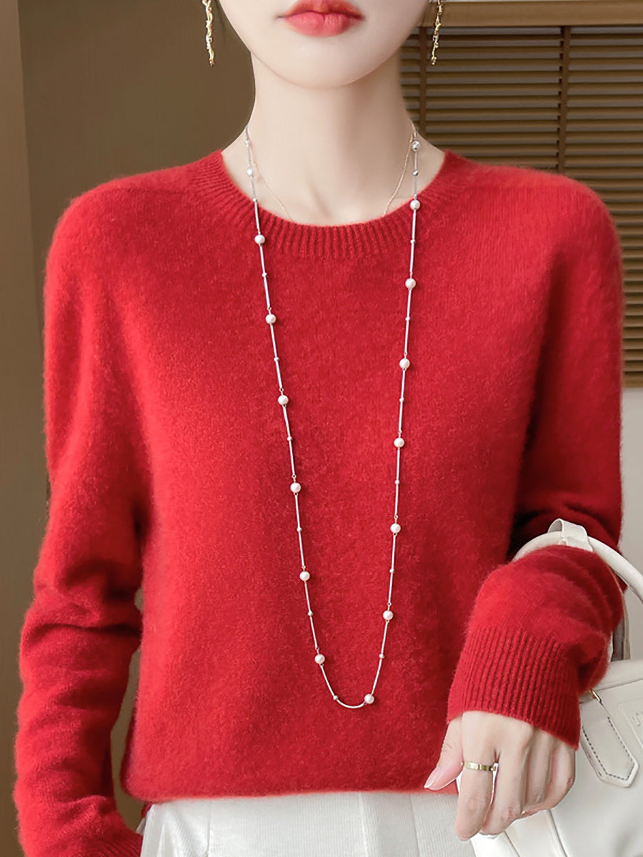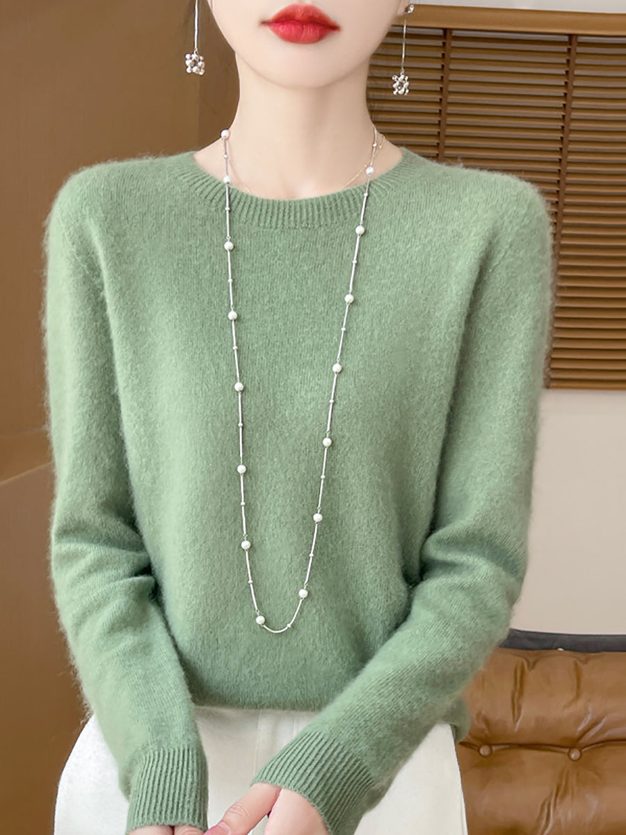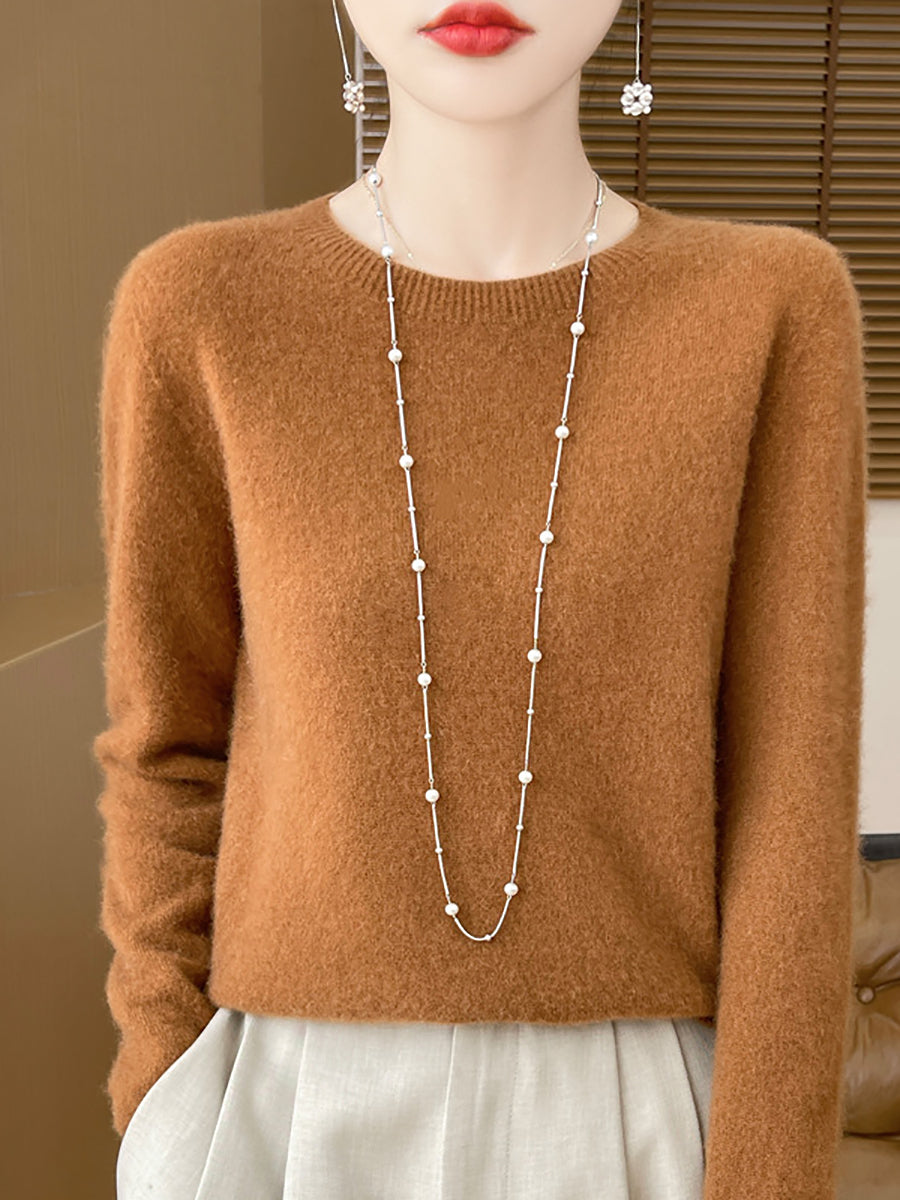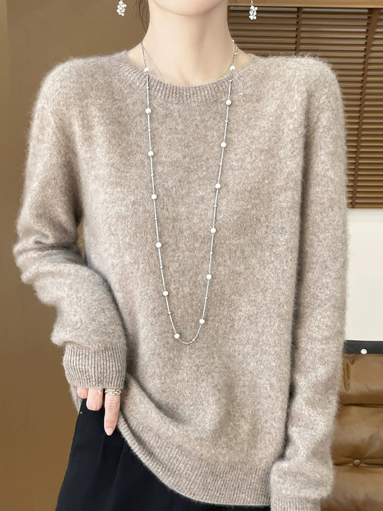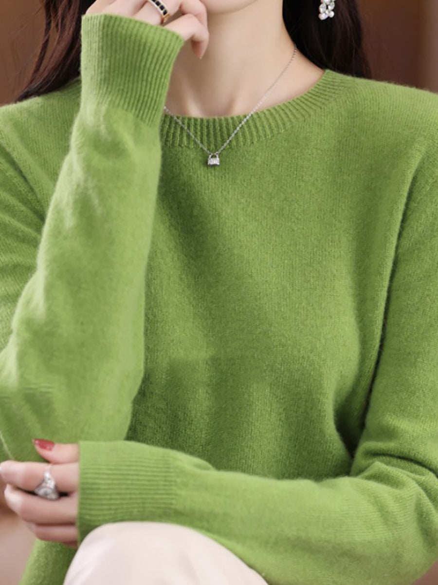 سترة صوفية شتوية نسائية بلون نقي برقبة دائرية