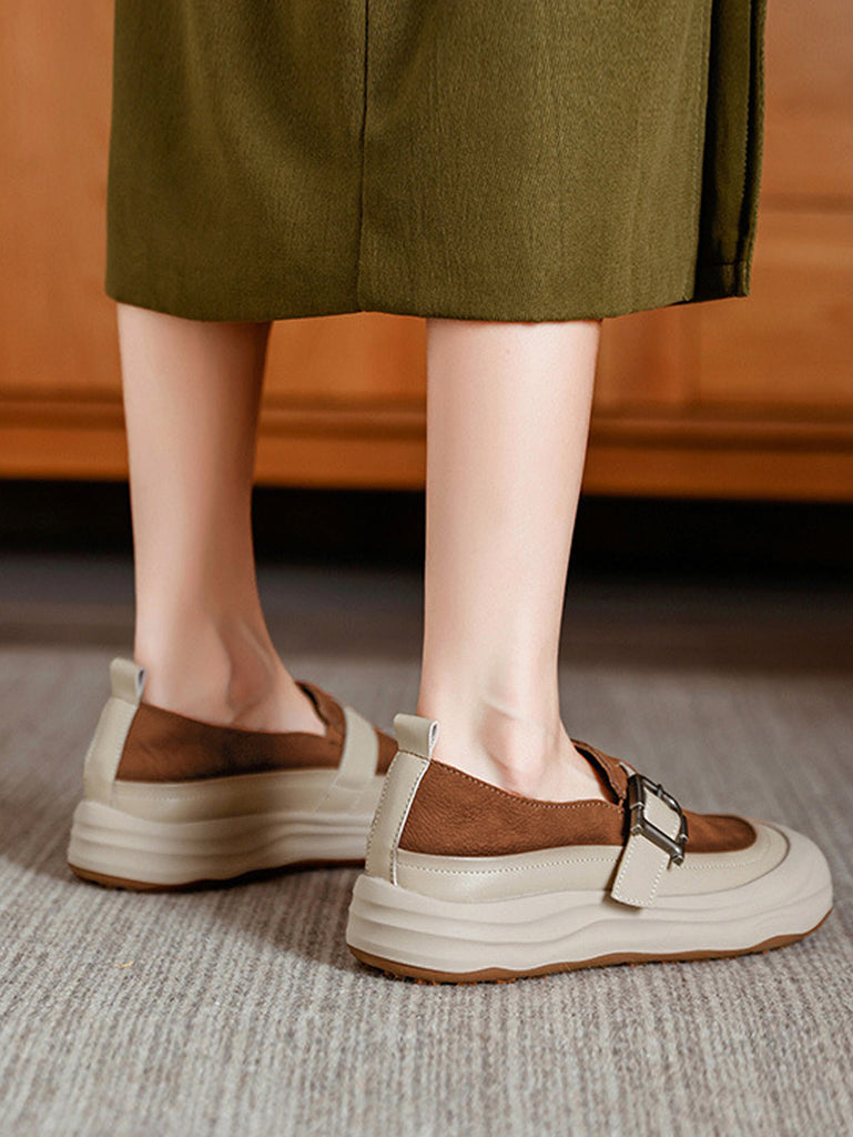 حذاء مسطح من الجلد بألوان الخريف للنساء