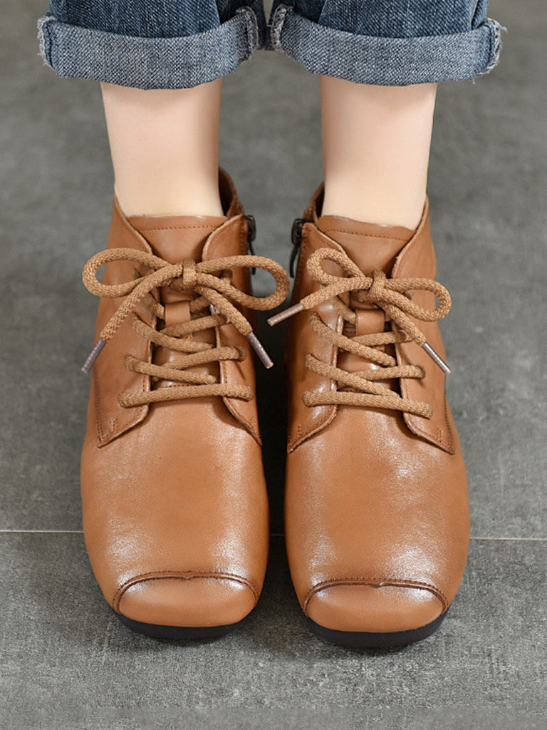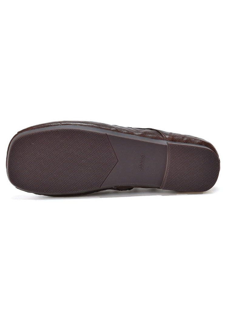 حذاء نسائي خريفي بكعب منخفض من الجلد الطبيعي