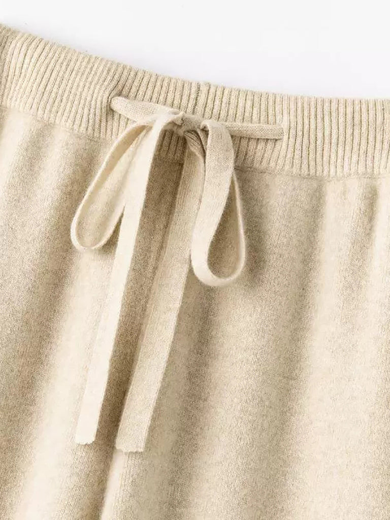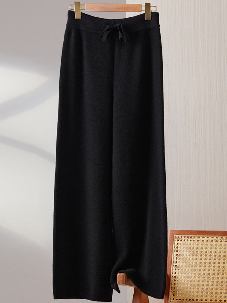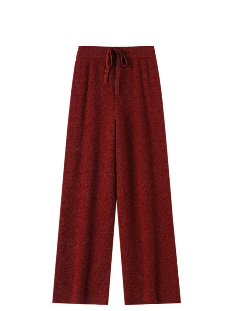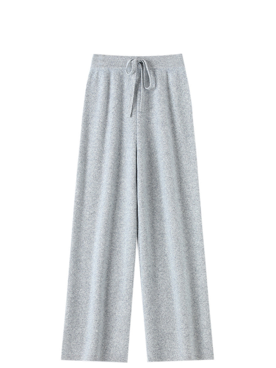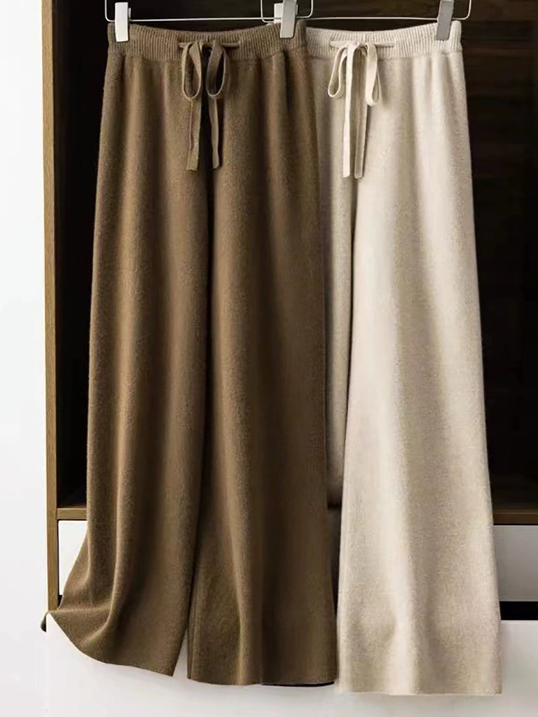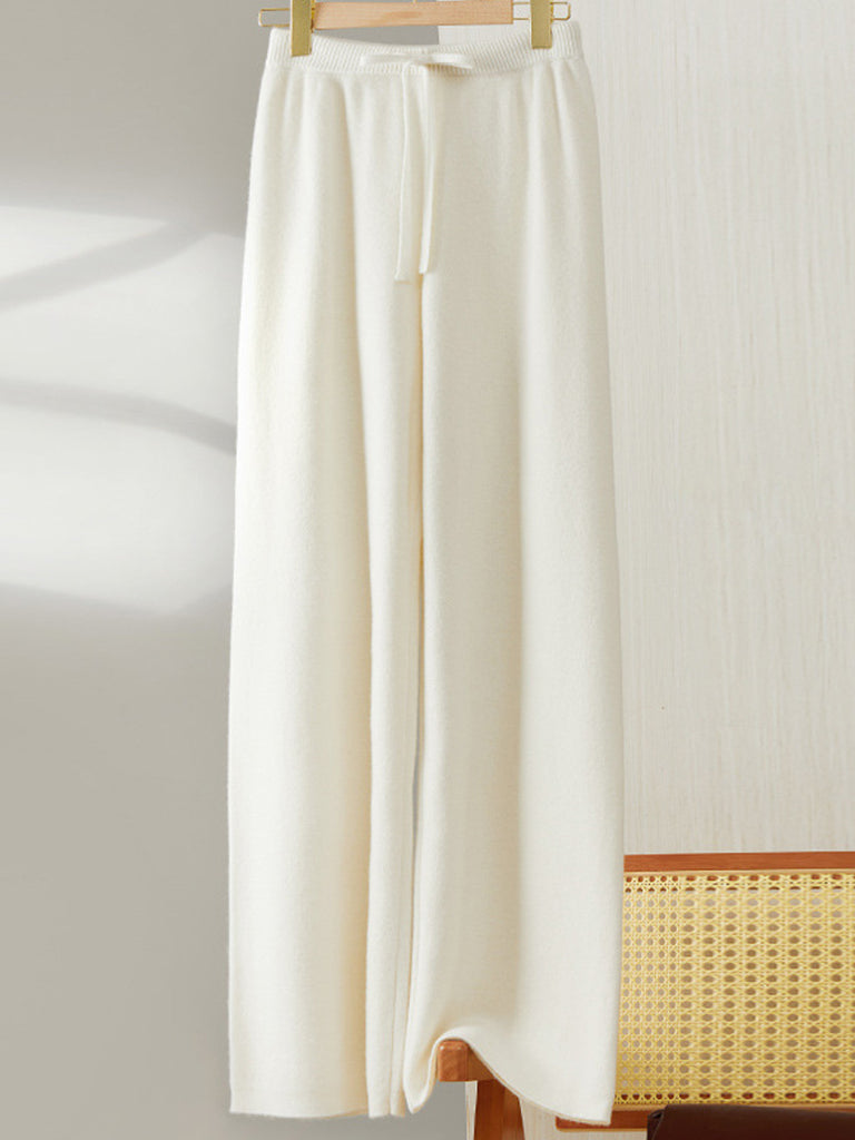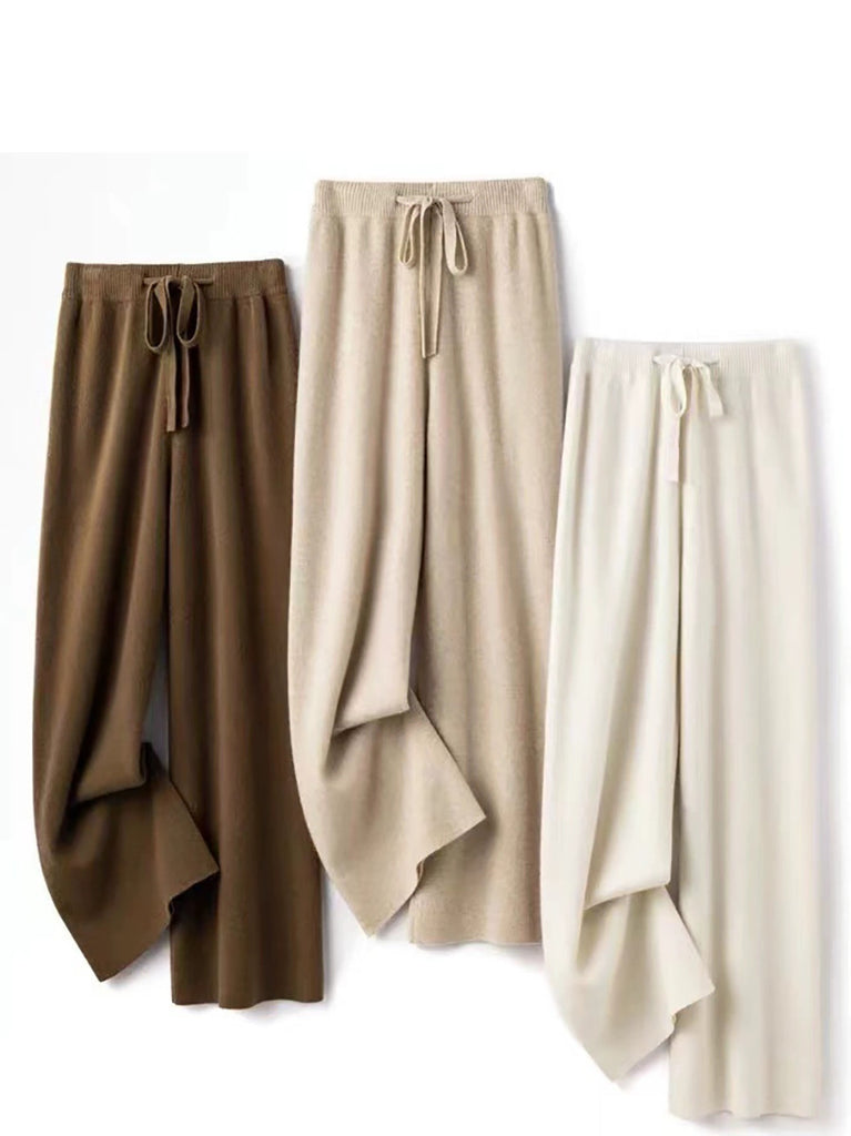 بنطلون نسائي شتوي واسع الساق من الصوف المحبوك بلون نقي