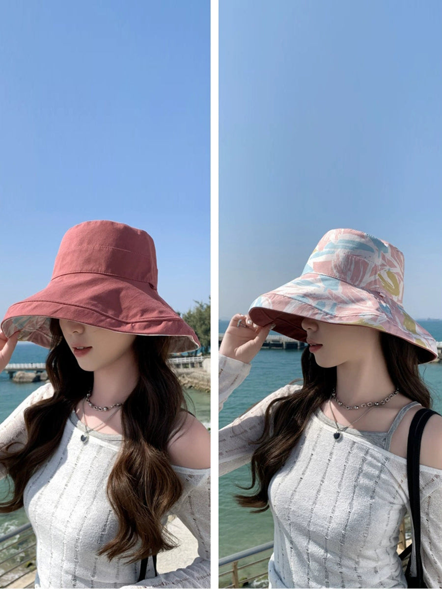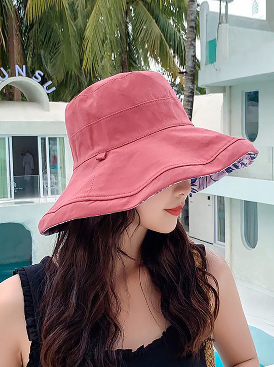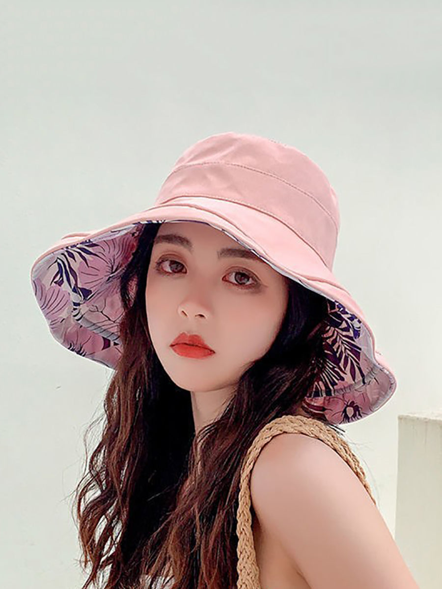 قبعة صيفية نسائية مزينة بالزهور، يمكن ارتداؤها على الوجهين