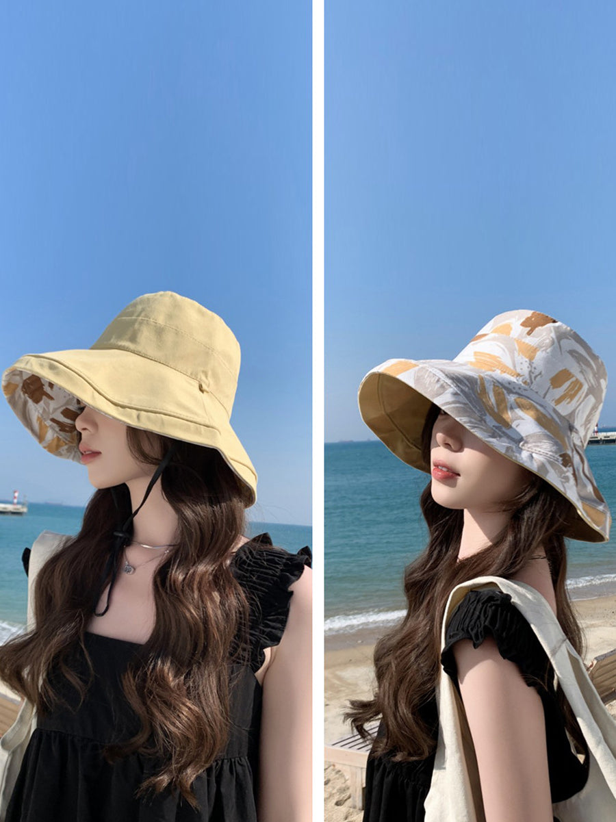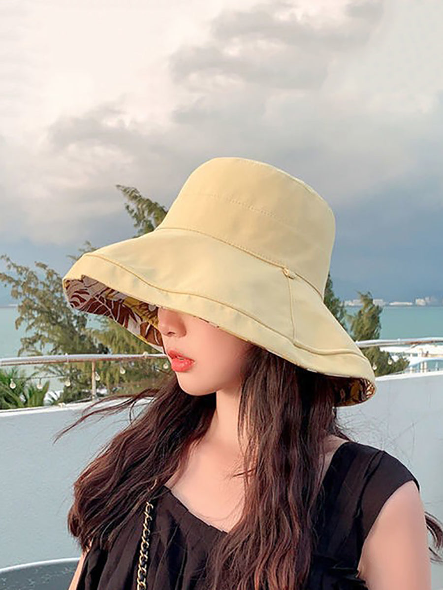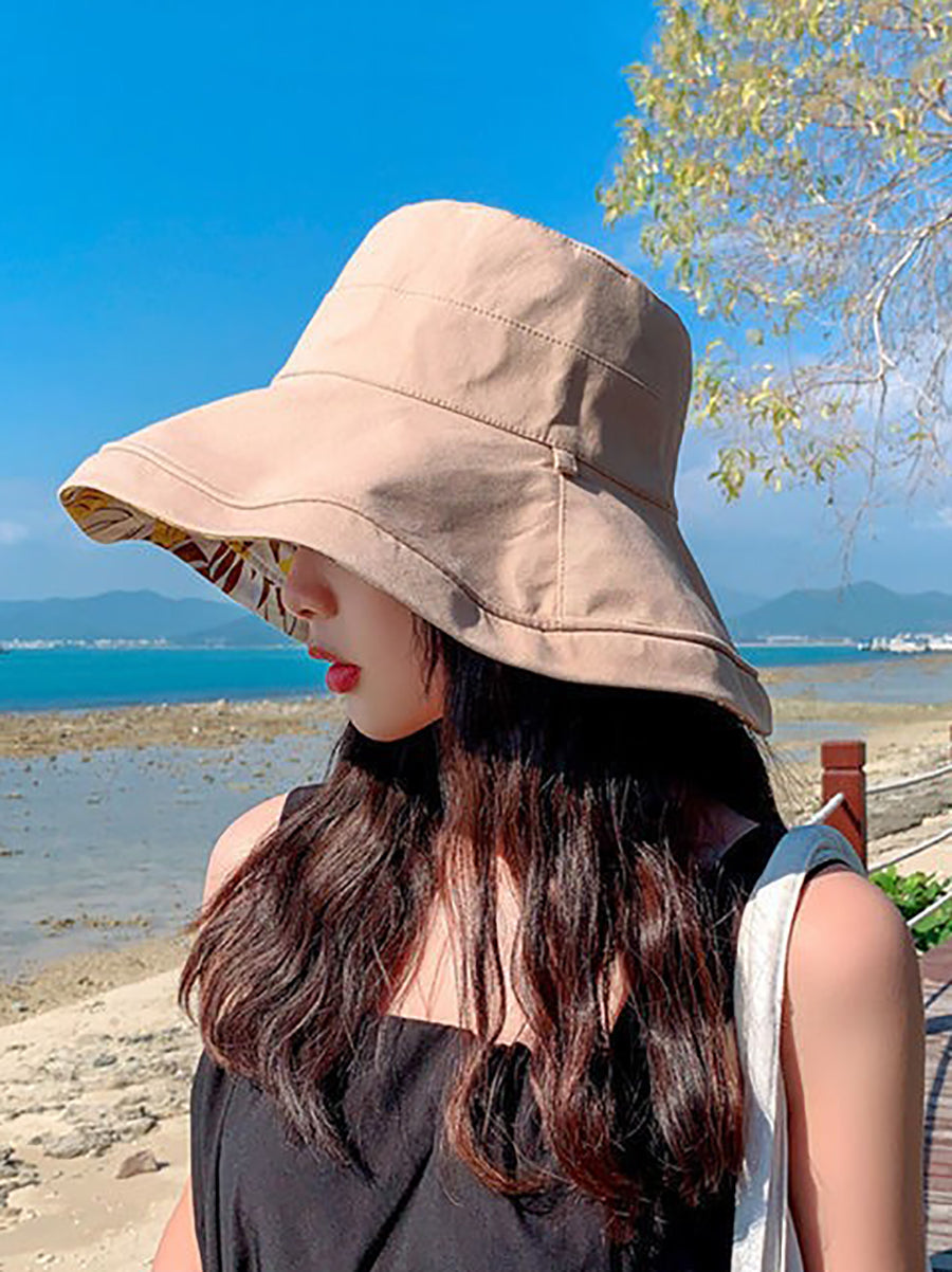 قبعة صيفية نسائية مزينة بالزهور، يمكن ارتداؤها على الوجهين