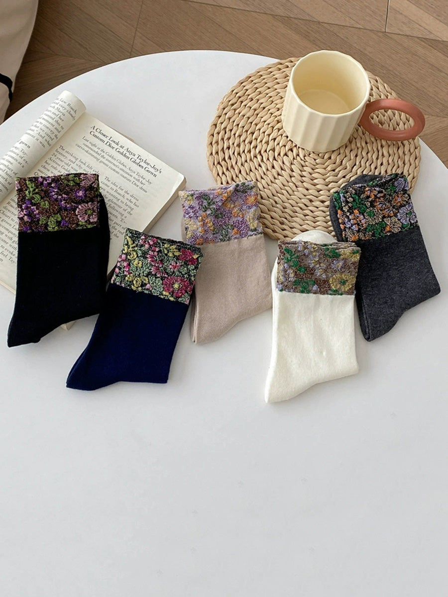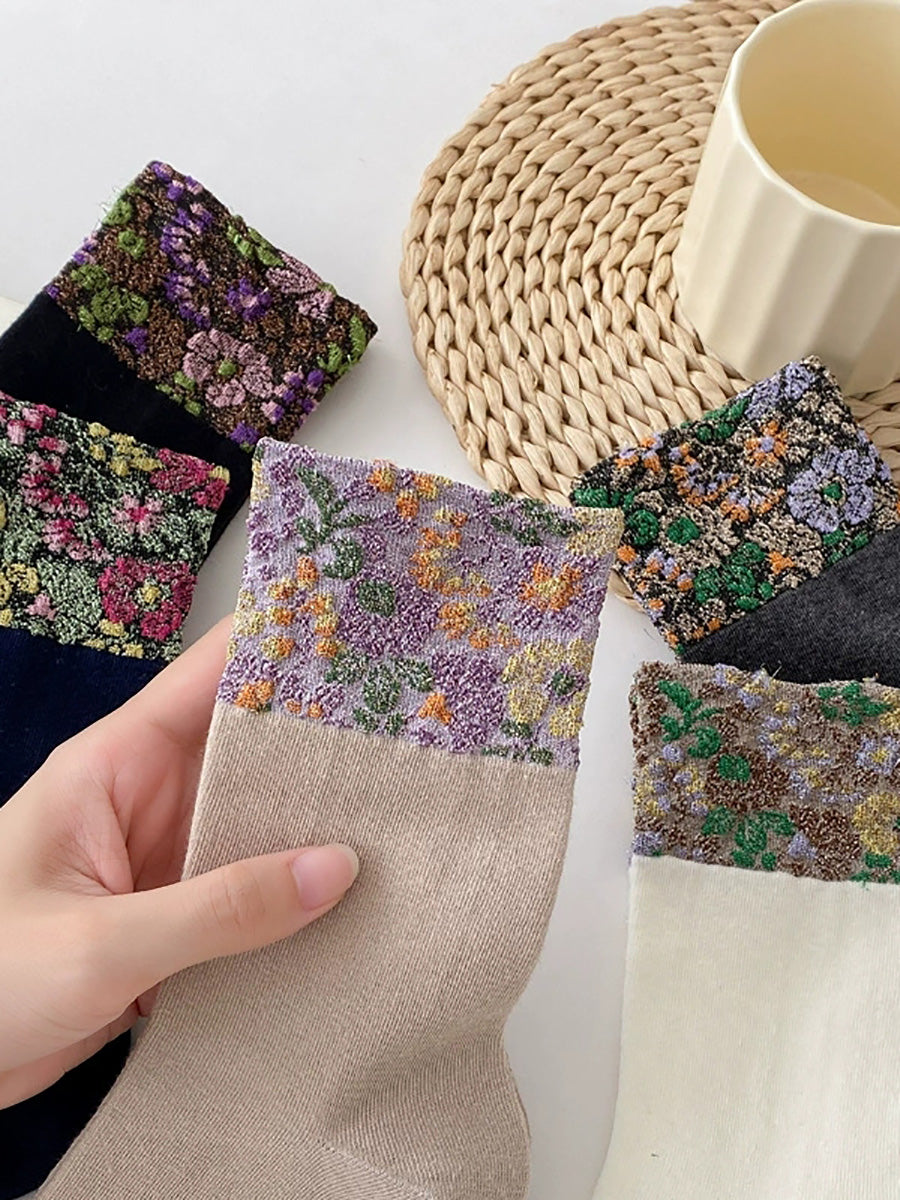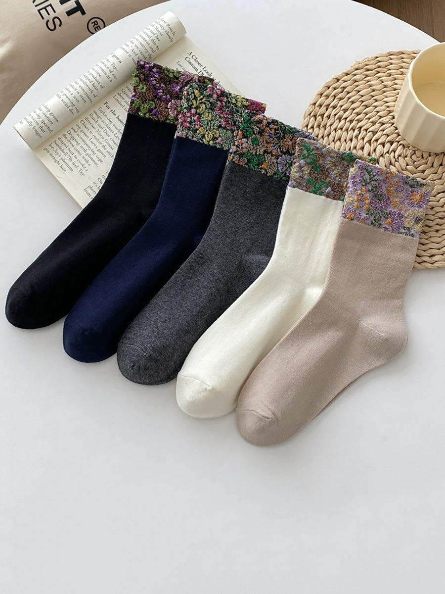 5 أزواج من الجوارب النسائية الشتوية الكلاسيكية المصنوعة من قماش الجاكار