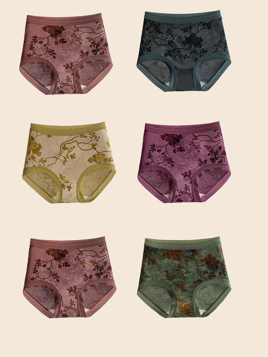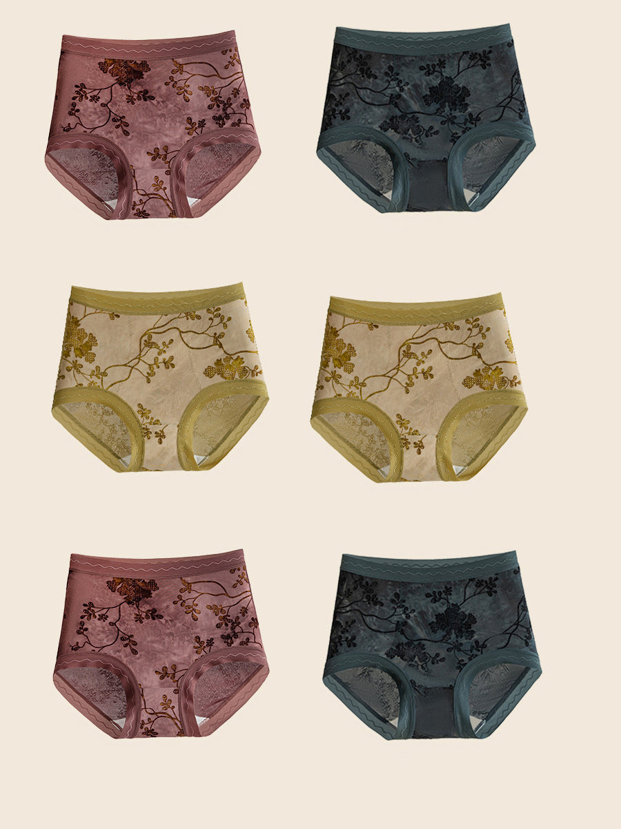 6 قطع ملابس داخلية نسائية من الجاكار المزهر بخصر عالٍ