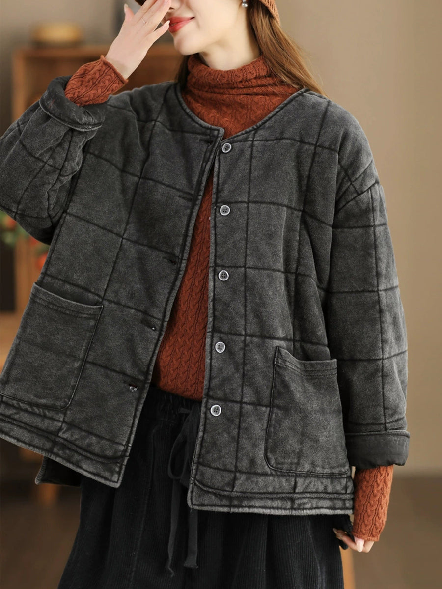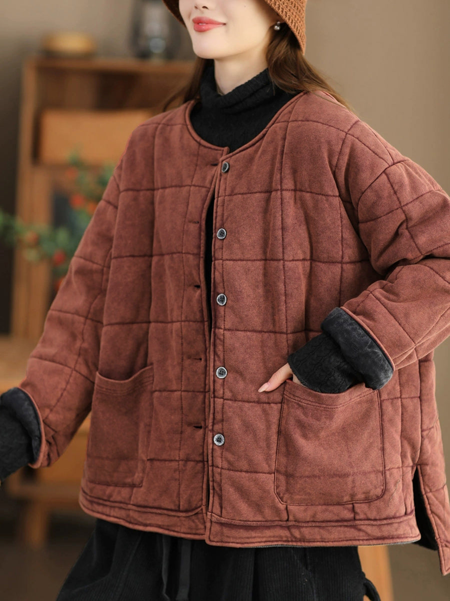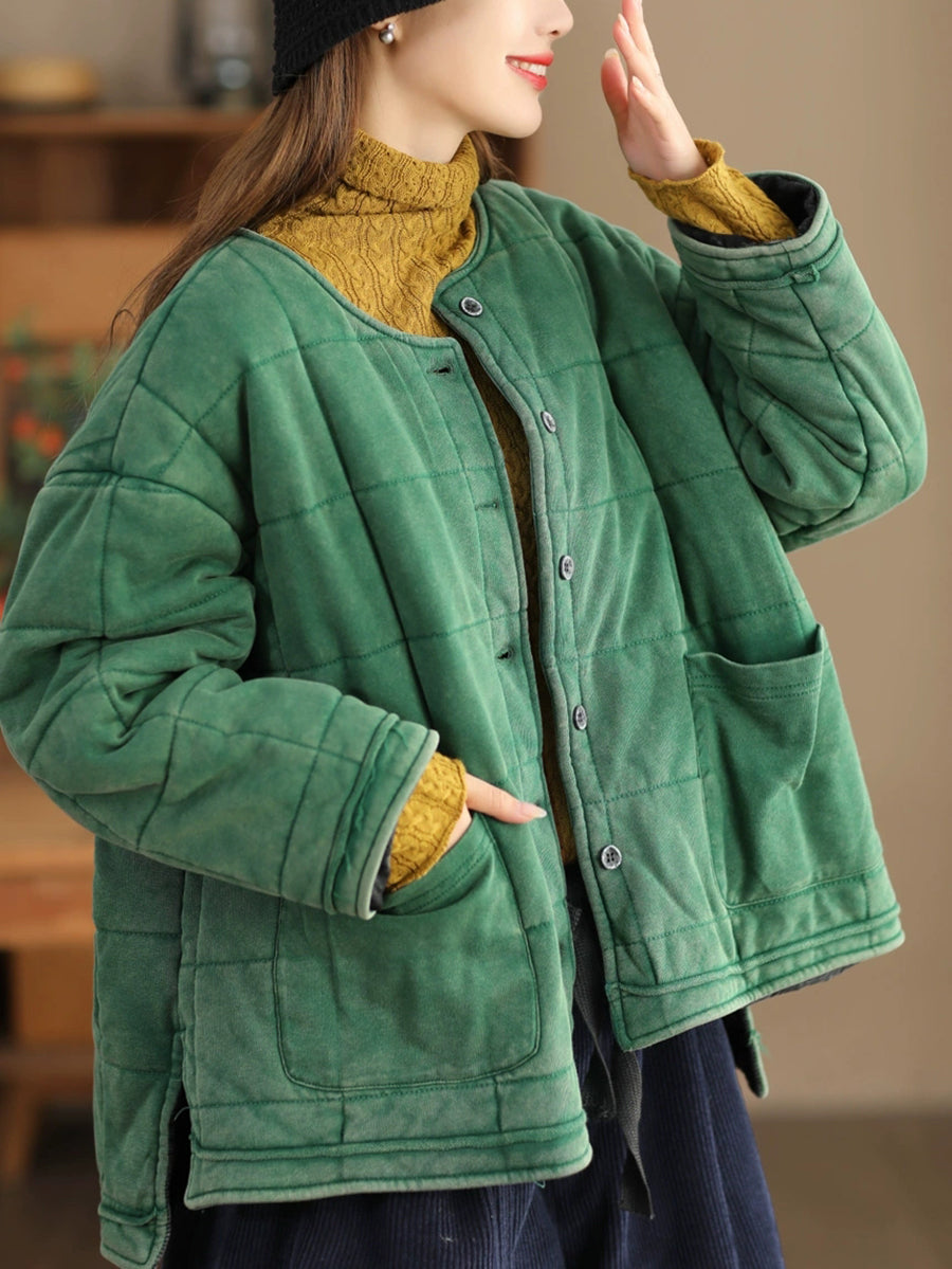 سترة نسائية مبطنة برقبة دائرية بألوان نقية مناسبة للخريف