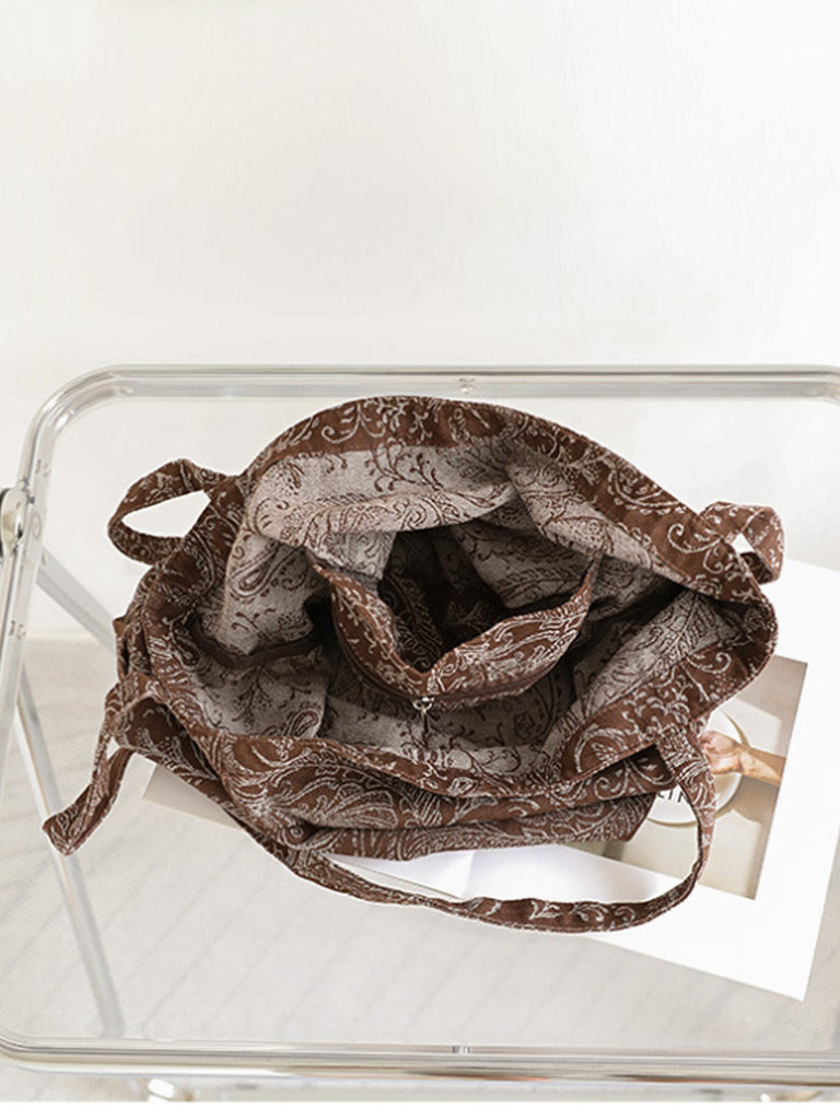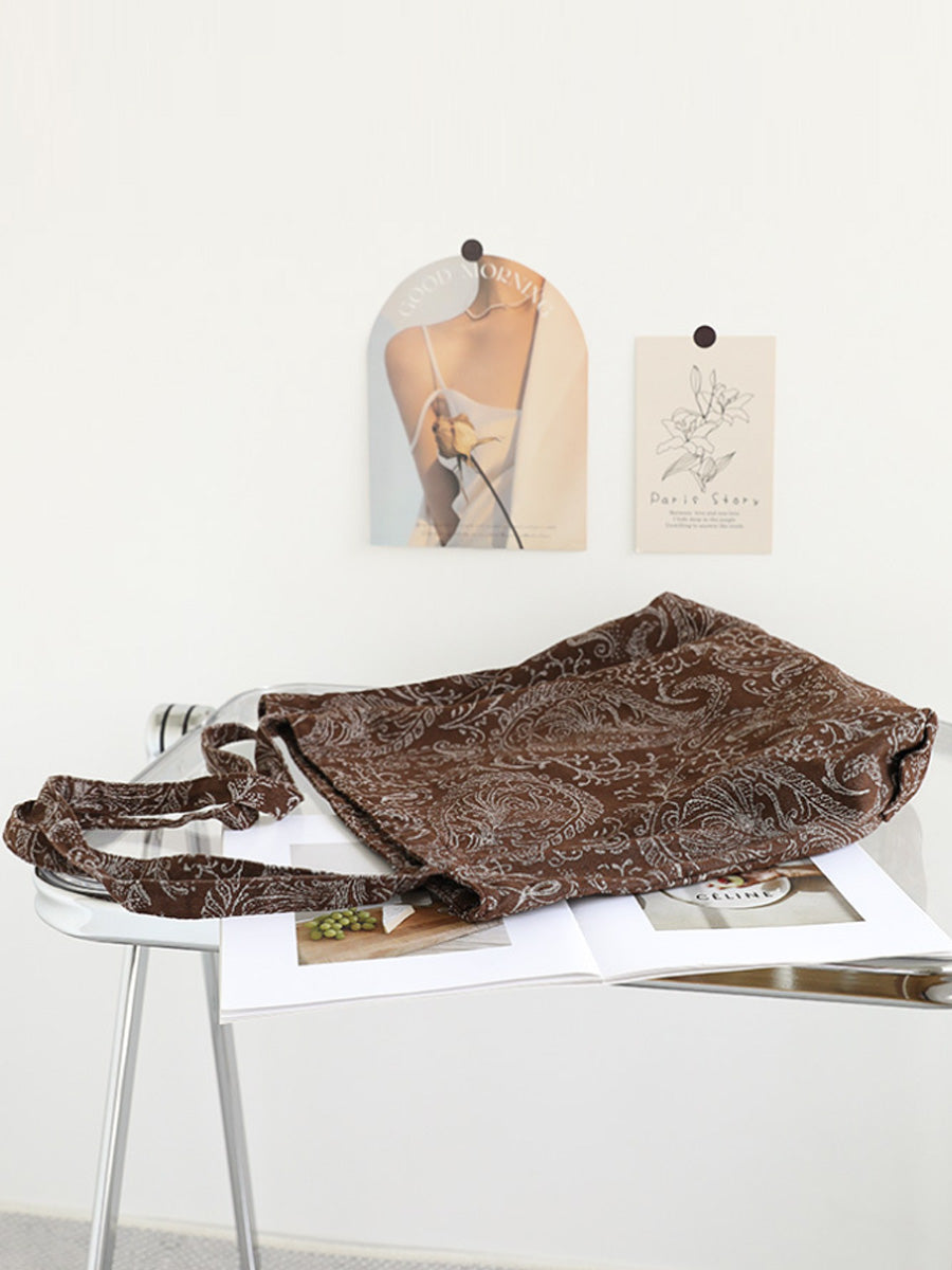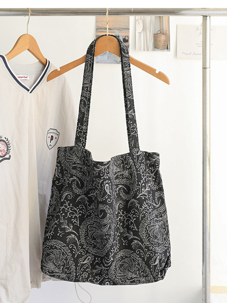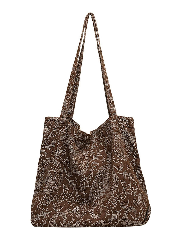 حقيبة كتف نسائية من القماش بطبعة عتيقة