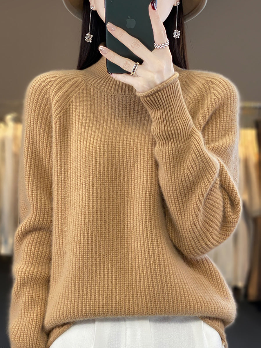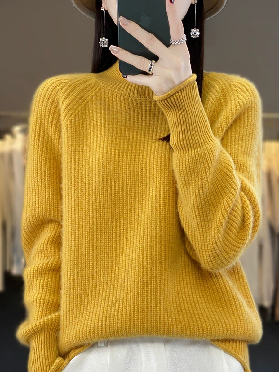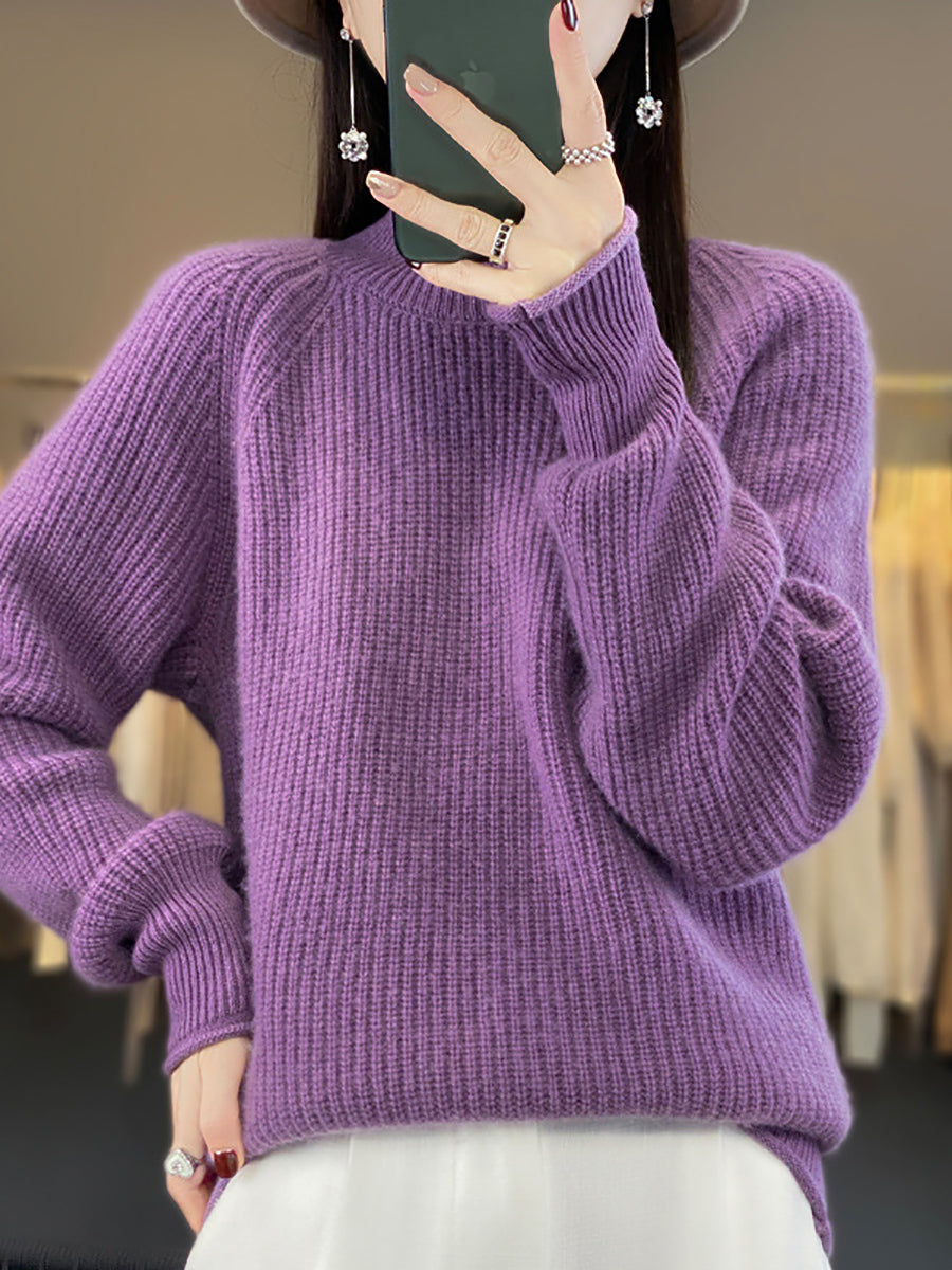 سترة نسائية شتوية من الصوف ذات الياقة المدورة بلون نقي