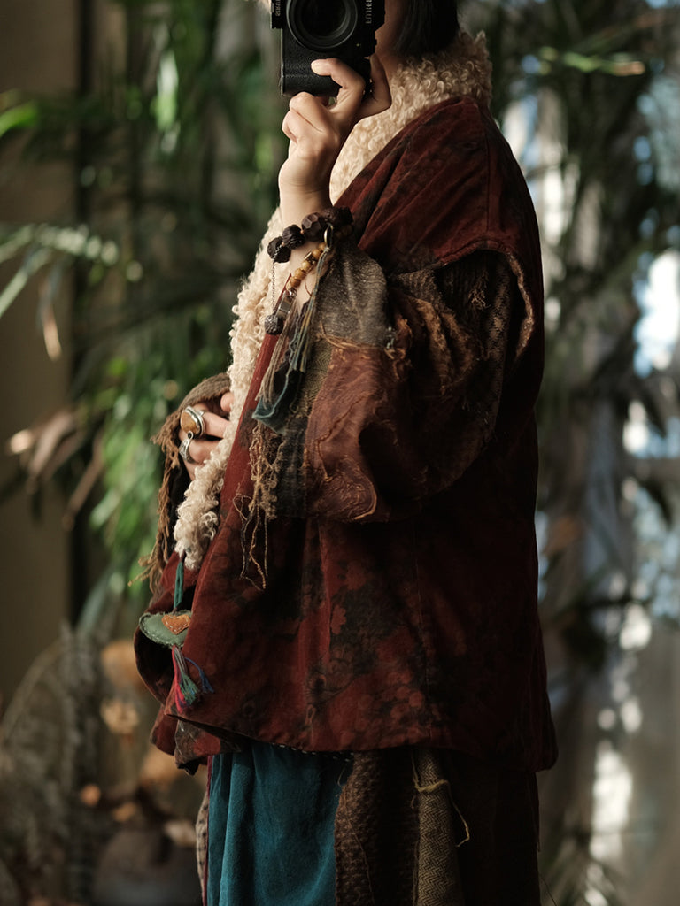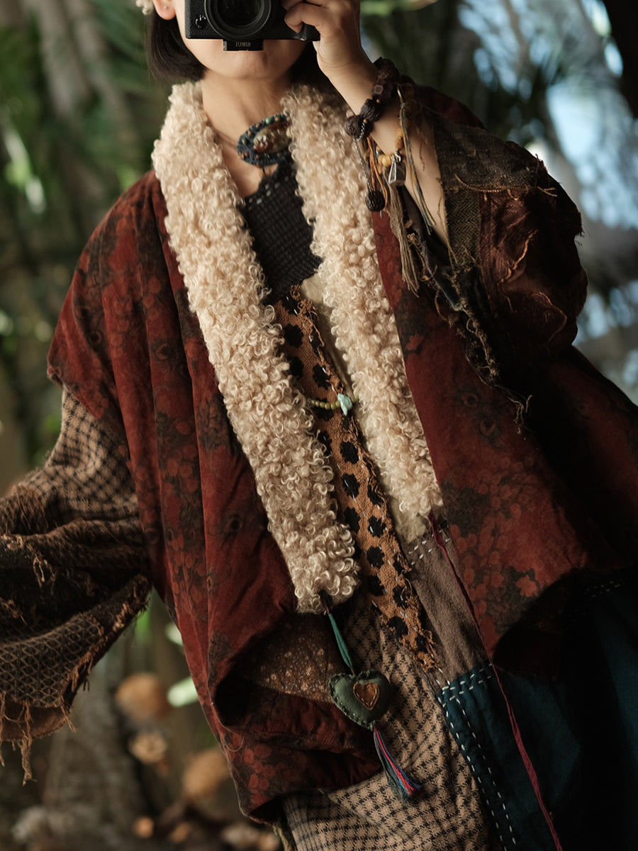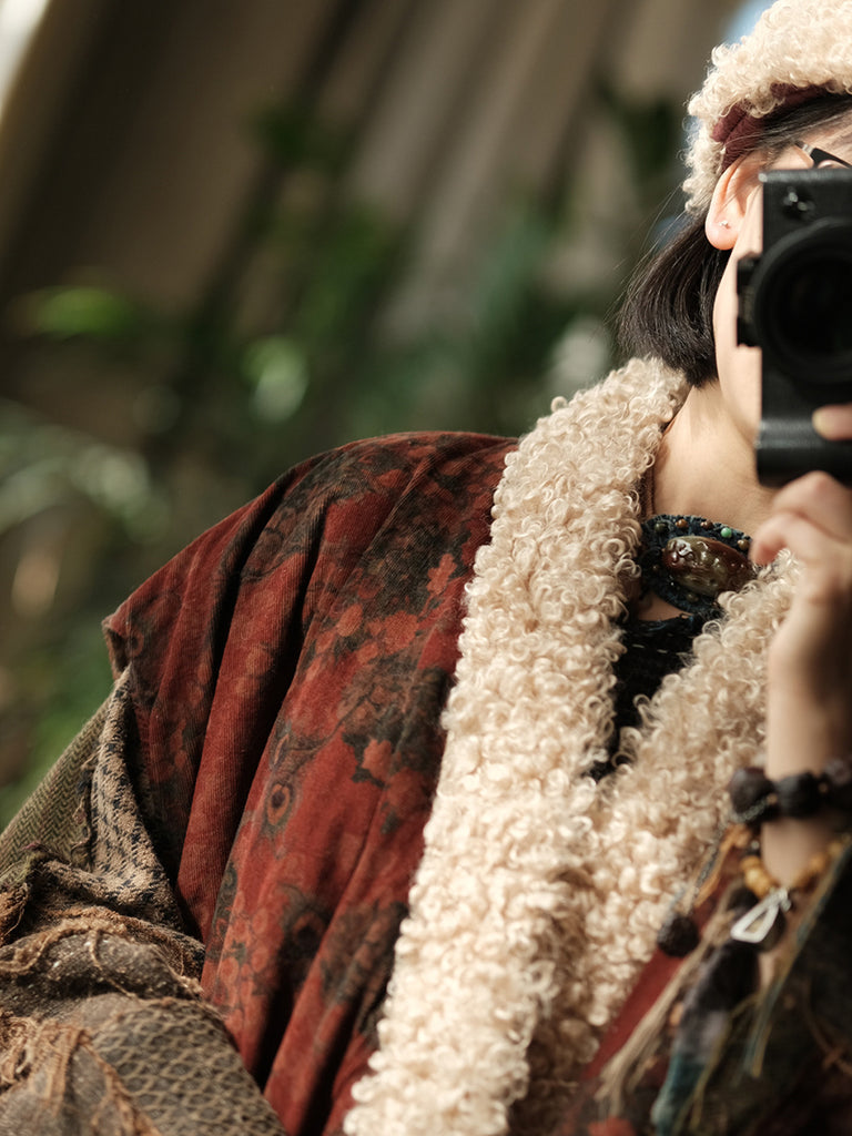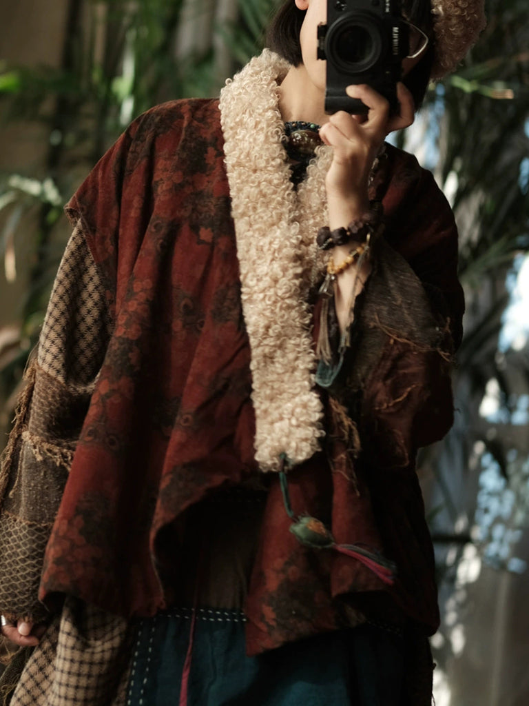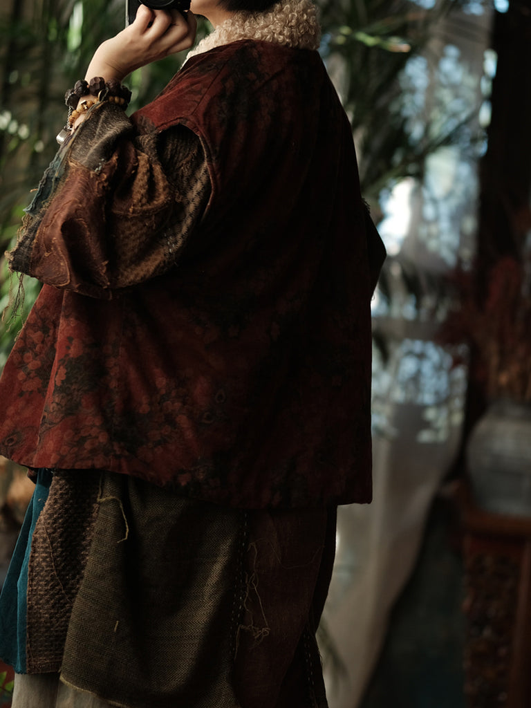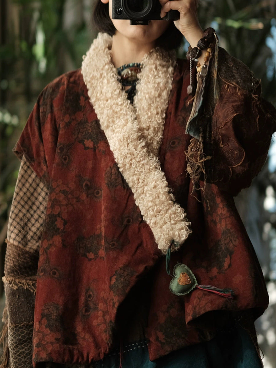 سترة نسائية شتوية مبطنة من الصوف بتصميم زهور عتيقة