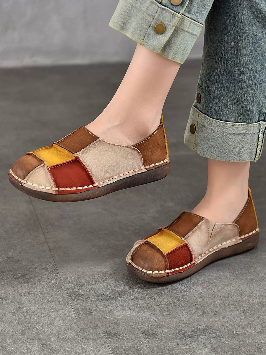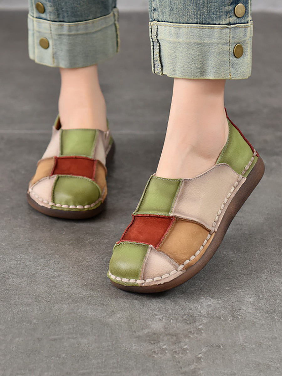 حذاء نسائي ربيعي مسطح من الجلد بألوان متداخلة للنساء