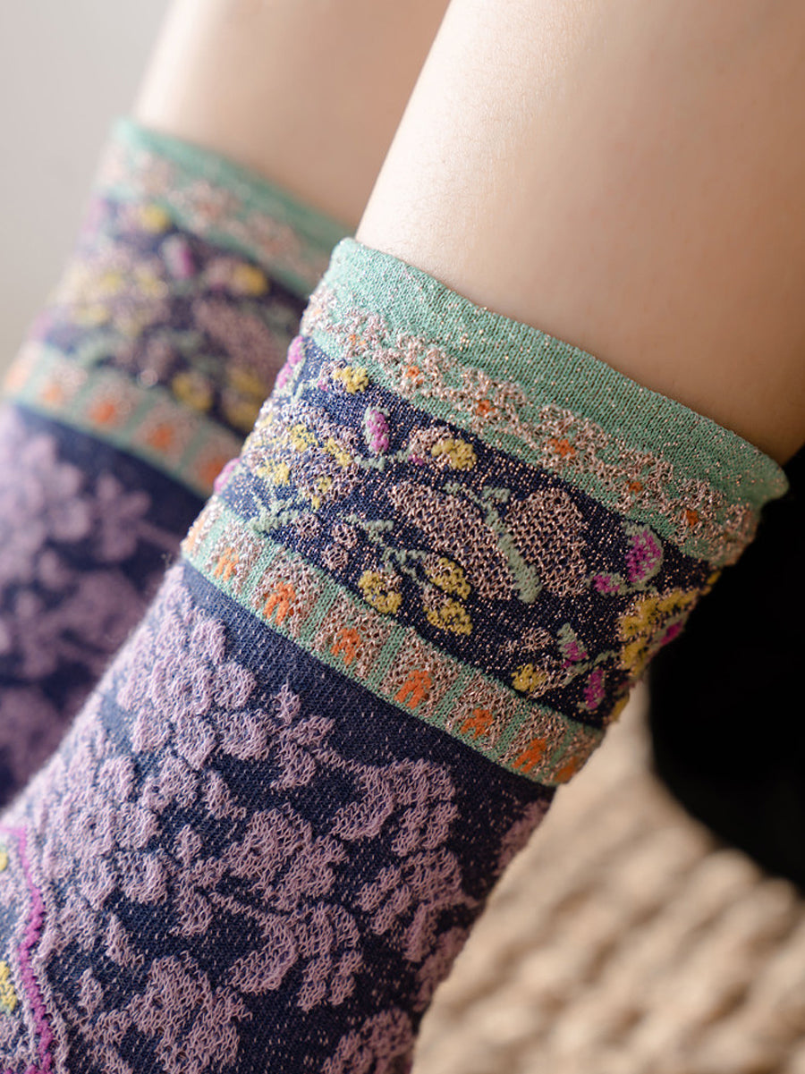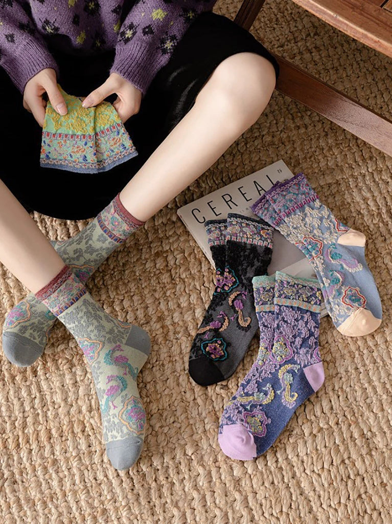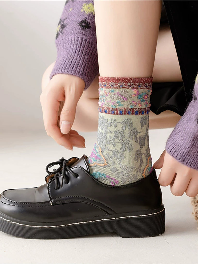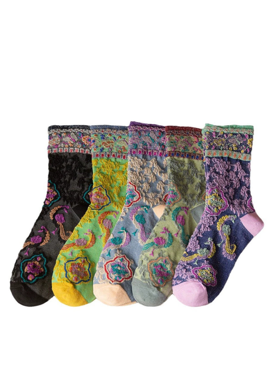 5 أزواج من الجوارب النسائية الجاكارية ذات الزهور العتيقة