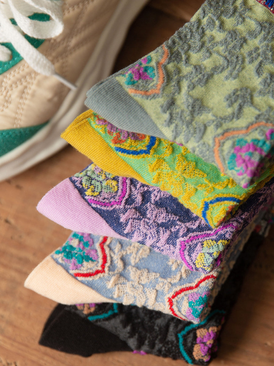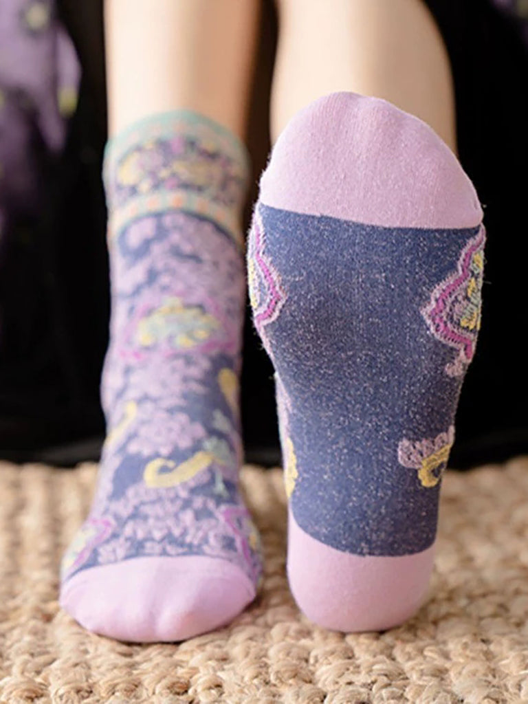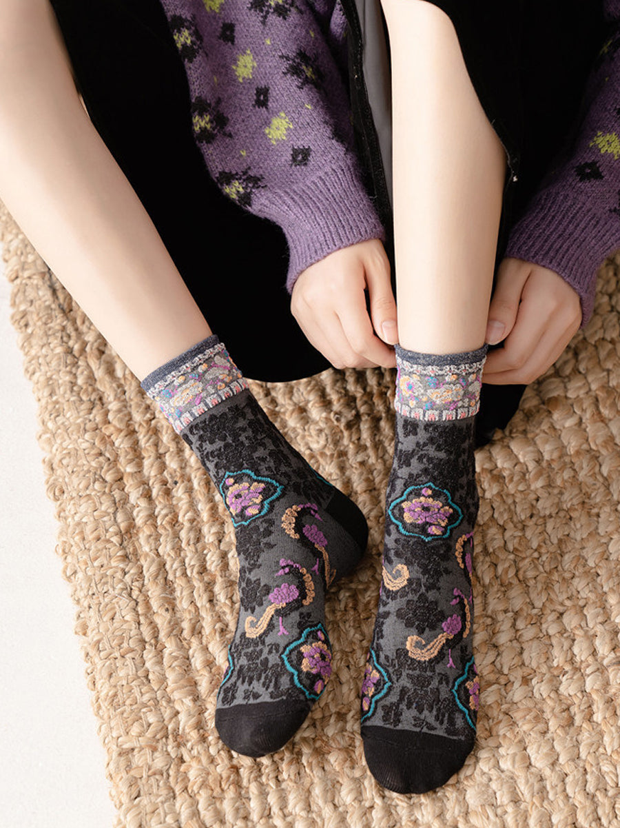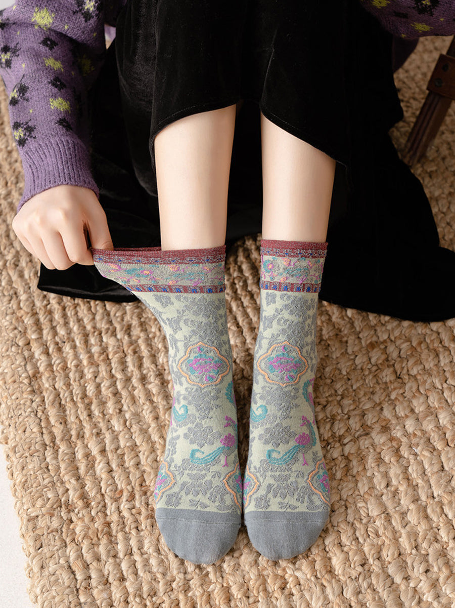 5 أزواج من الجوارب النسائية الجاكارية ذات الزهور العتيقة