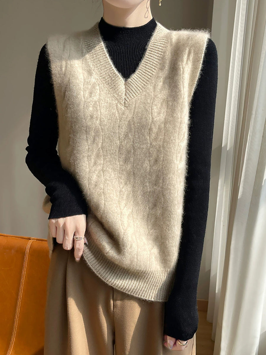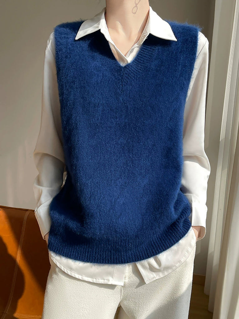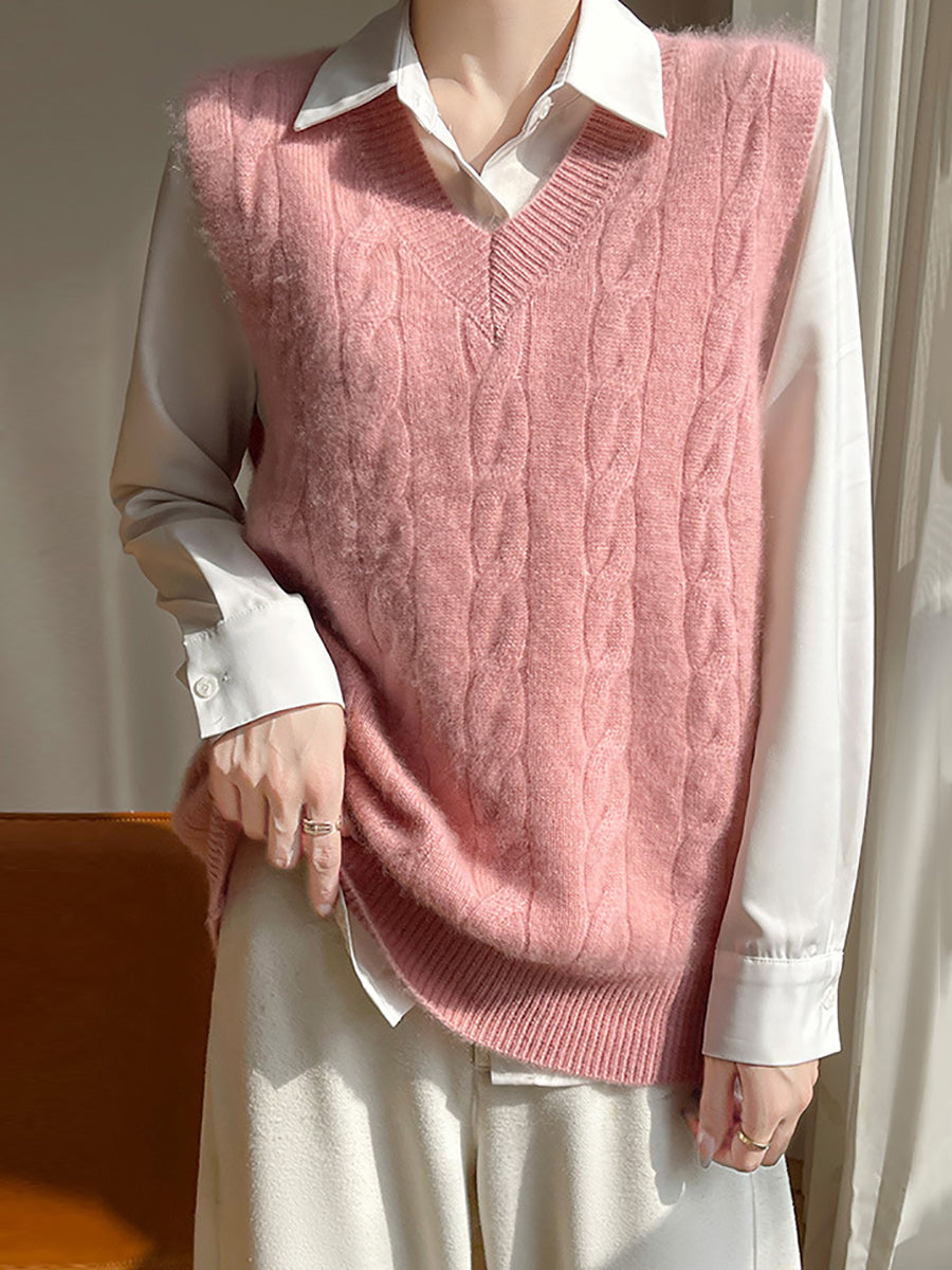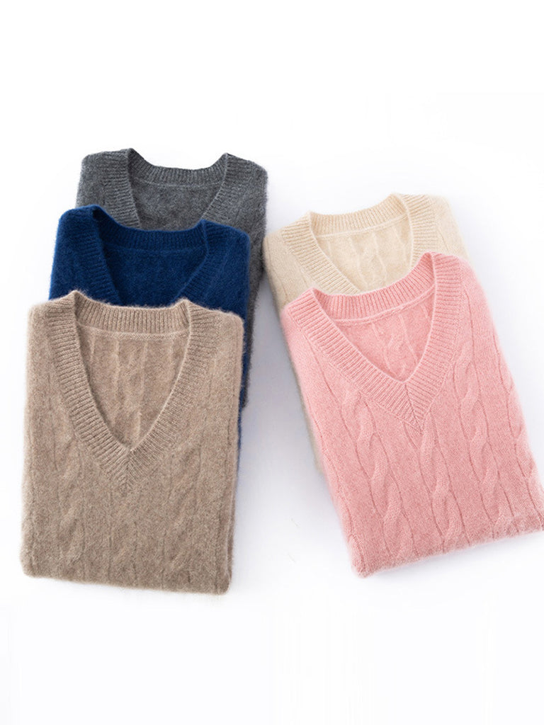 سترة نسائية كاجوال محبوكة برقبة على شكل حرف V بلون نقي مناسبة لفصل الخريف