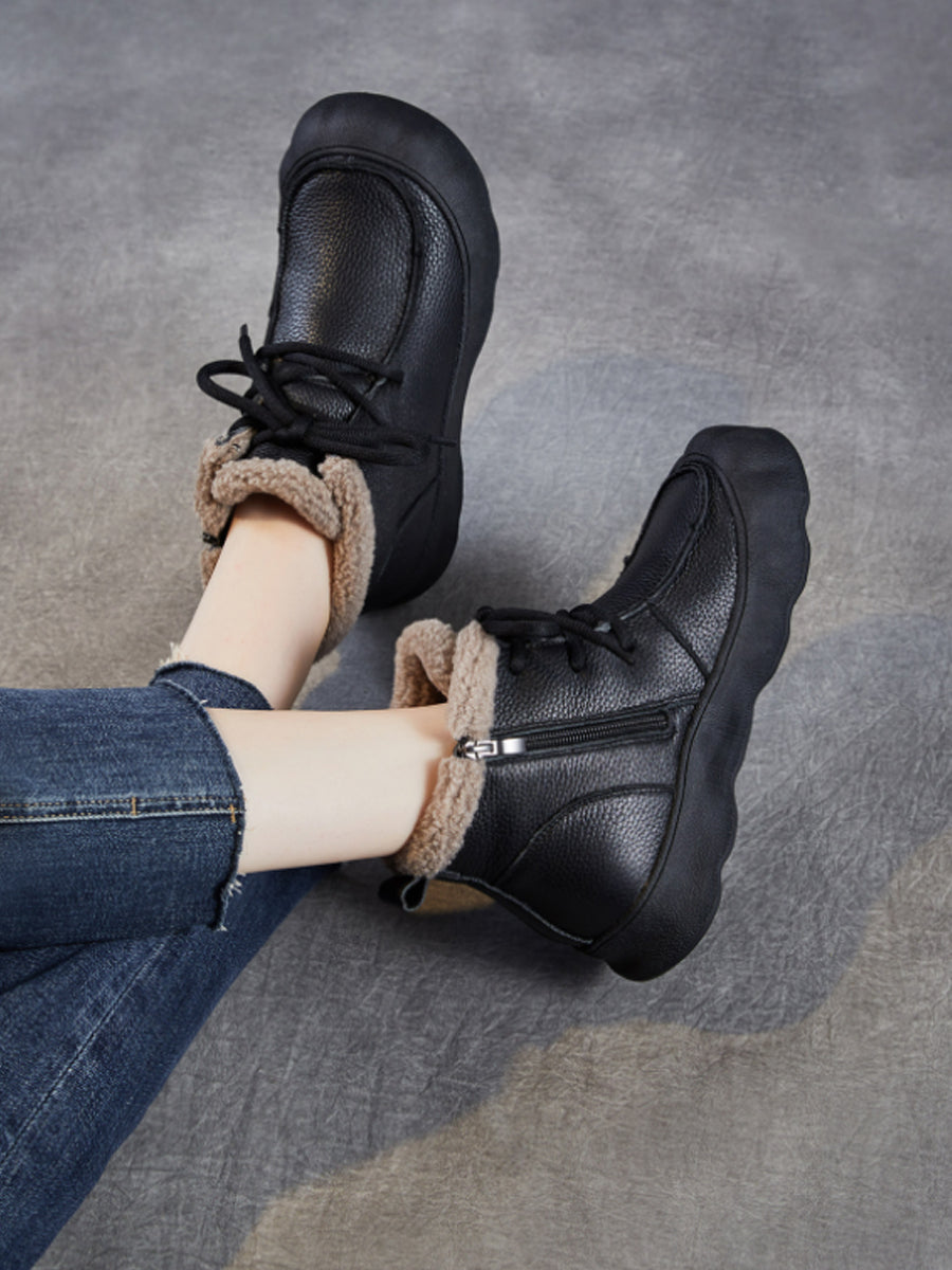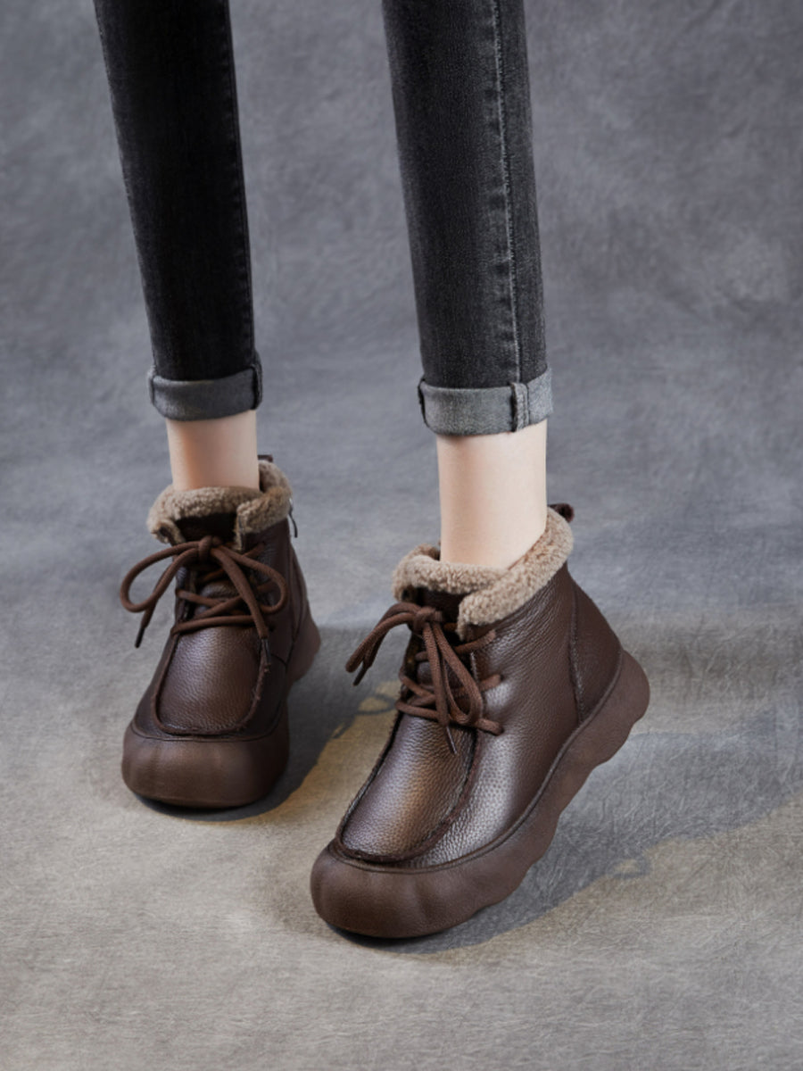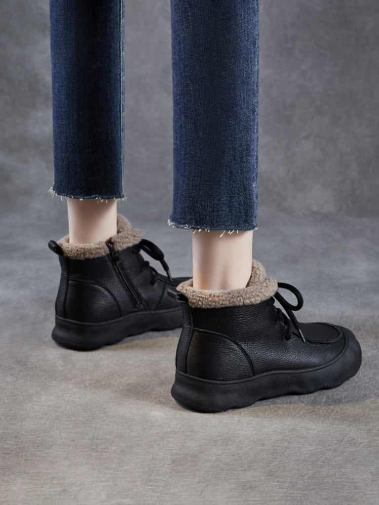 حذاء نسائي بكعب عالٍ من الجلد الطبيعي مبطن بالصوف
