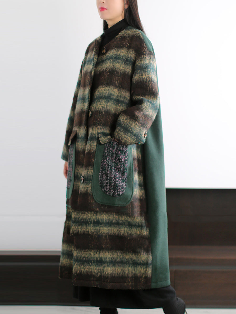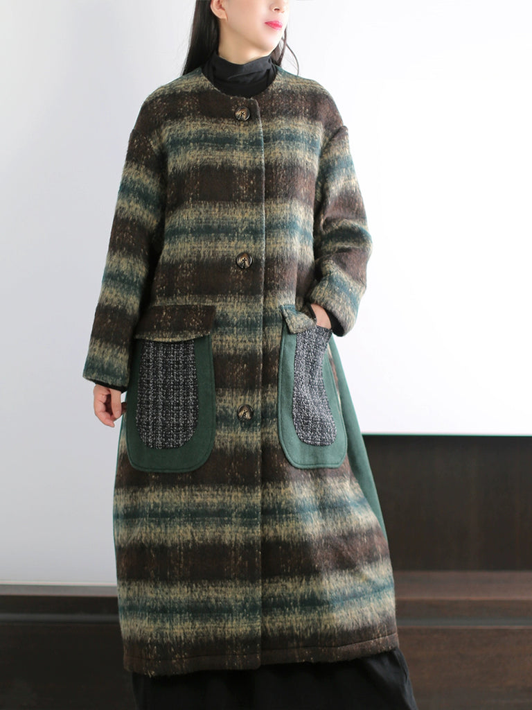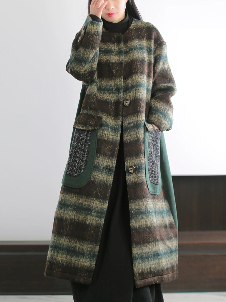 معطف نسائي شتوي عتيق مخطط على شكل شرنقة