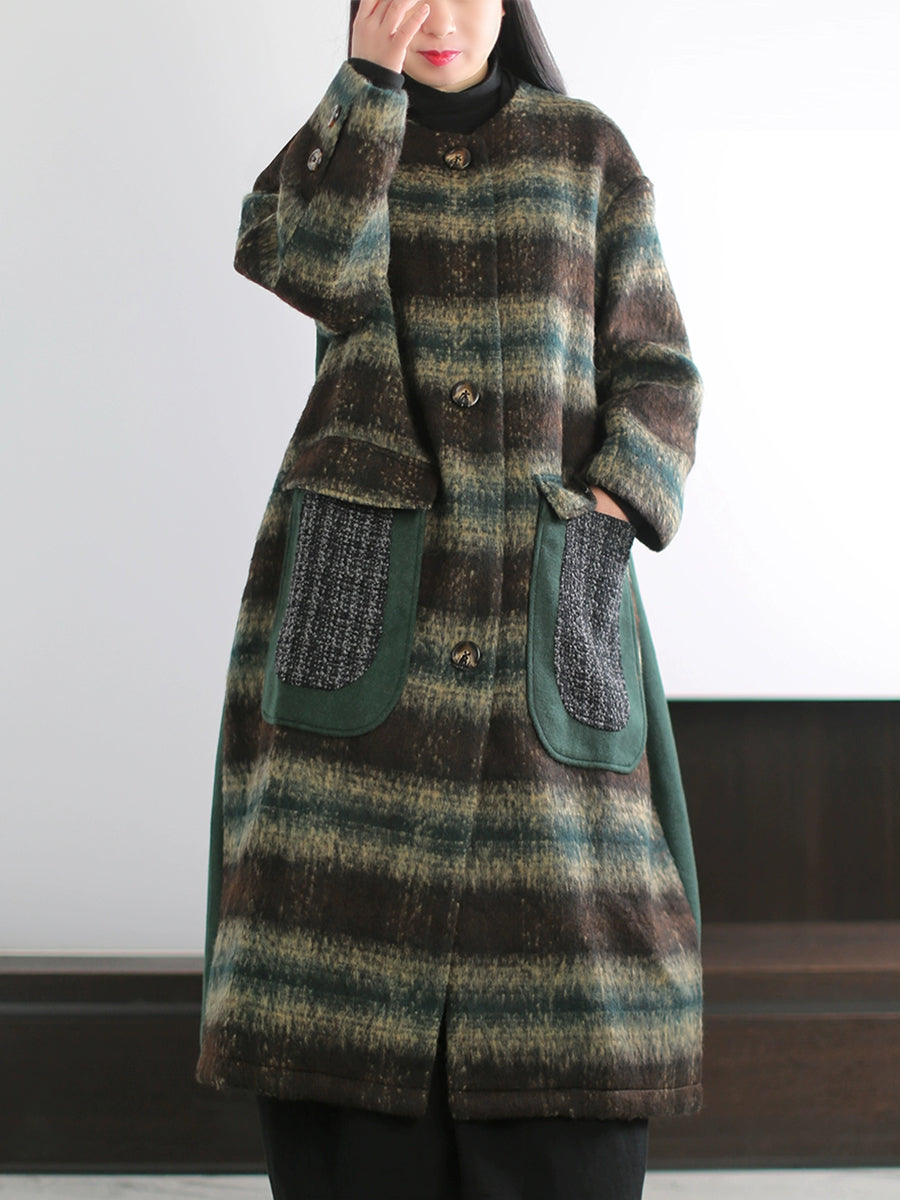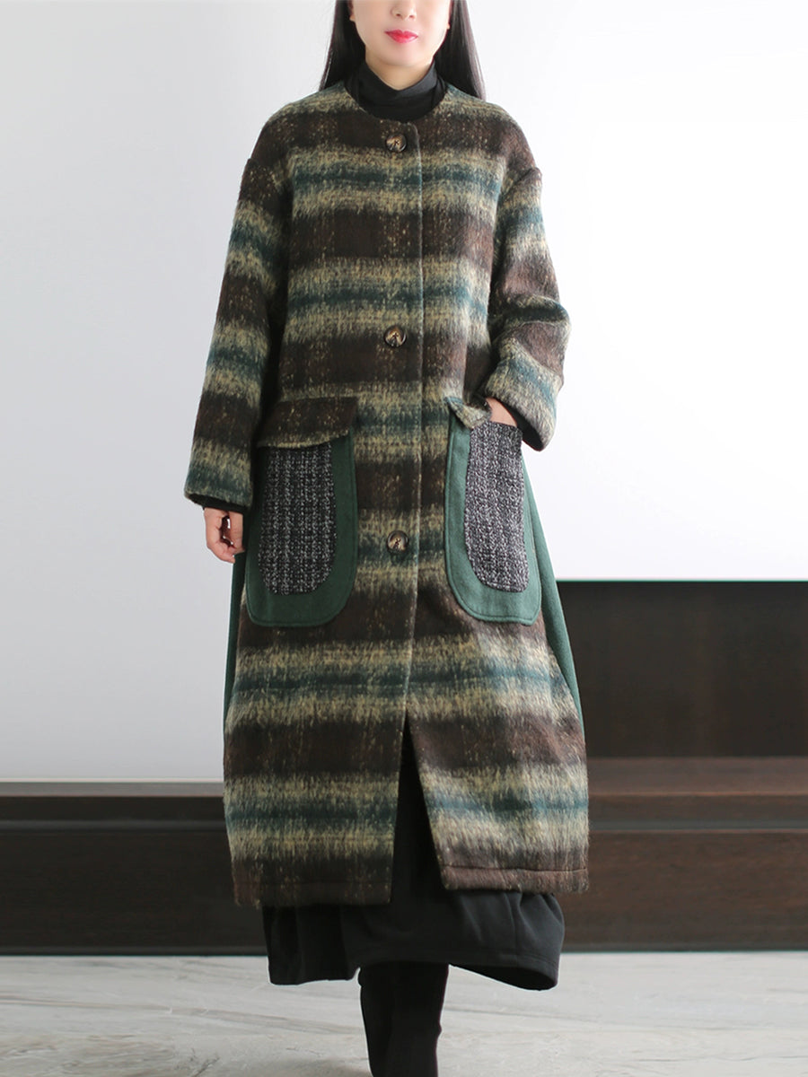 مصنوع من قماش صوف فاخر (85% صوف، 15% بوليستر)، يتميز هذا المعطف المستوحى من الطراز القديم بنقشة مخططة مميزة وياقة قائمة منظمة. أكمامه الراجلان تُضفي عليه تناسقًا أنيقًا، بينما يُضفي تصميمه الواسع لمسةً من الراحة والجاذبية. صُمم هذا المعطف الكلاسيكي لفصلي الخريف والشتاء، ويجمع بين الأناقة الخالدة والدفء العملي والراحة.