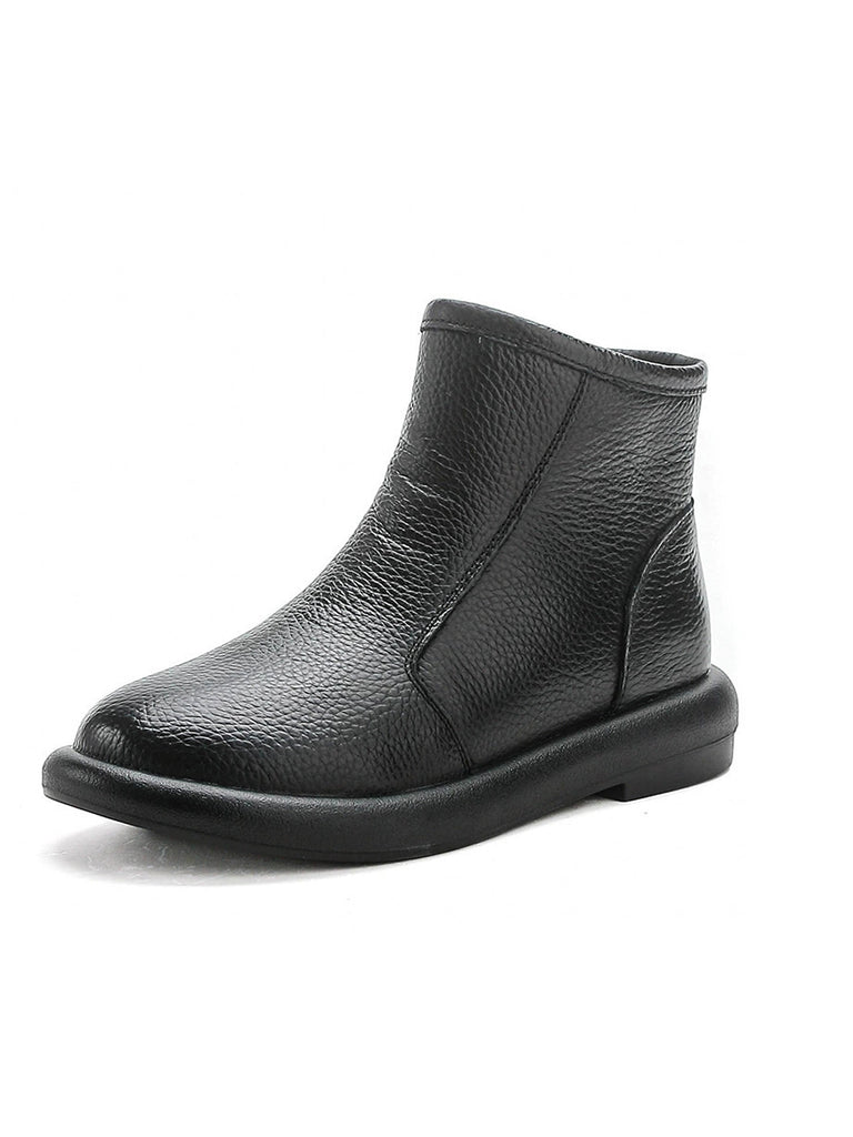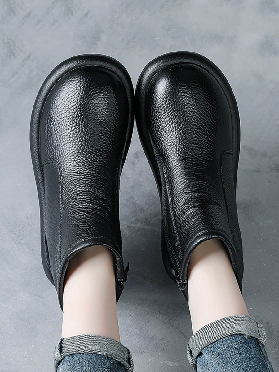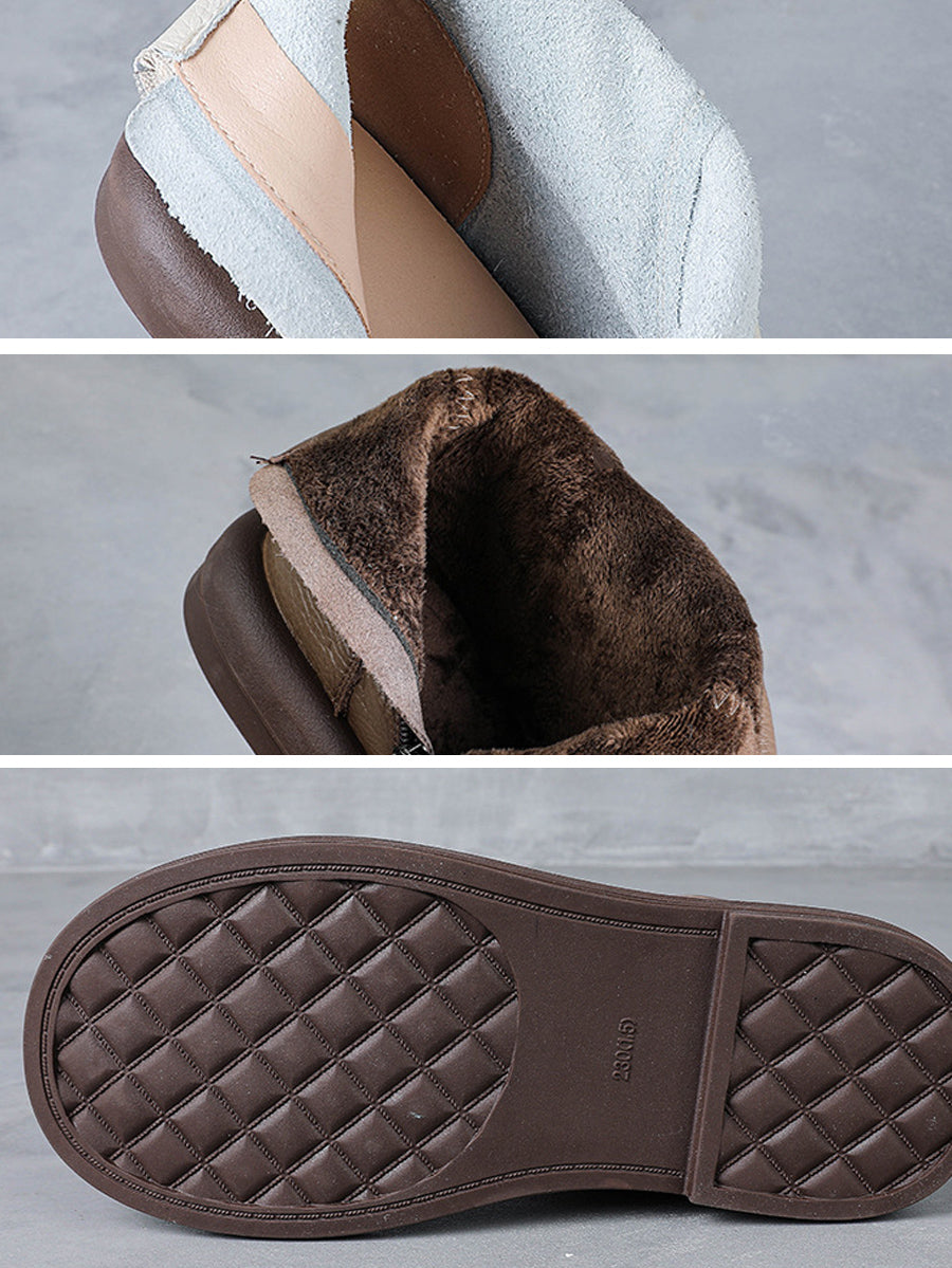 حذاء نسائي شتوي من الجلد الطبيعي مبطن بالصوف
